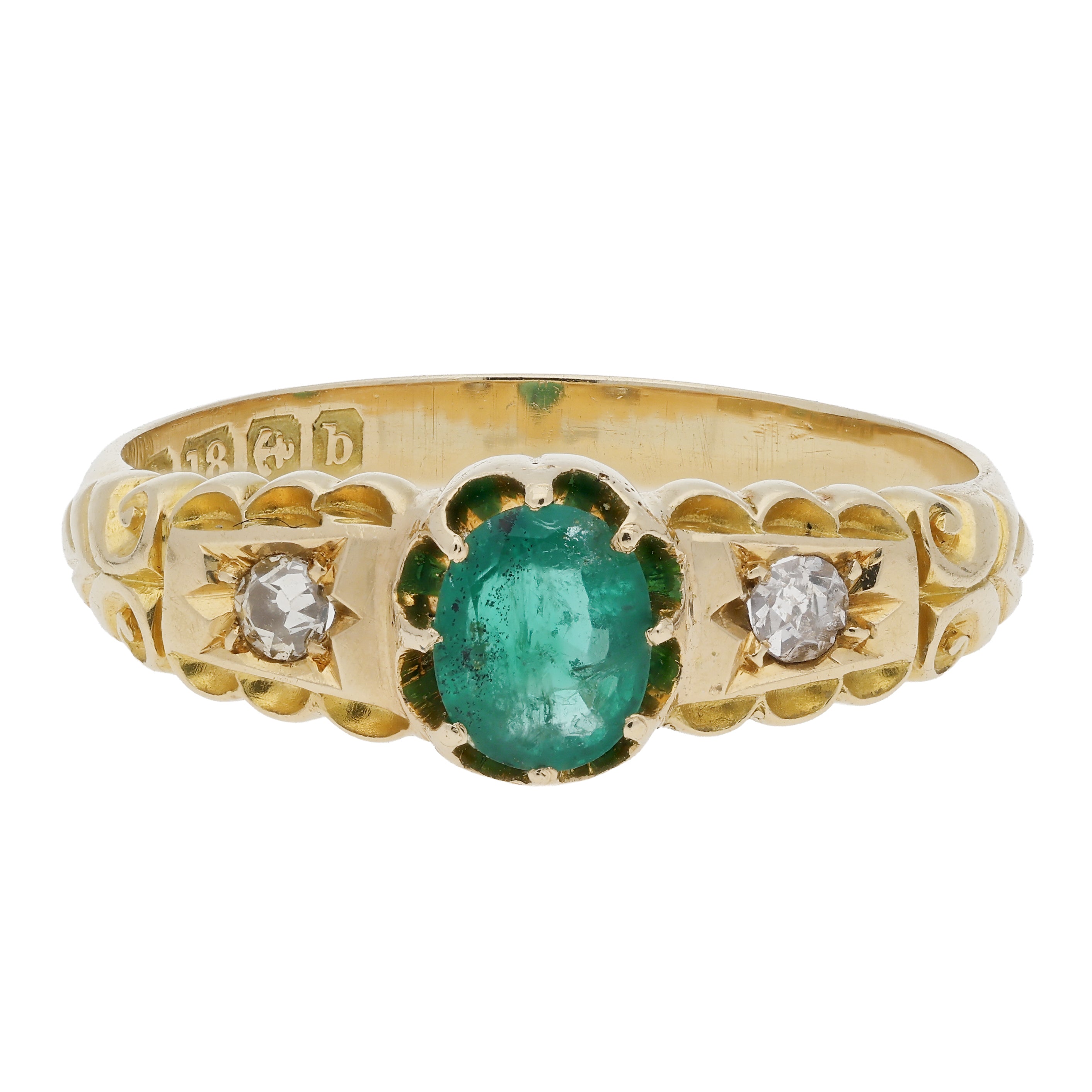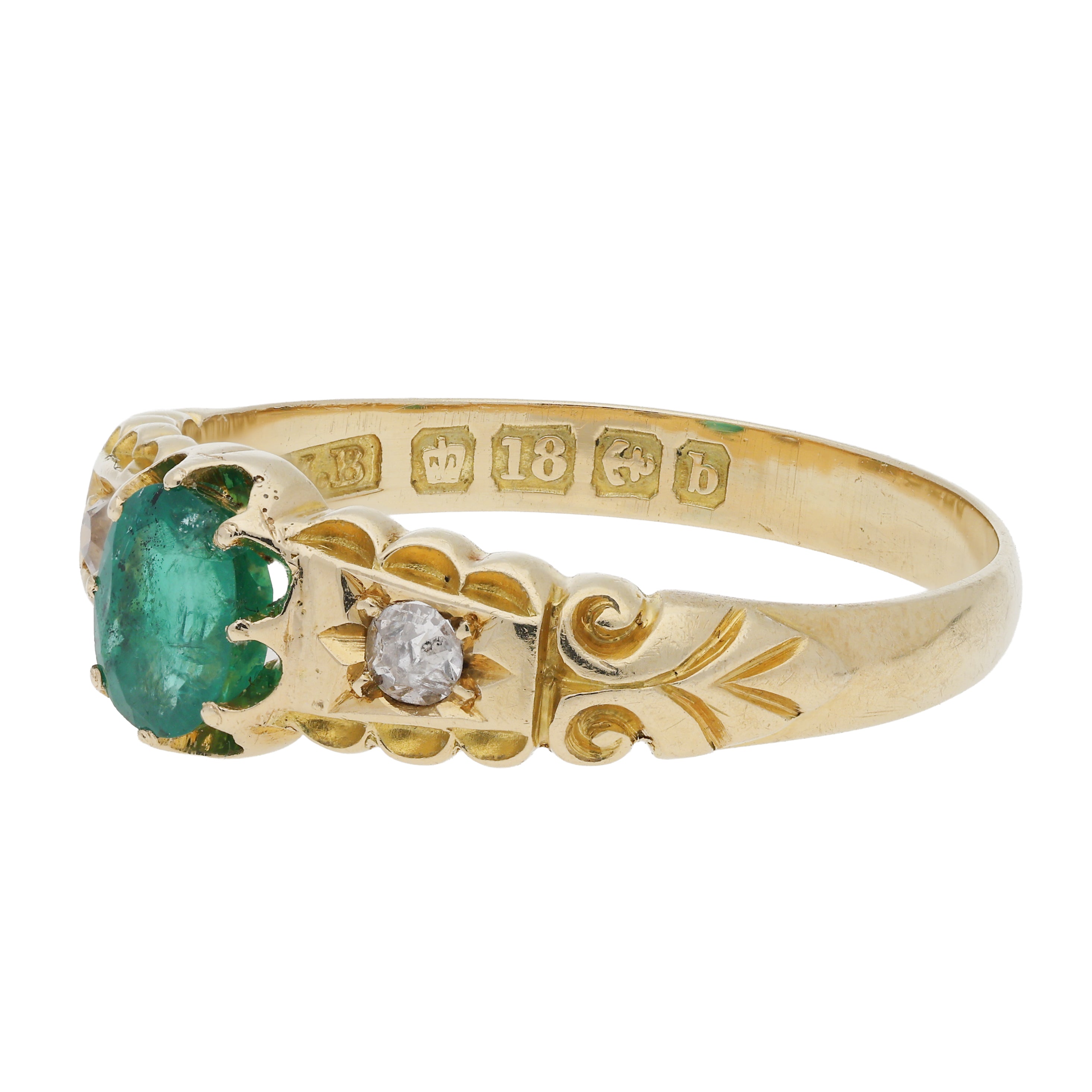 Antique 1901 Emerald and Old Cut Diamond Ring