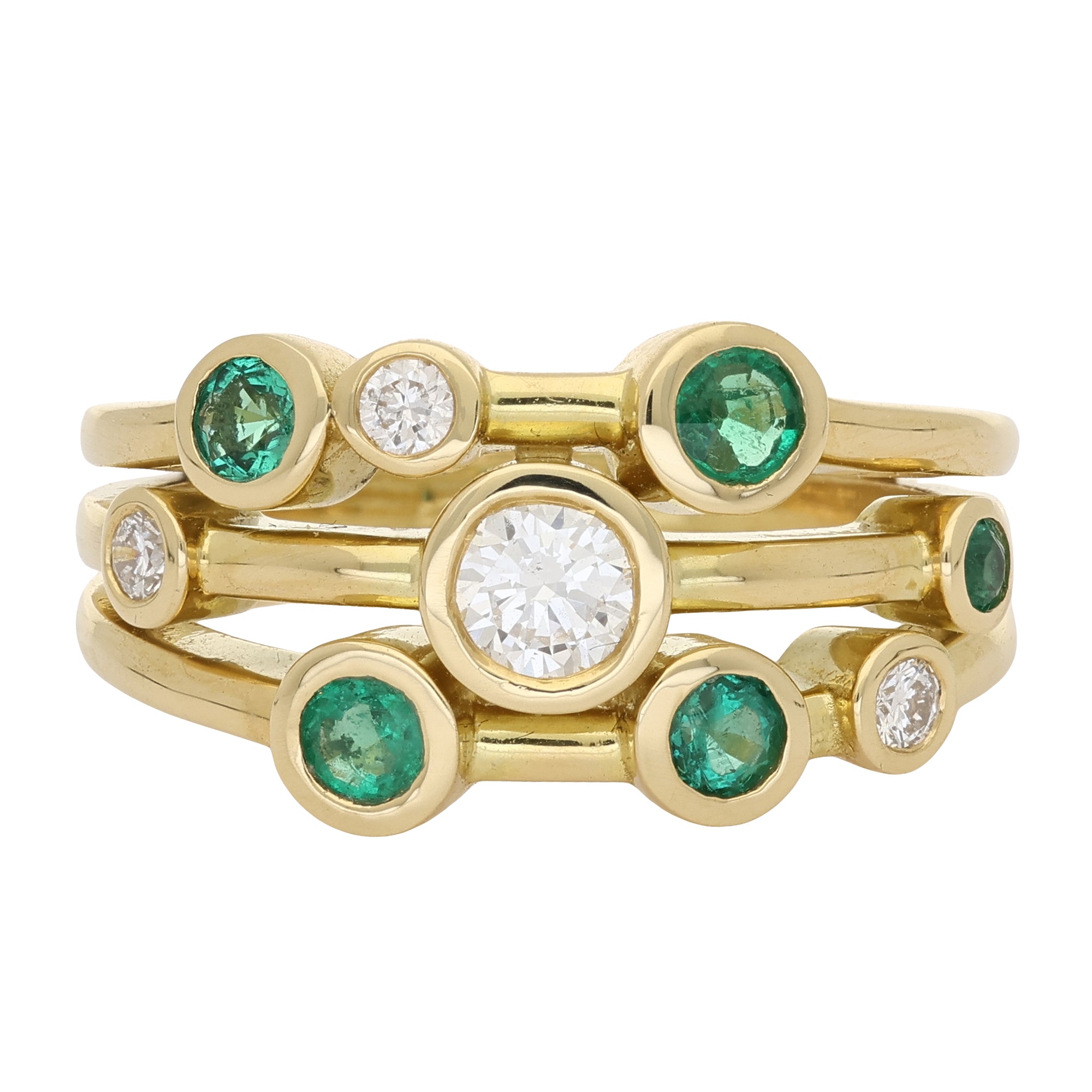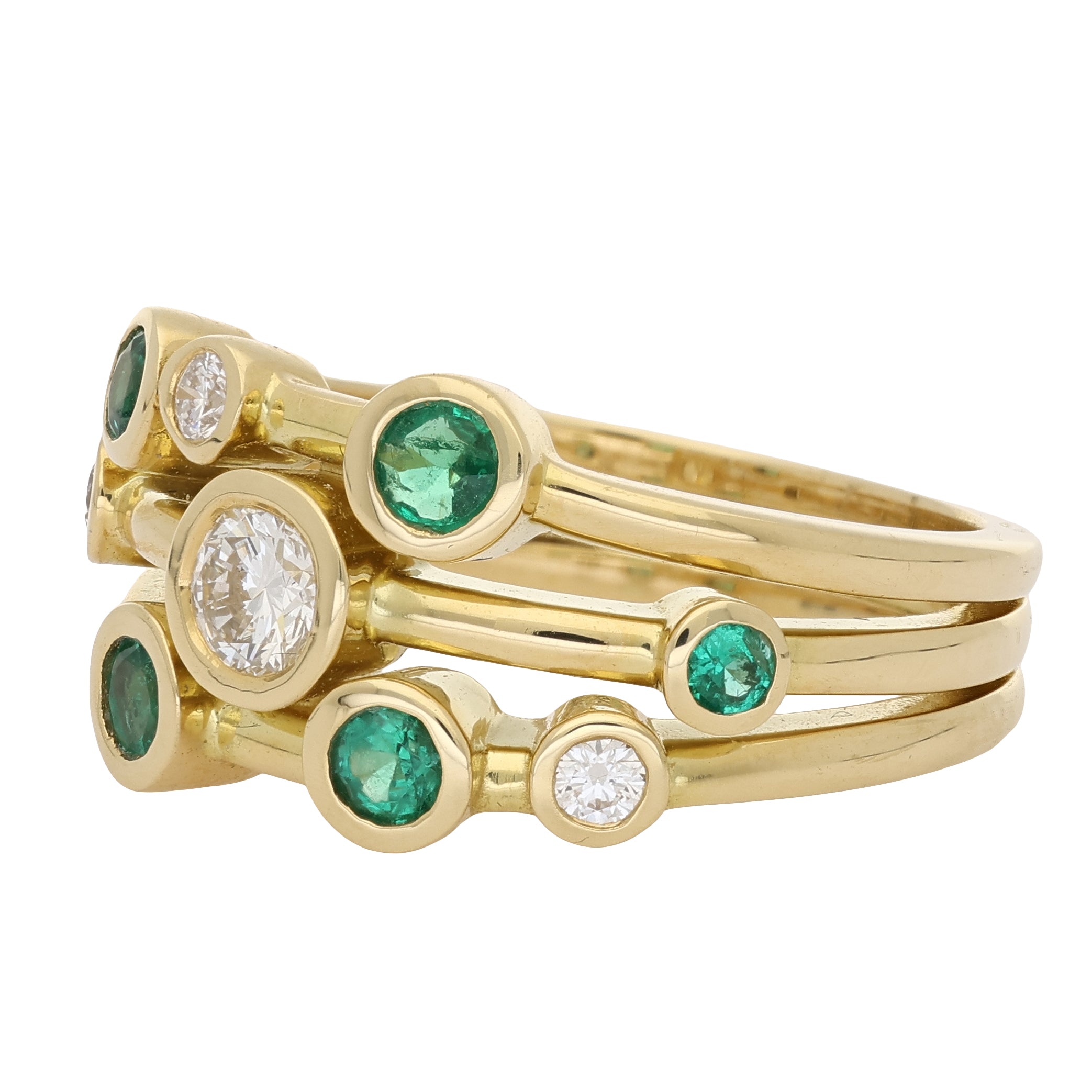 Emerald and Diamond Multi-Band Ring in Yellow Gold