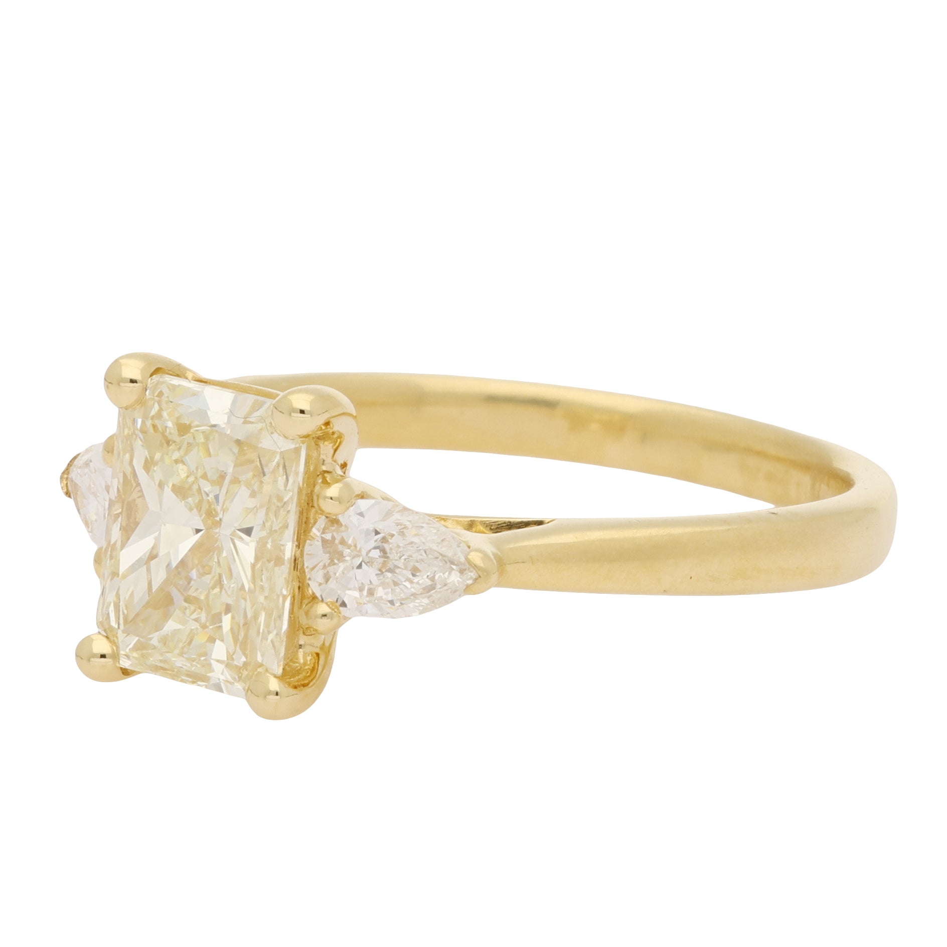 Cushion Cut 2.14ct Yellow Diamond Three Stone Ring