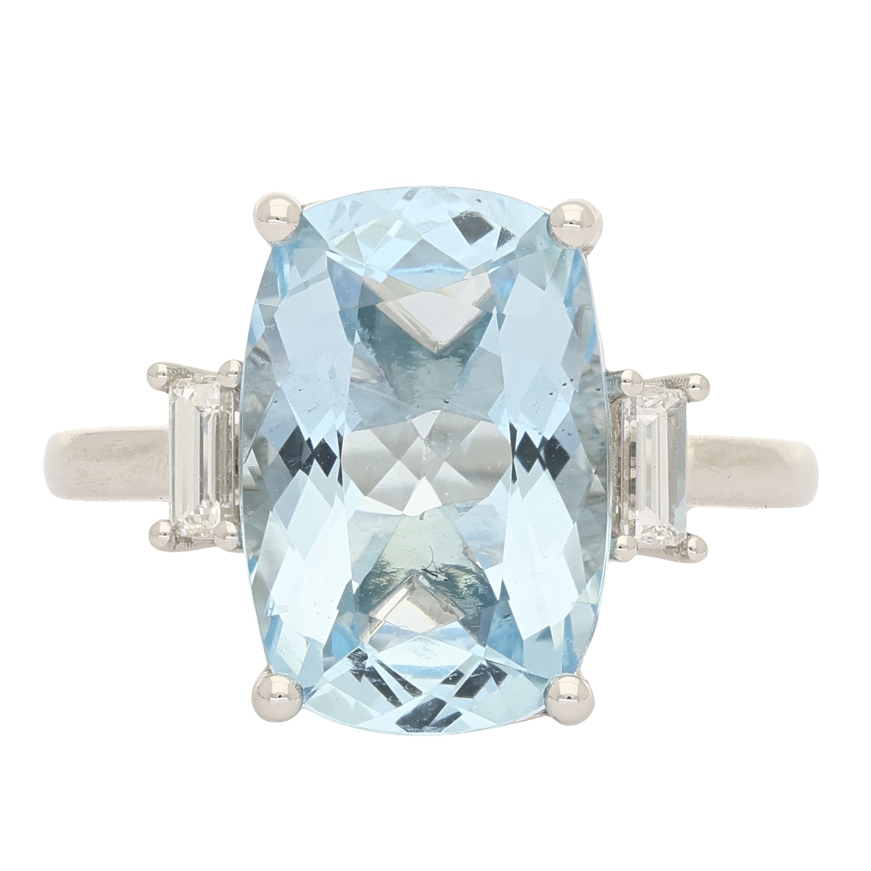 Art Deco Style Cushion-Cut Aquamarine and Diamond Ring