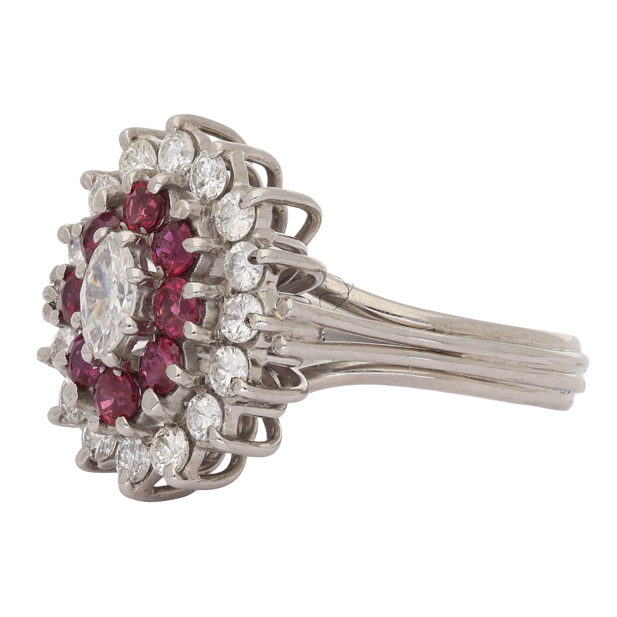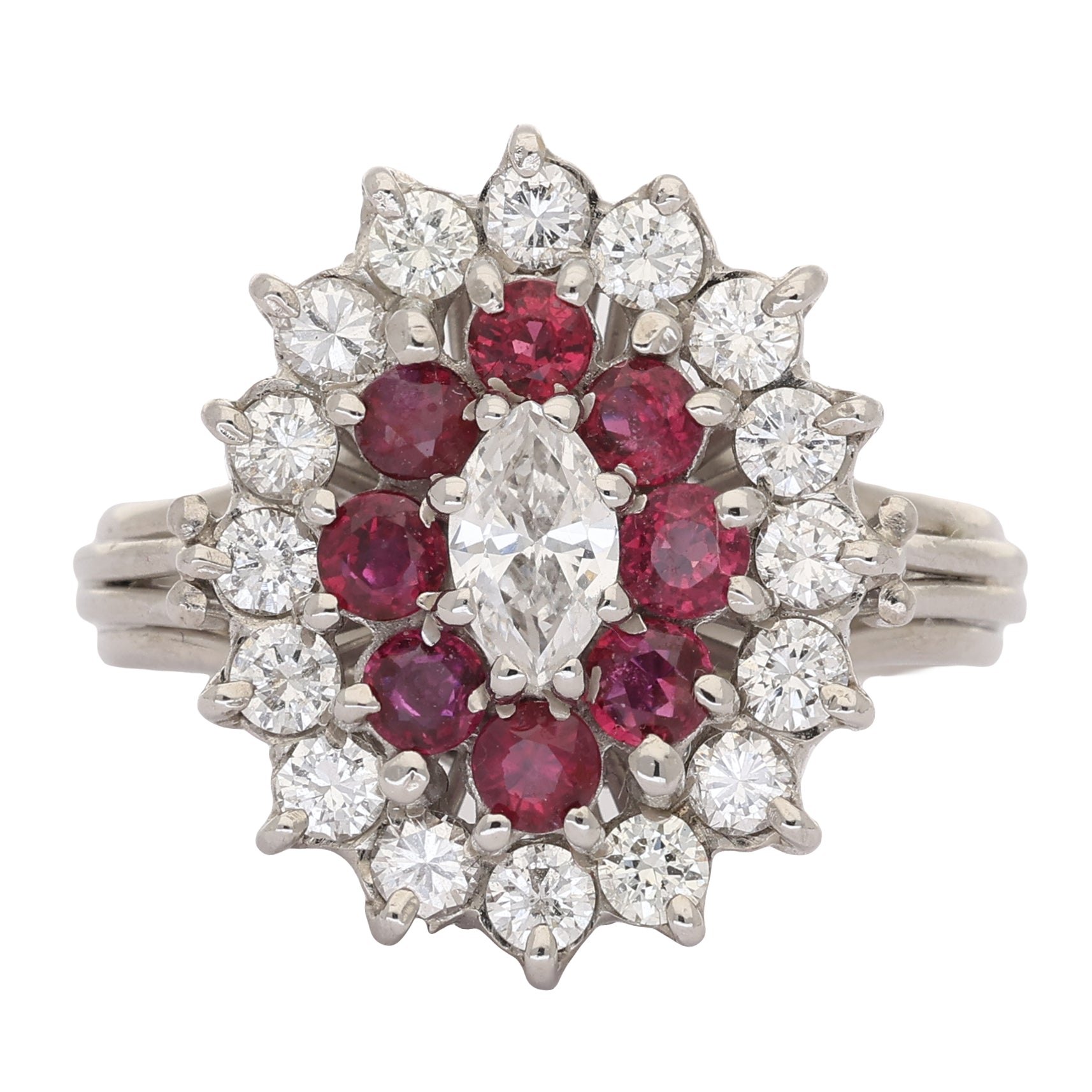 Vintage Marquise Ruby and Diamond Cluster Ring
