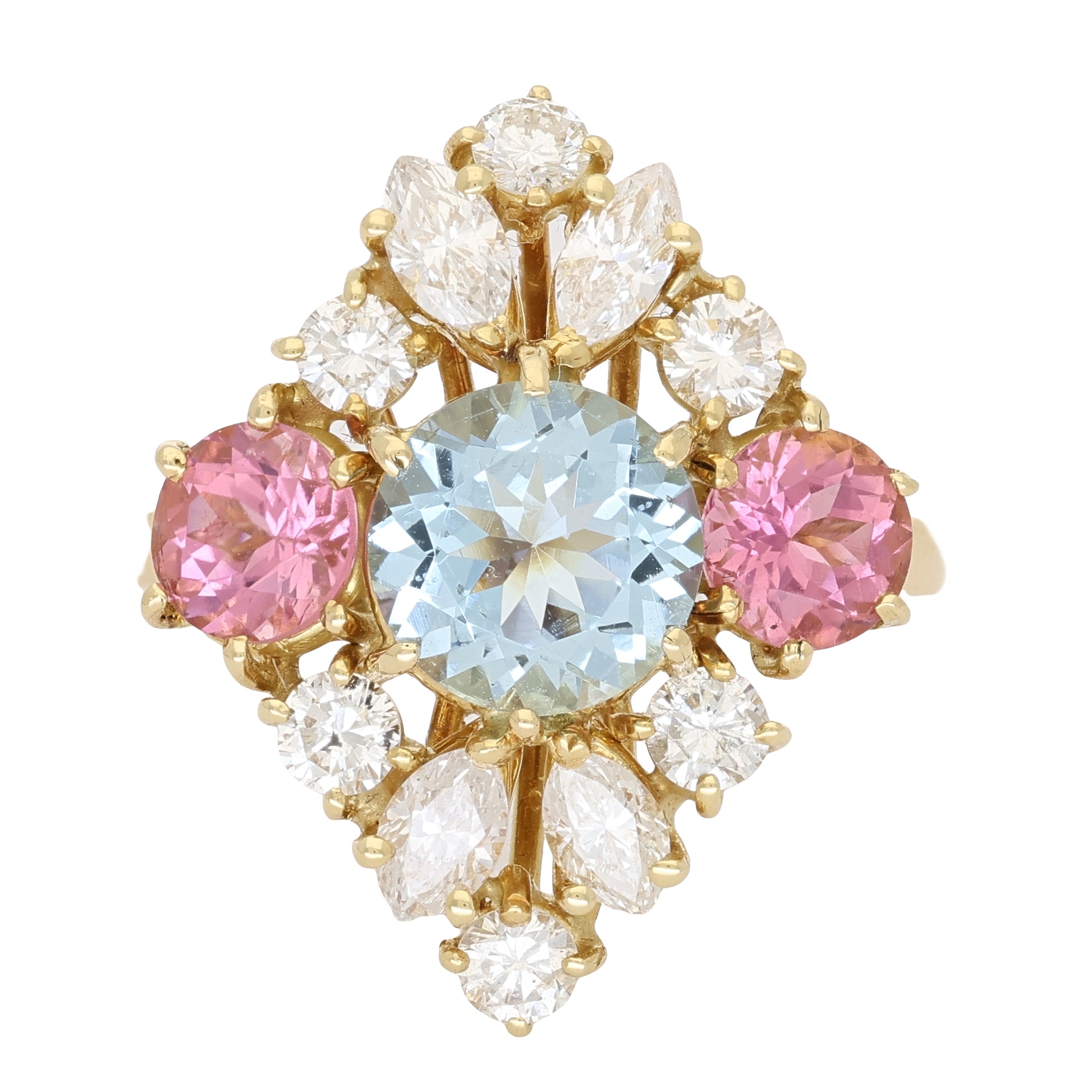 Vintage Rubellite and Diamond Cluster Ring