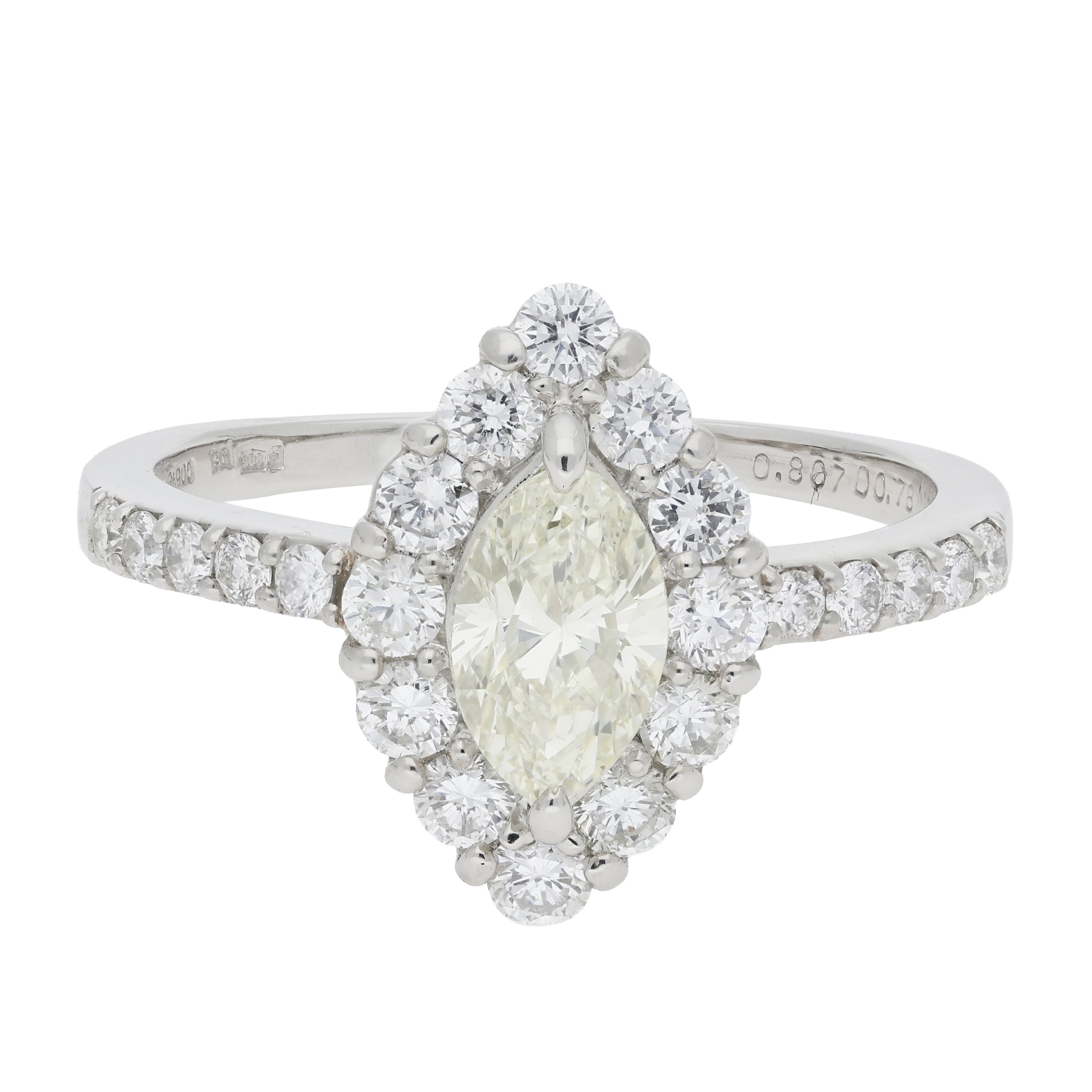 Vintage Marquise Cut Yellow Diamond Cluster Ring