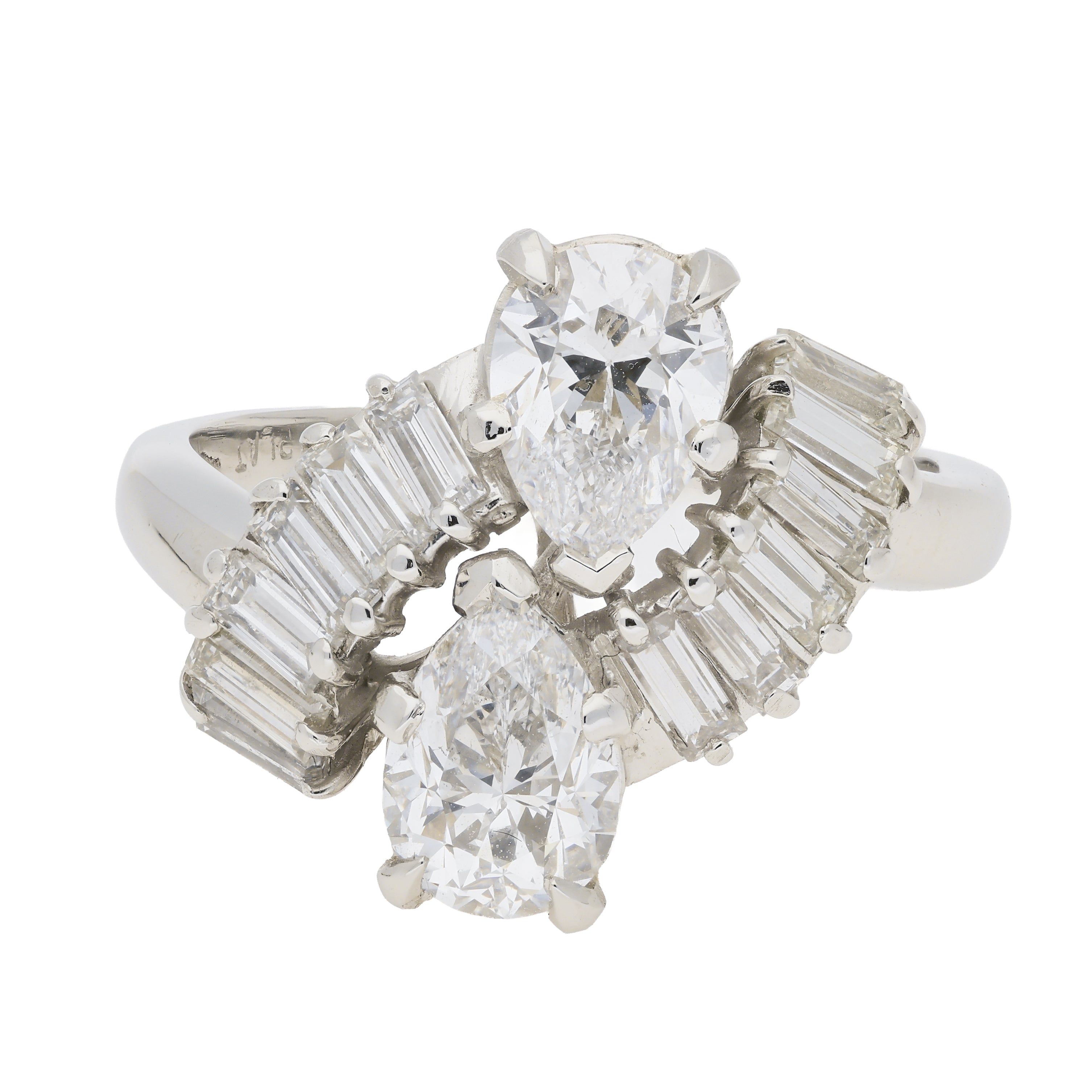 Vintage Pear and Baguette Cut Diamond Crossover Ring