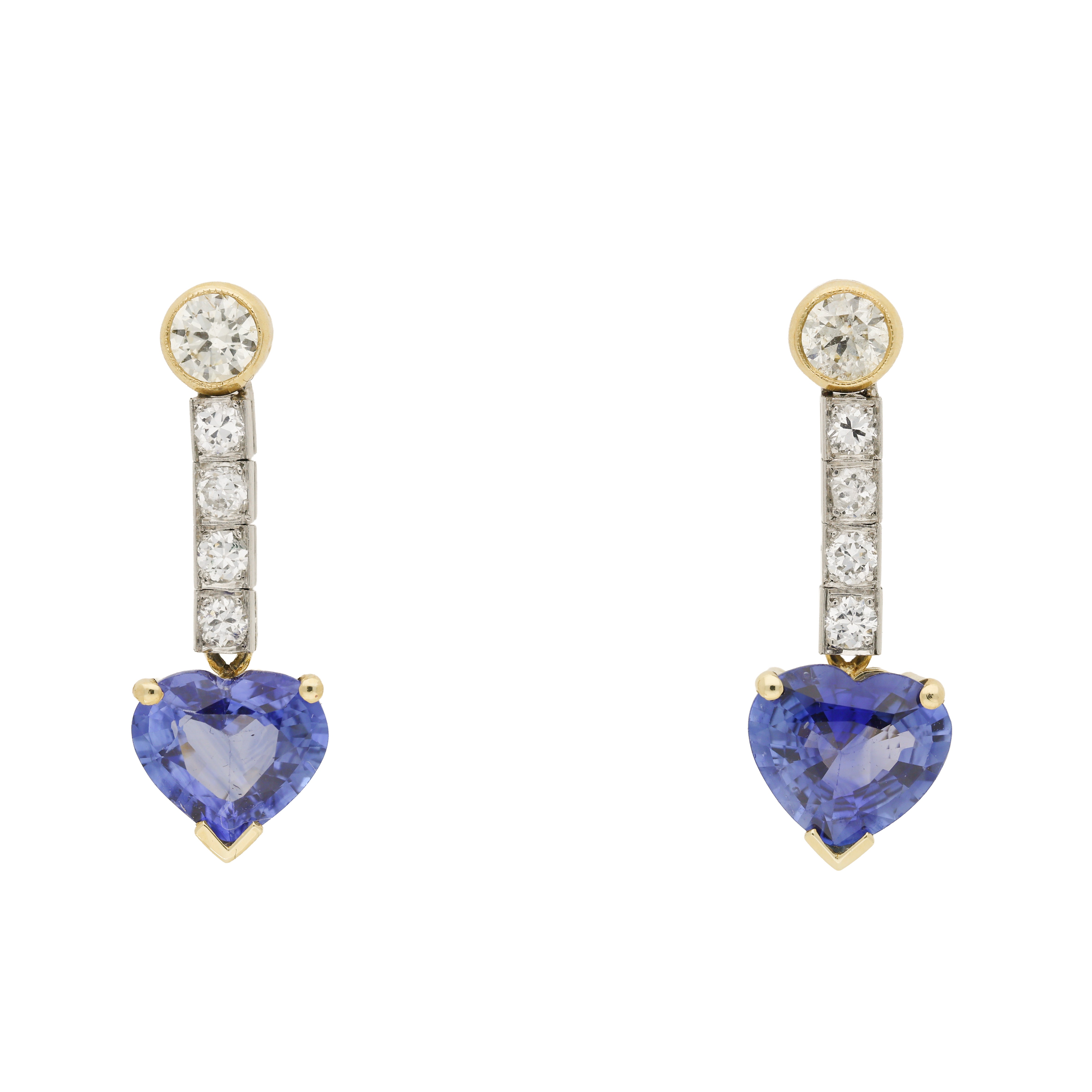 Vintage Diamond and Blue Sapphire Heart Earrings