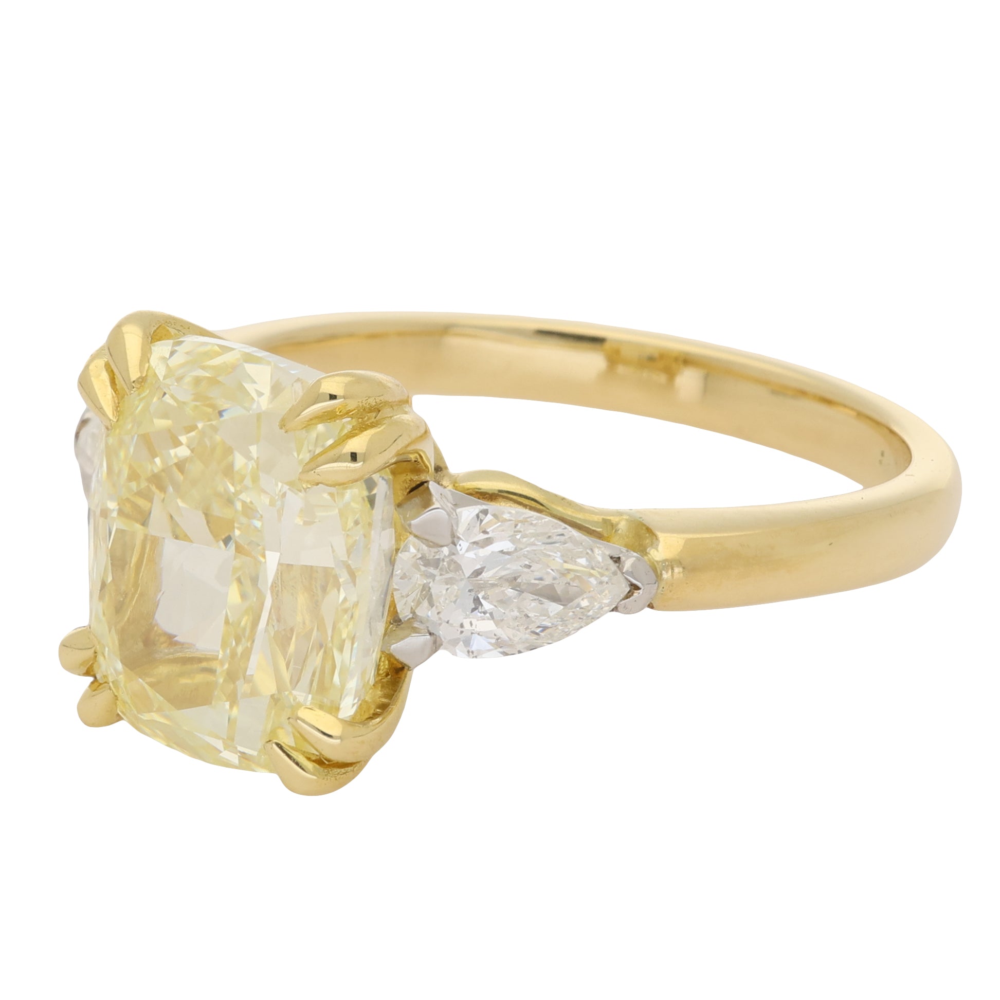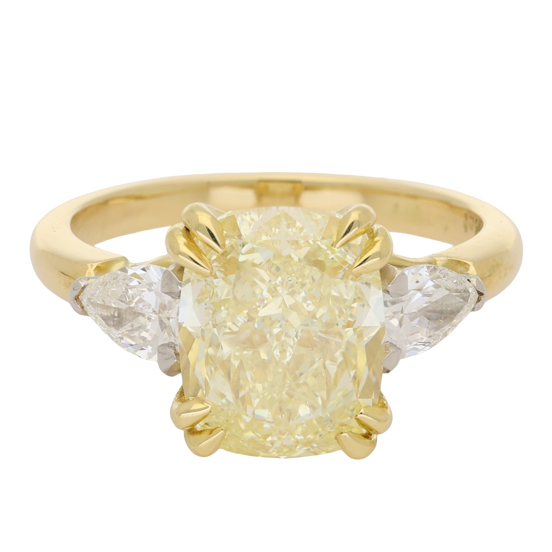 4.21cts Cushion Cut Yellow Diamond Three Stone Ring