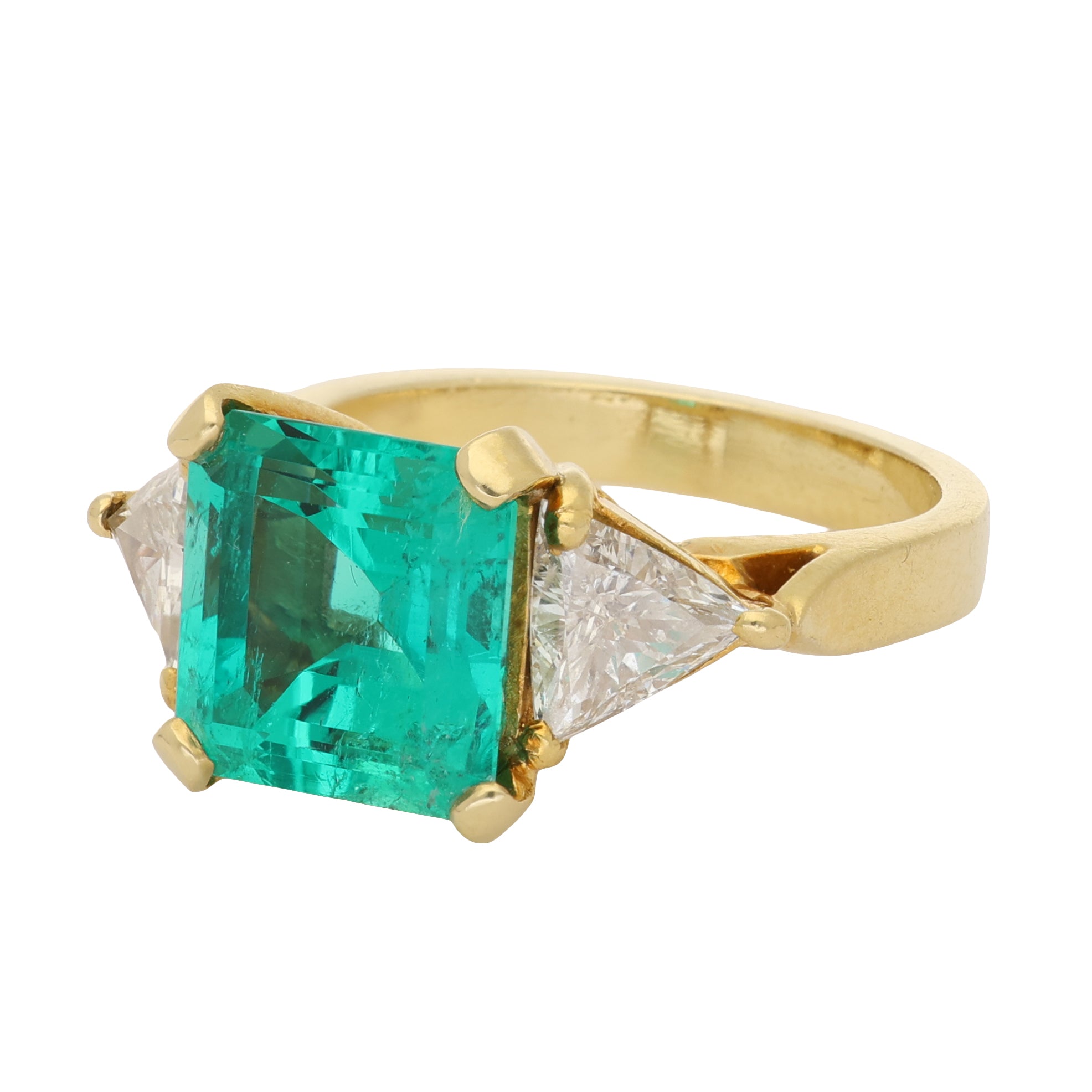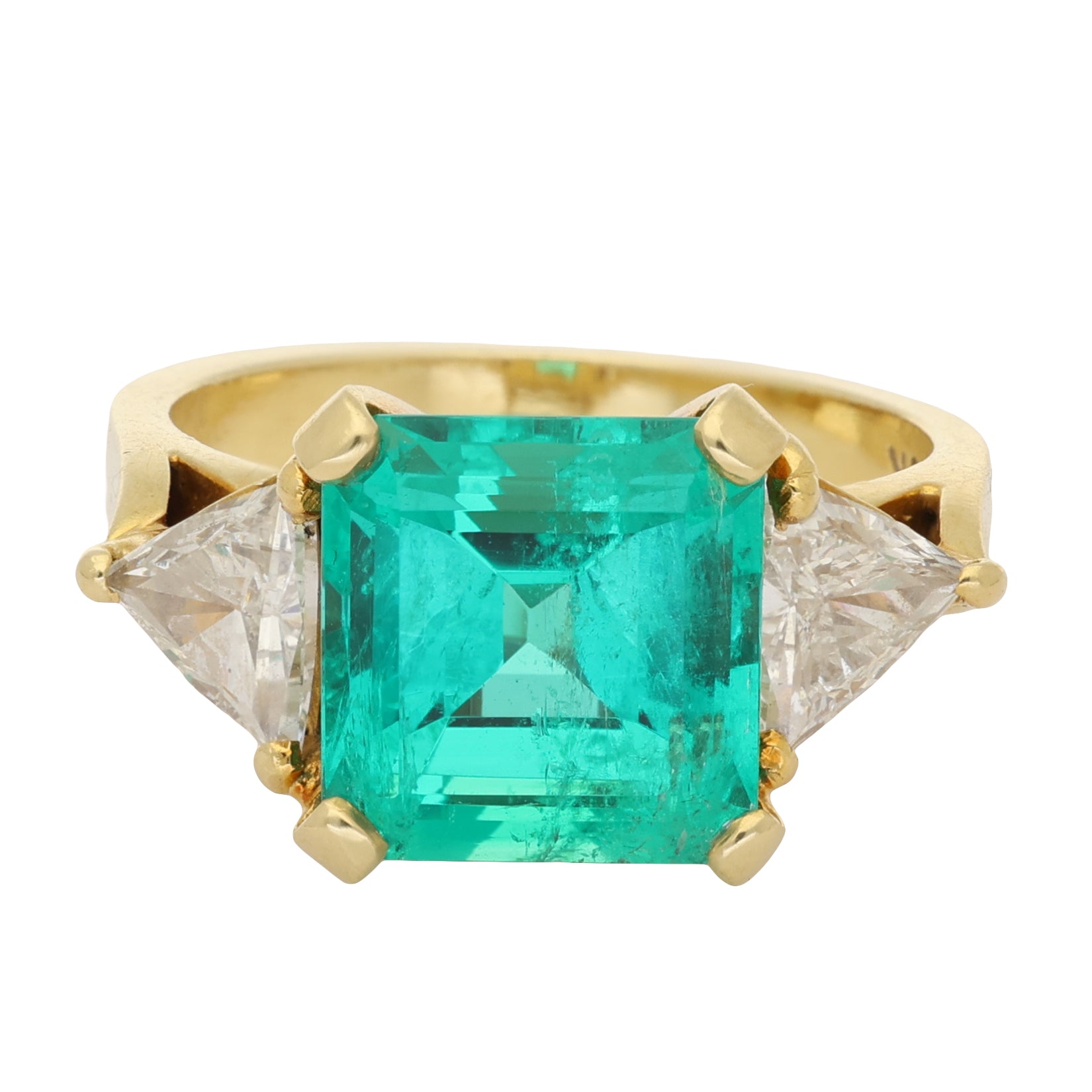 Vintage Asscher Cut Emerald and Diamond Three Stone Ring