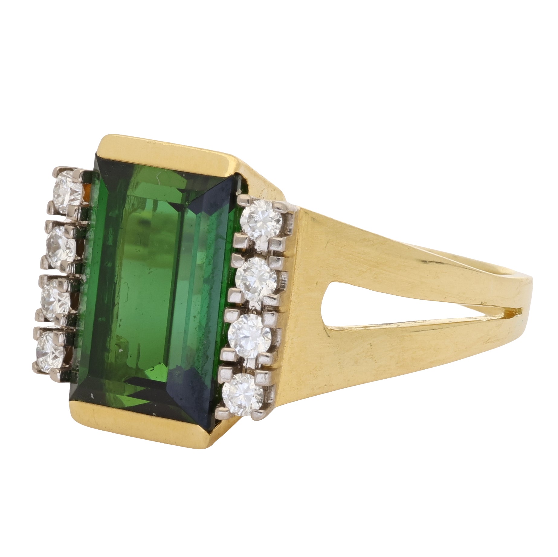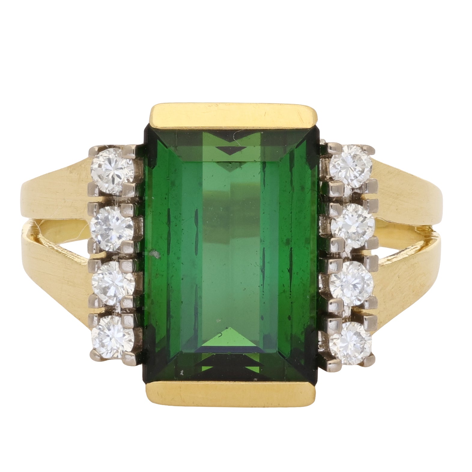 Vintage Emerald Cut Green Tourmaline and Diamond with Split Shoulders Ring
