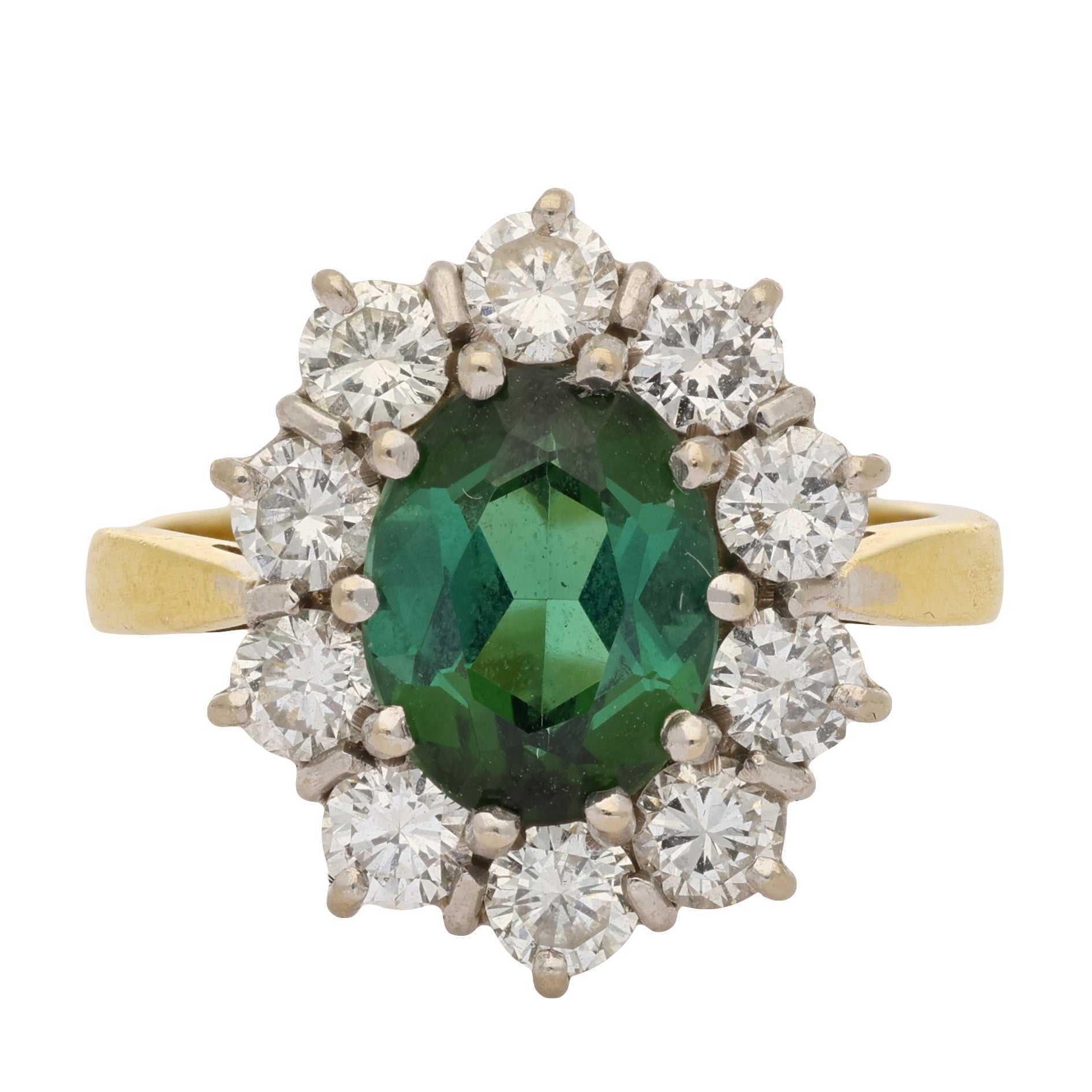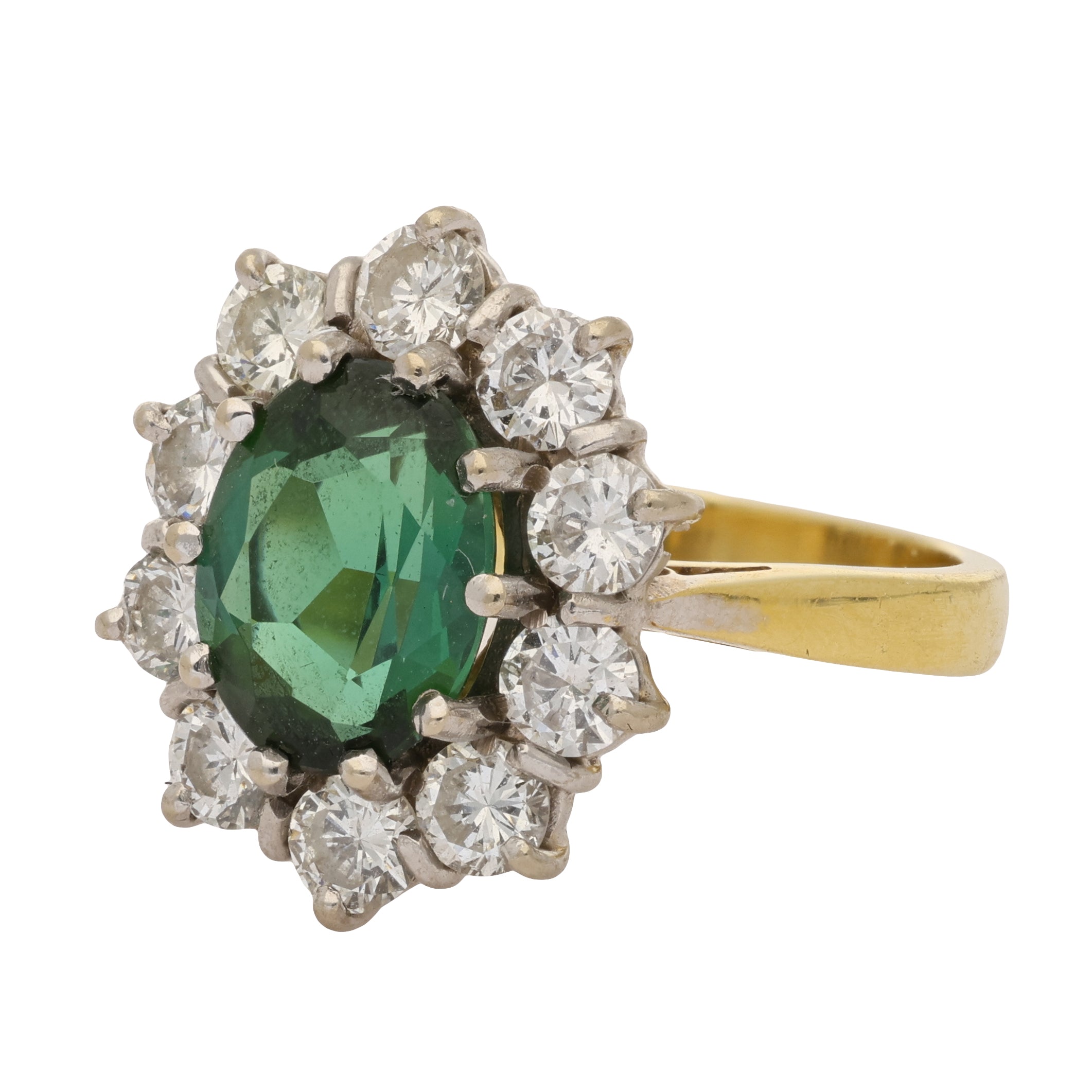 Vintage Oval Cut Green Tourmaline and Diamond Cluster Ring