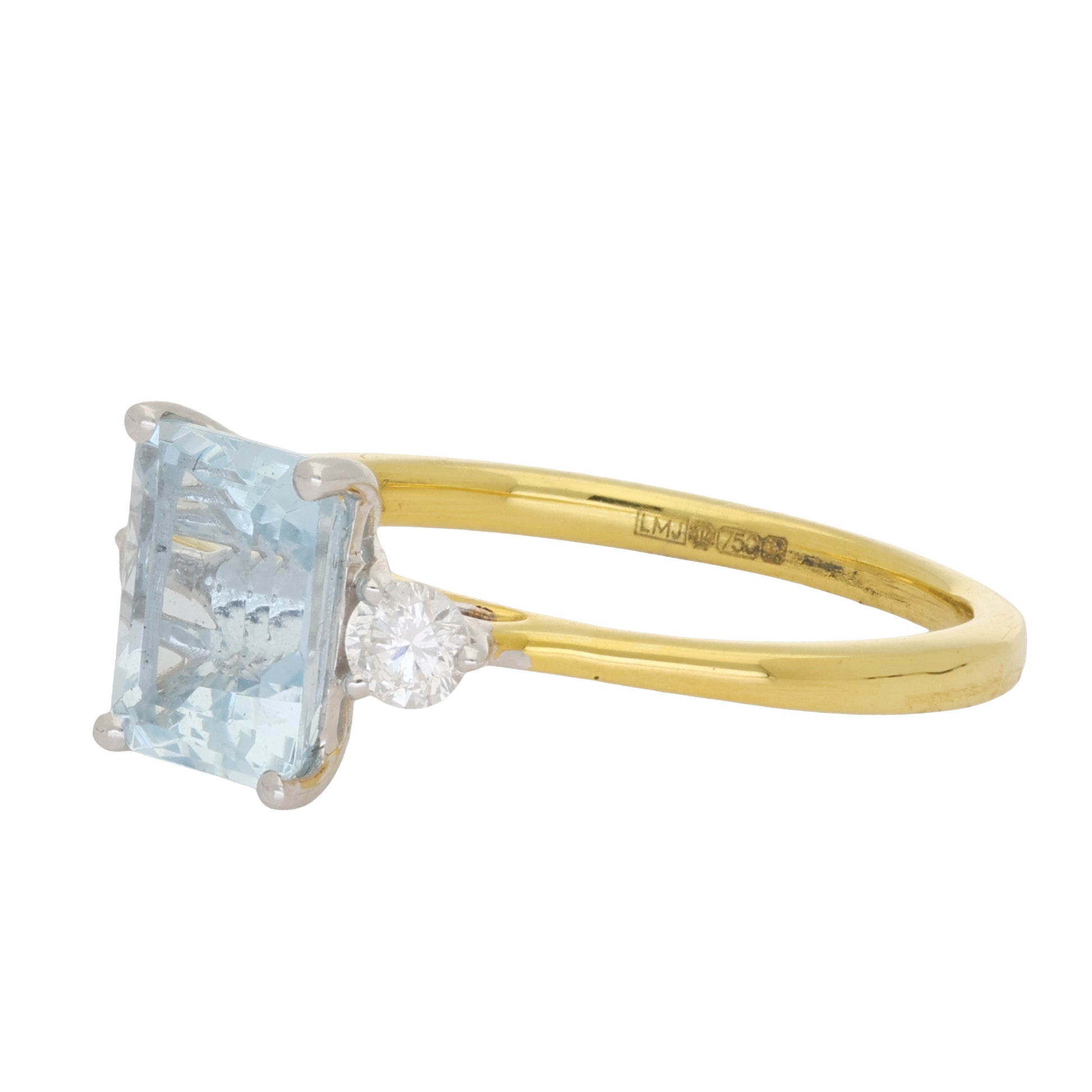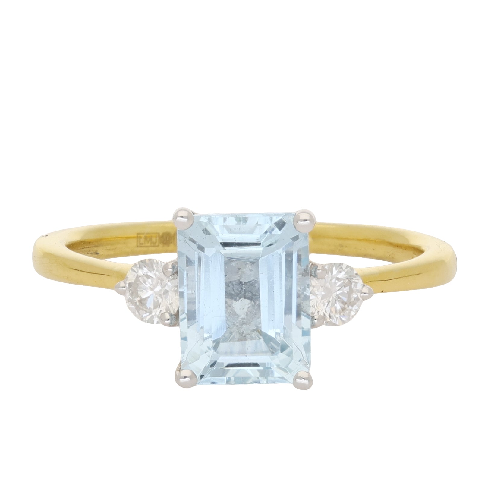 Emerald Cut Aquamarine and Diamond Three Stone Ring