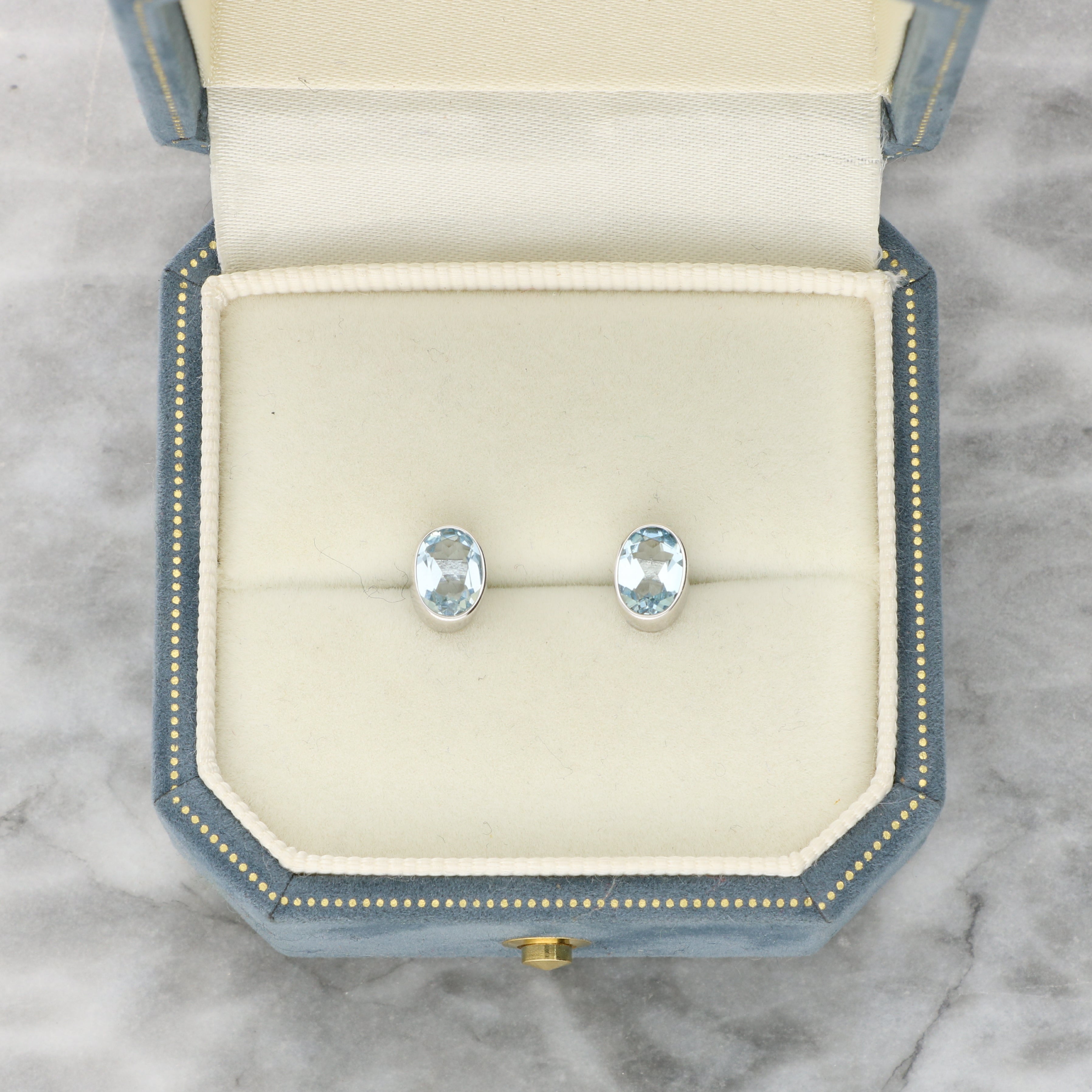 Bezel Set Oval Aquamarine Stud Earrings