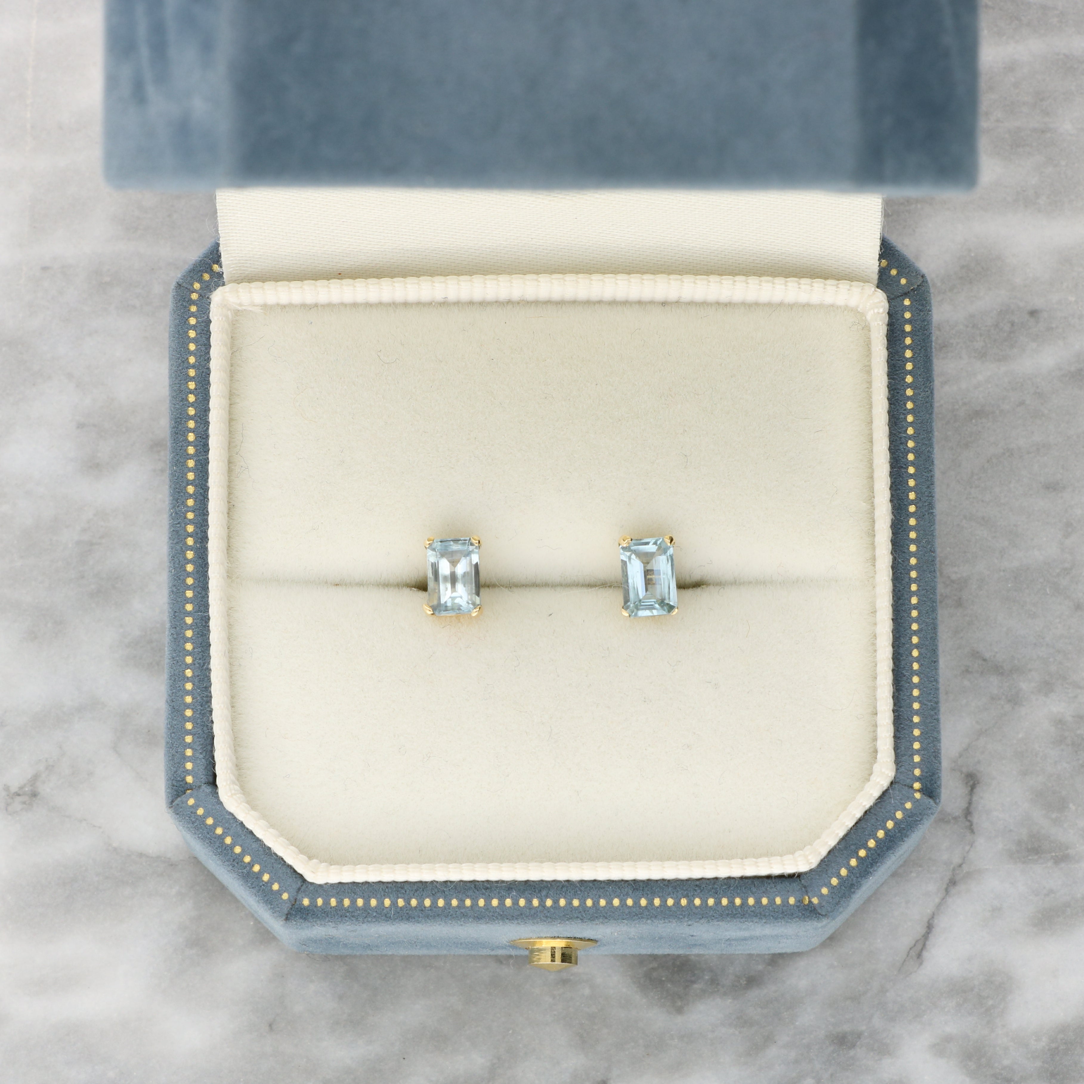 Emerald Cut Aquamarine Stud Earrings