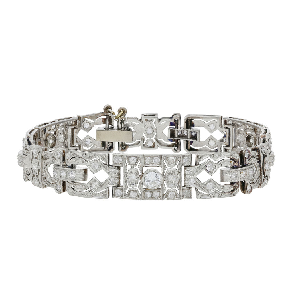 Vintage Mappin & Webb Blue Sapphire and Diamond Line Bracelet