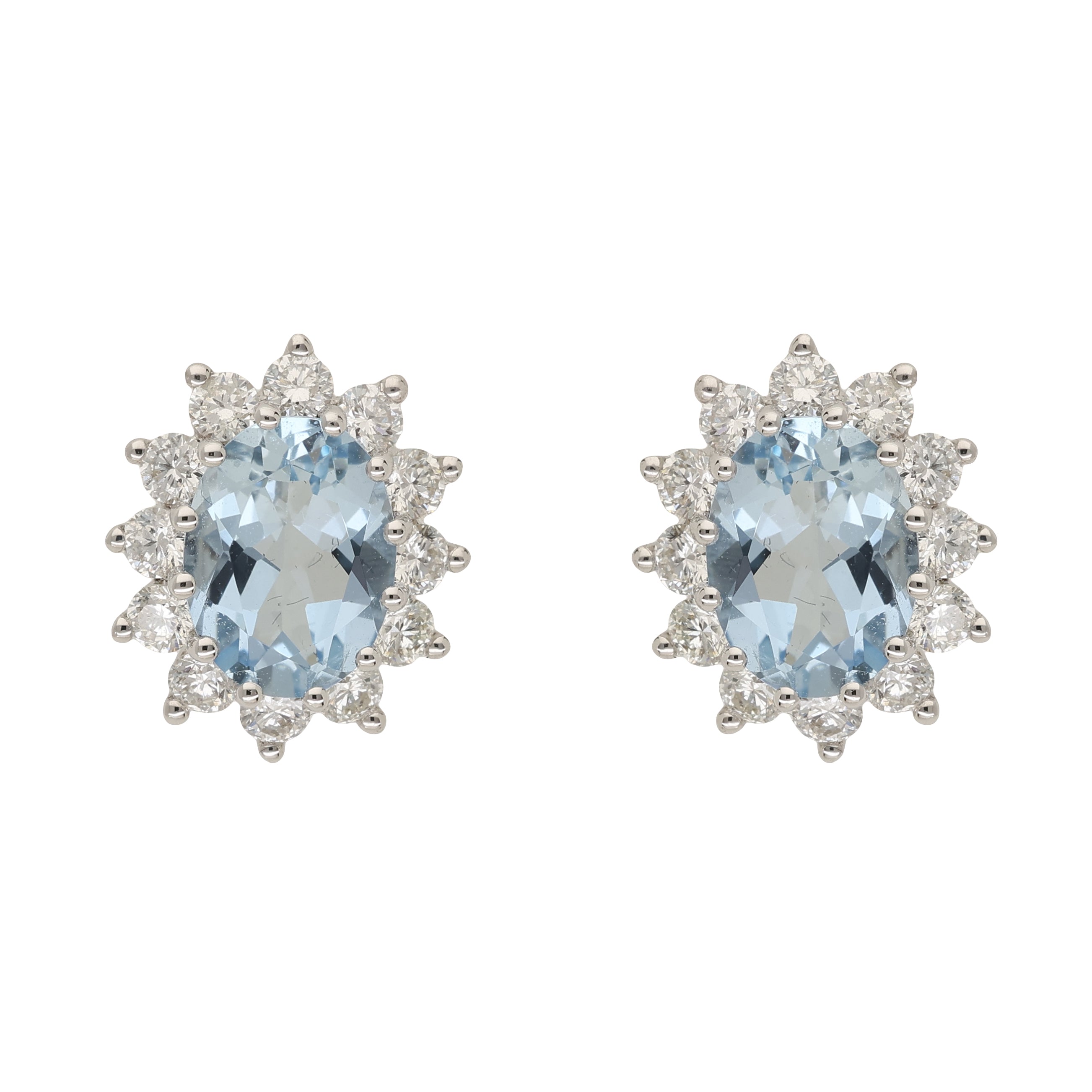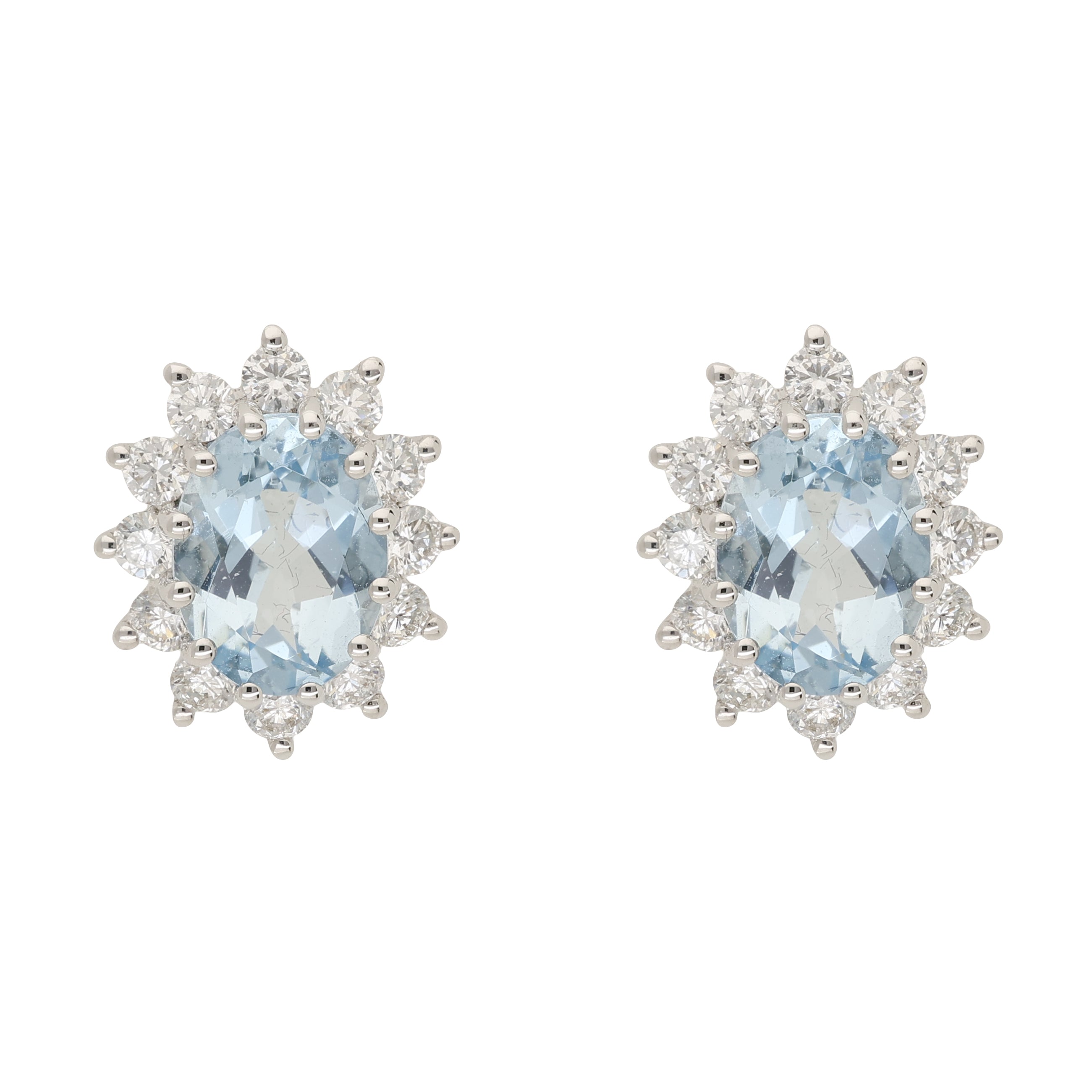 Vintage Aquamarine and Diamond Cluster Stud Earrings
