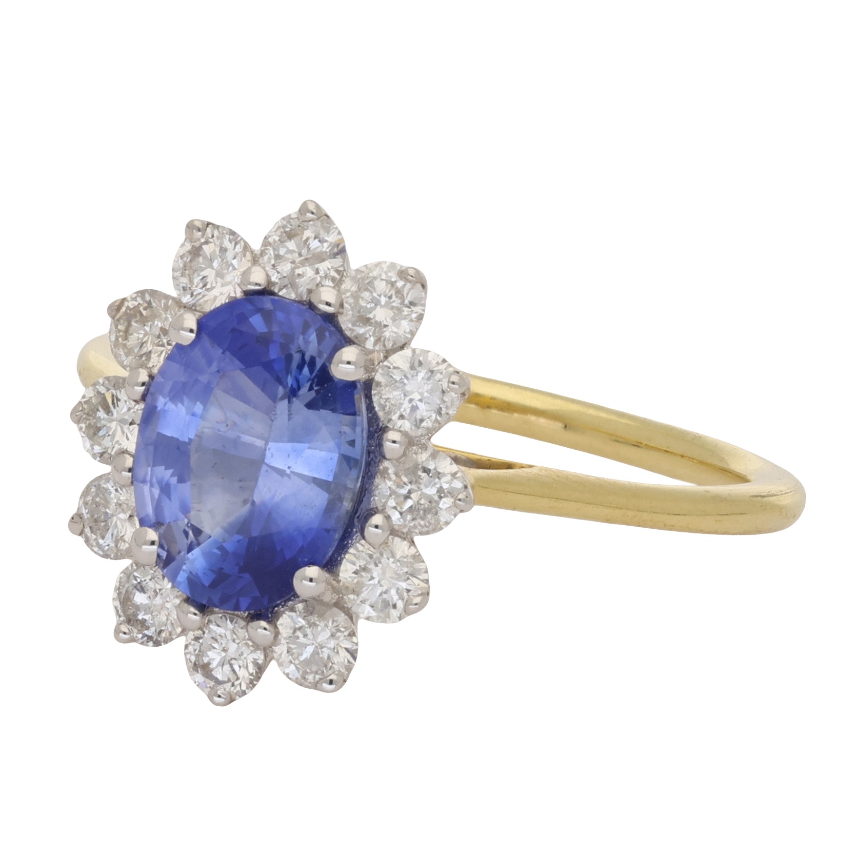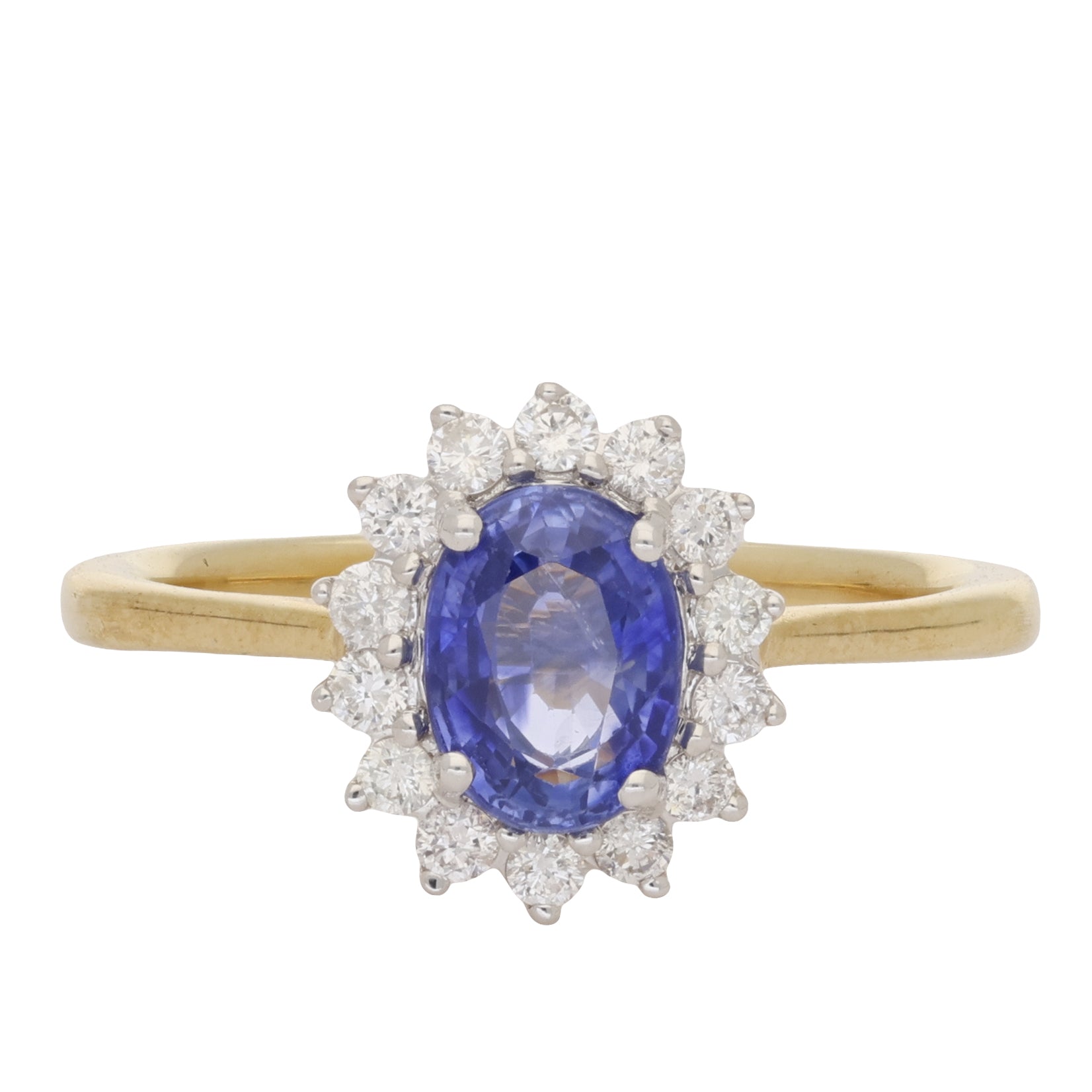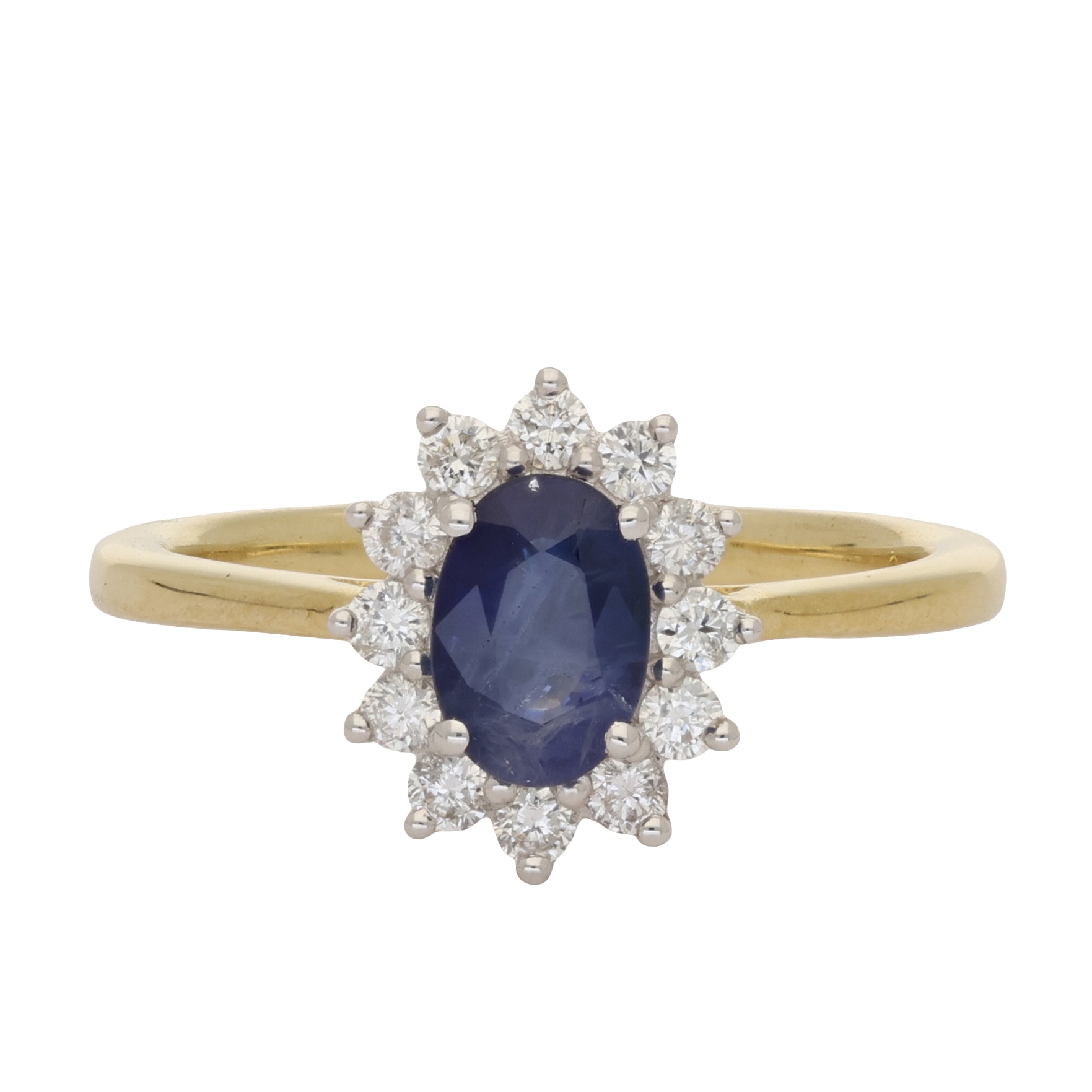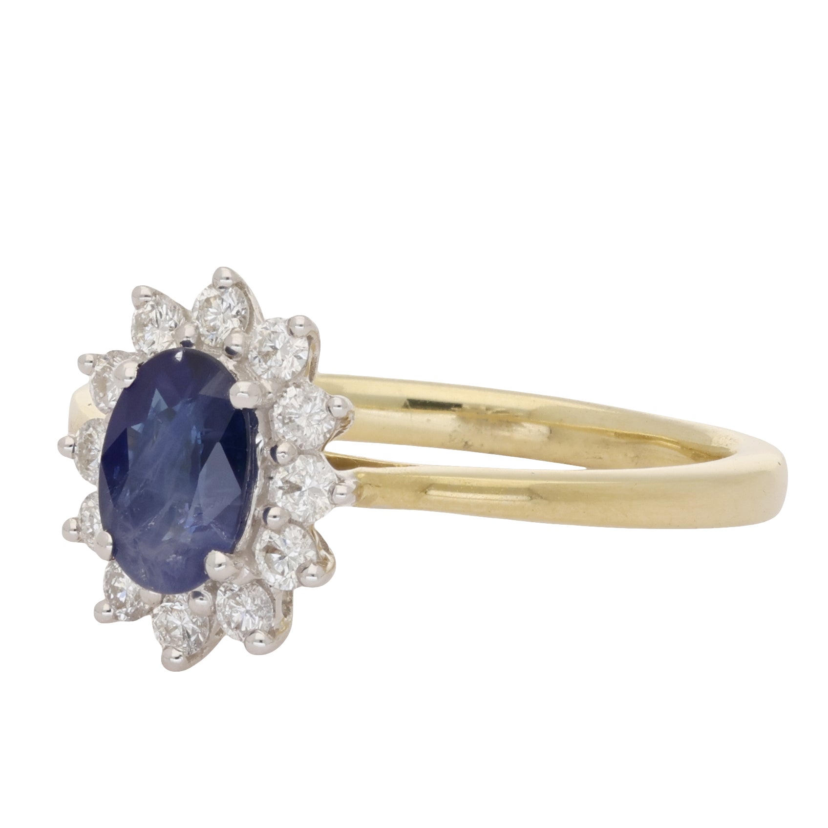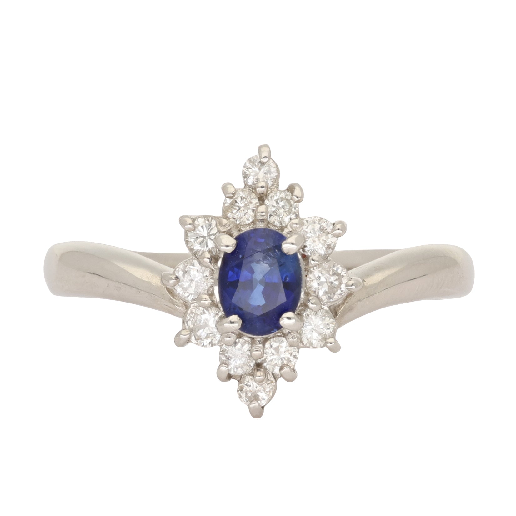 Oval Cut Blue Sapphire and Diamond Cluster Ring
