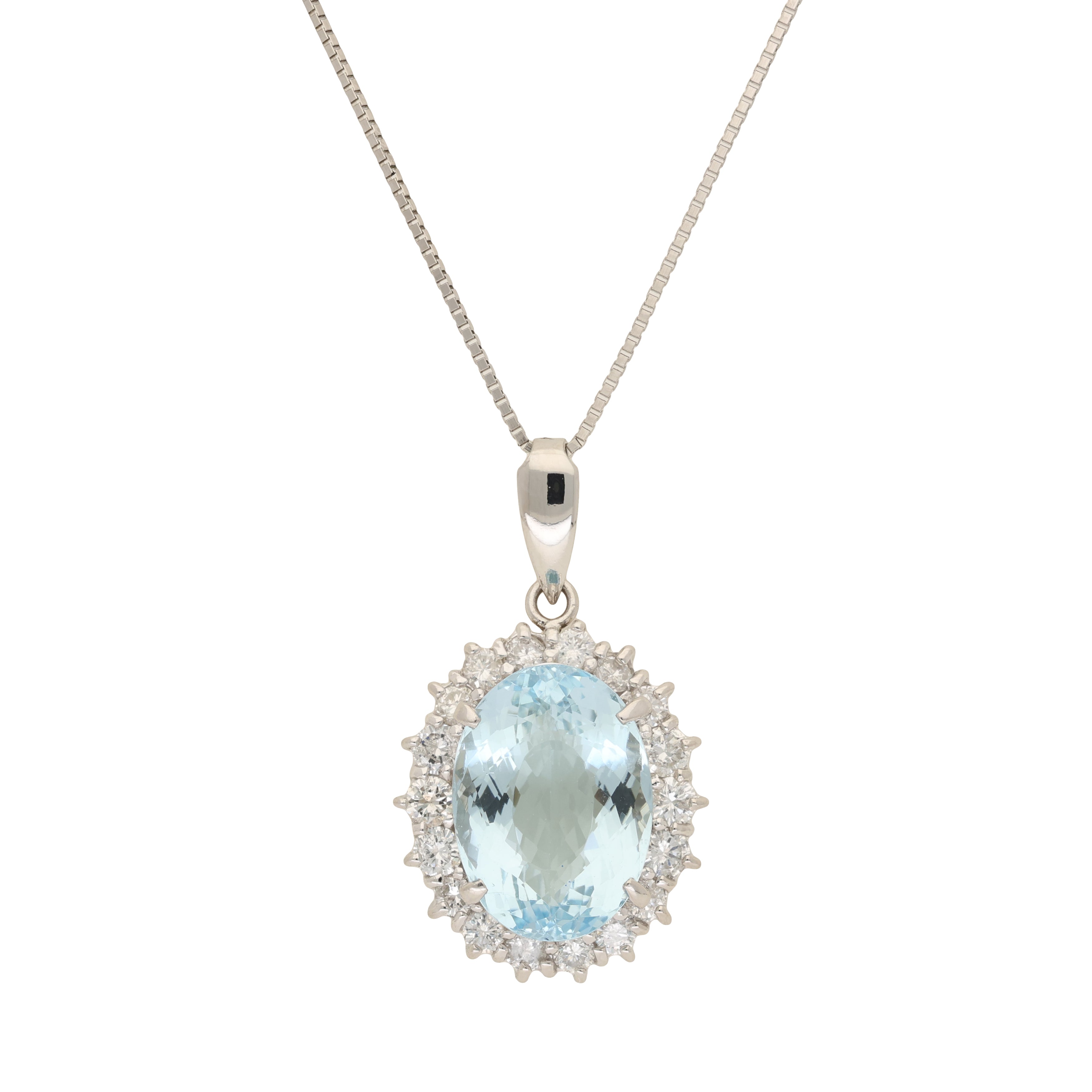Vintage 5.55ct Aquamarine and Diamond Cluster Pendant Necklace