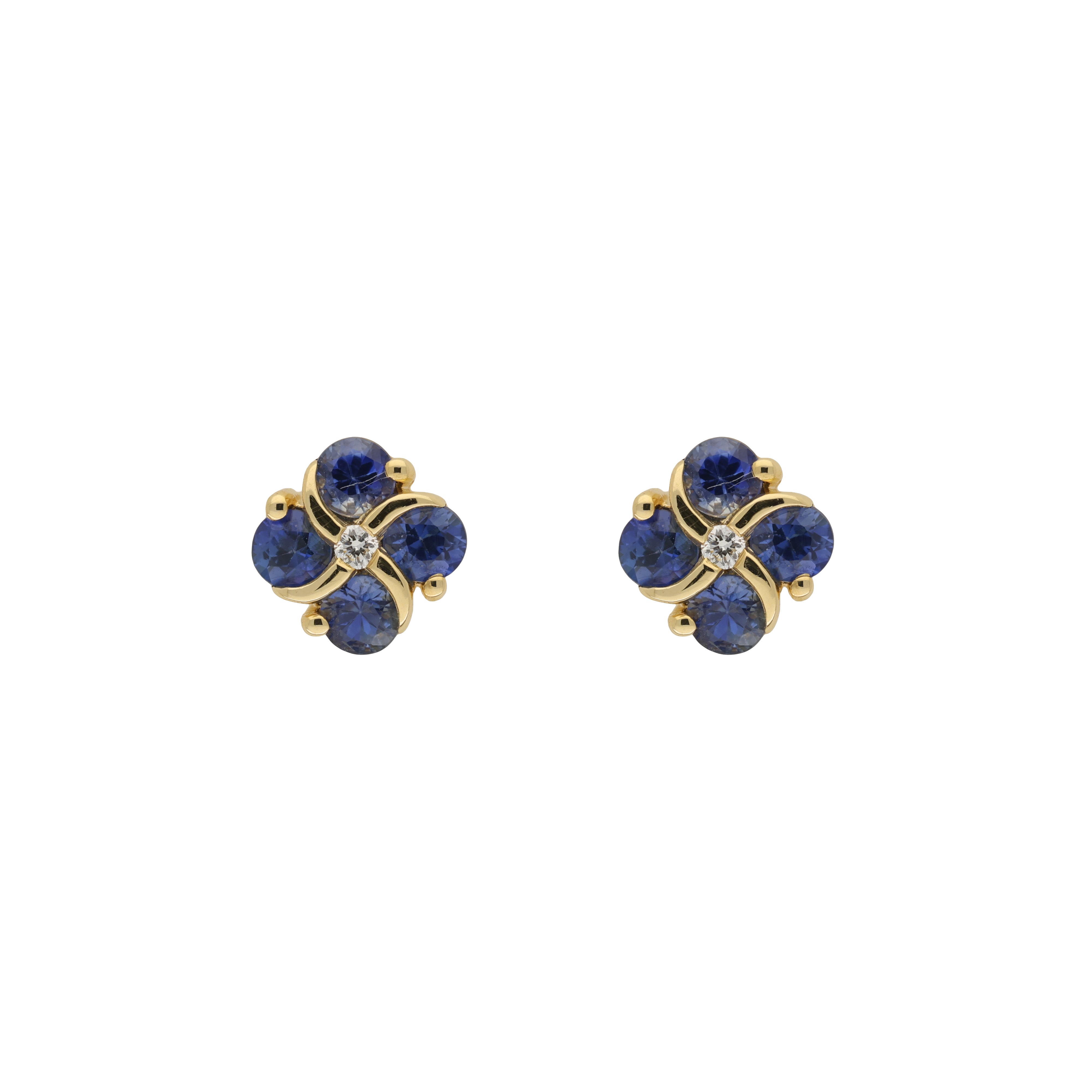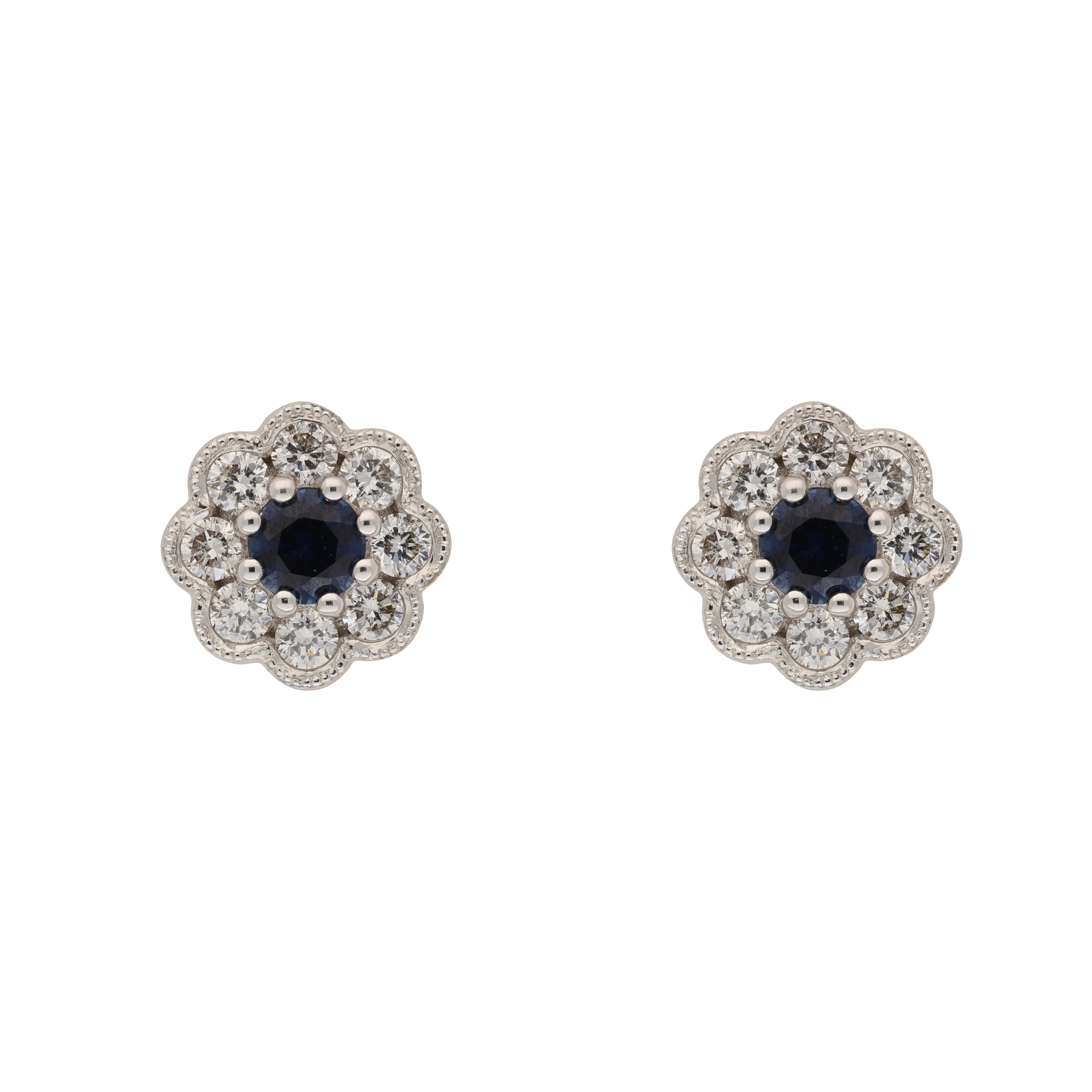 Art Deco Style Sapphire and Diamond Cluster Earrings