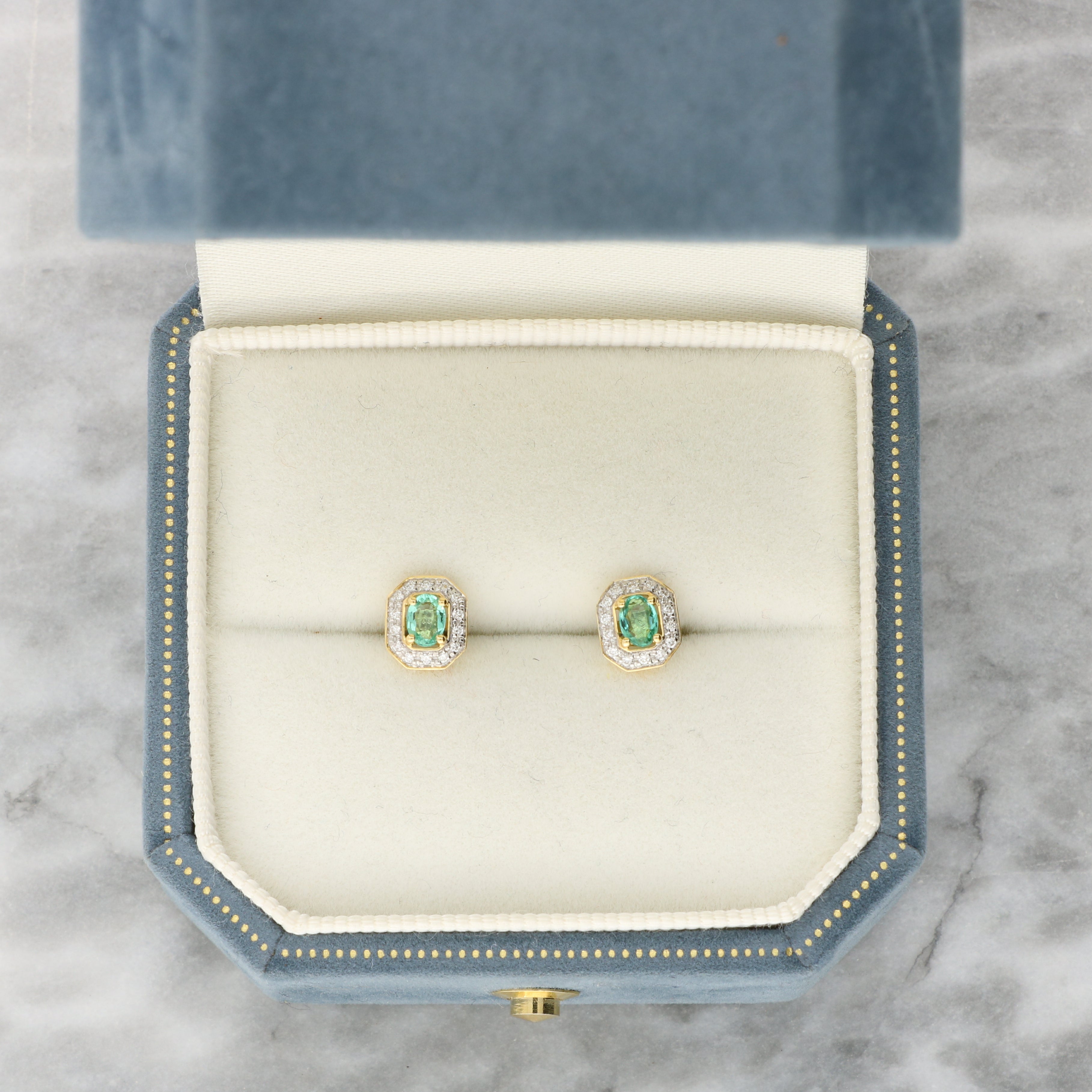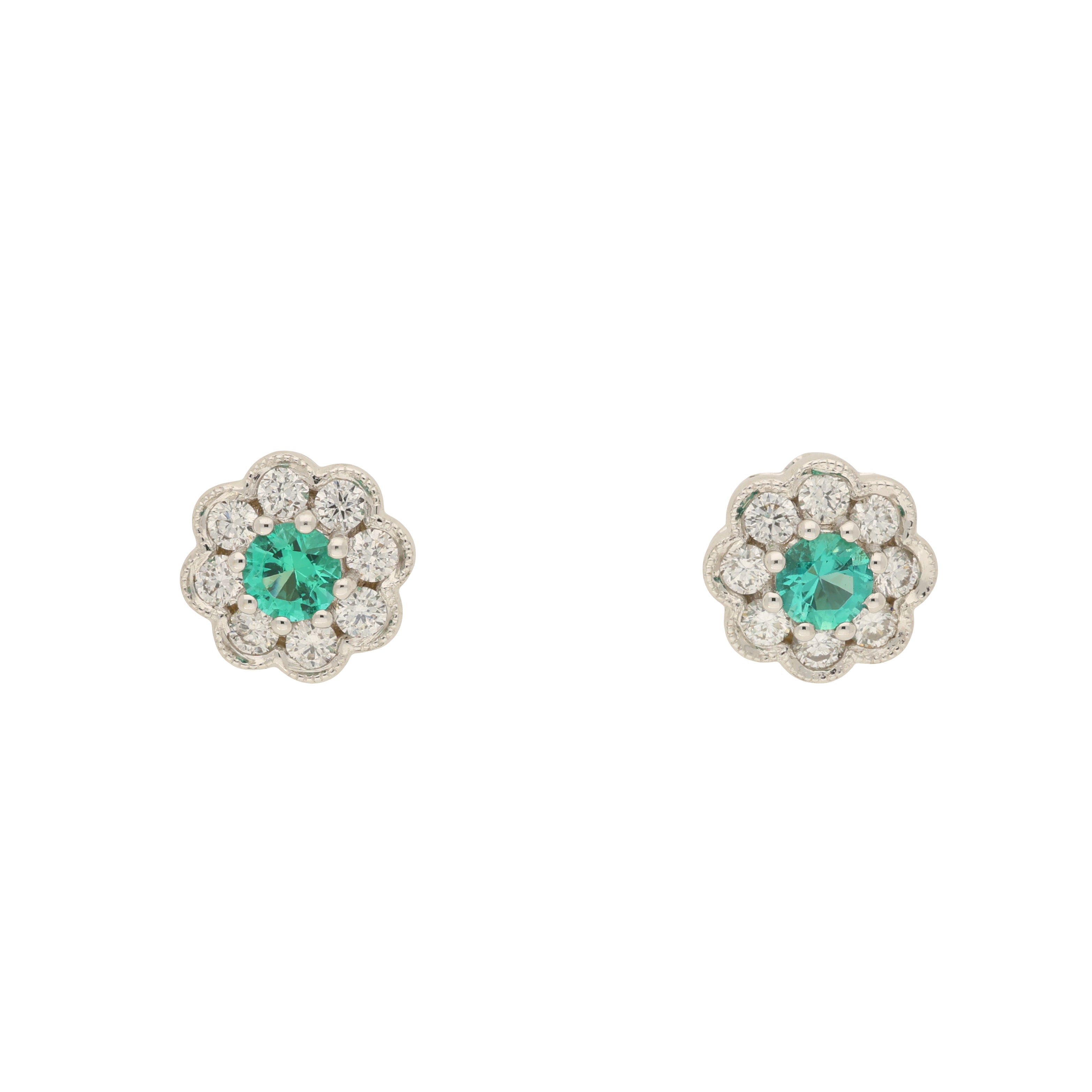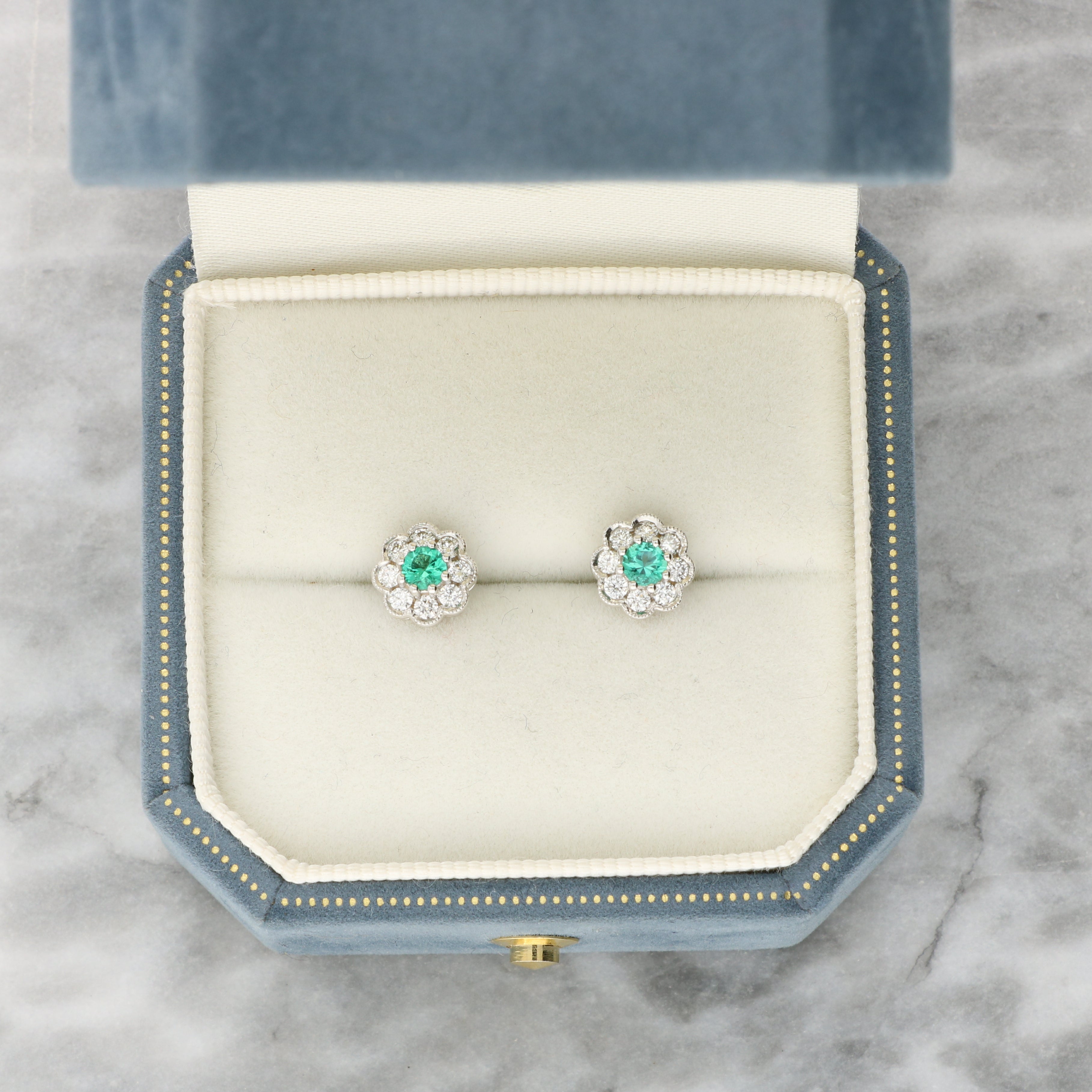 Art Deco Style Emerald and Diamond Cluster Earrings