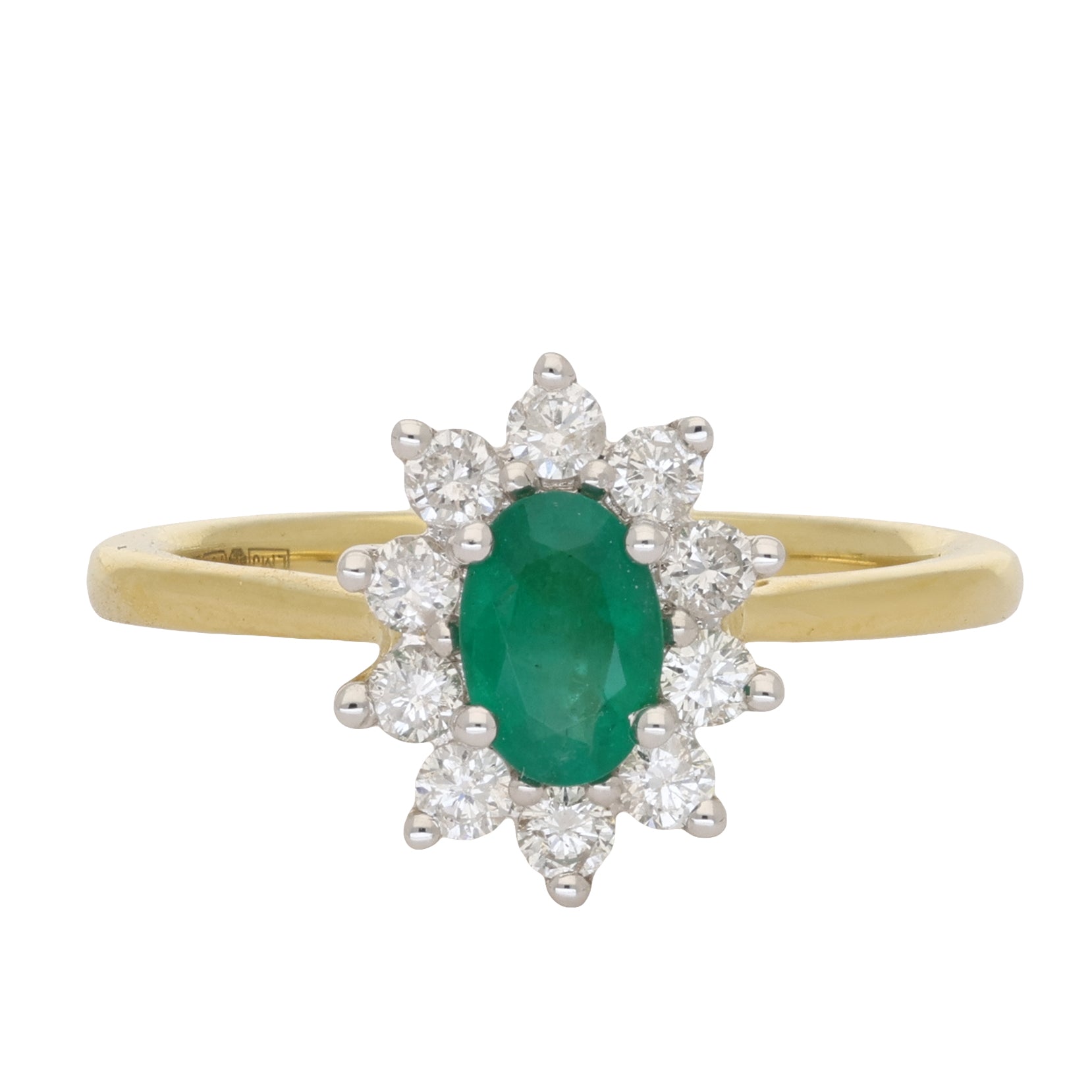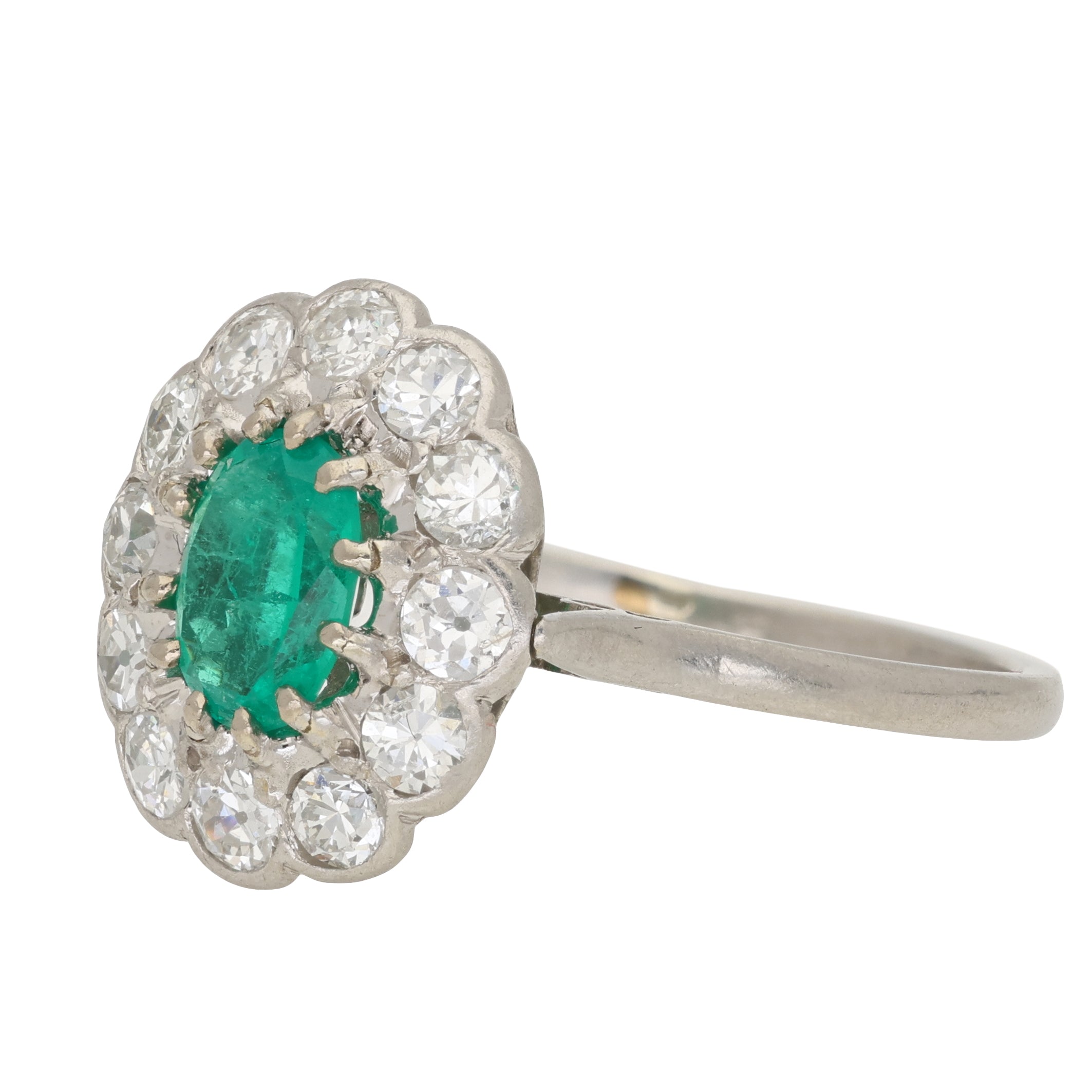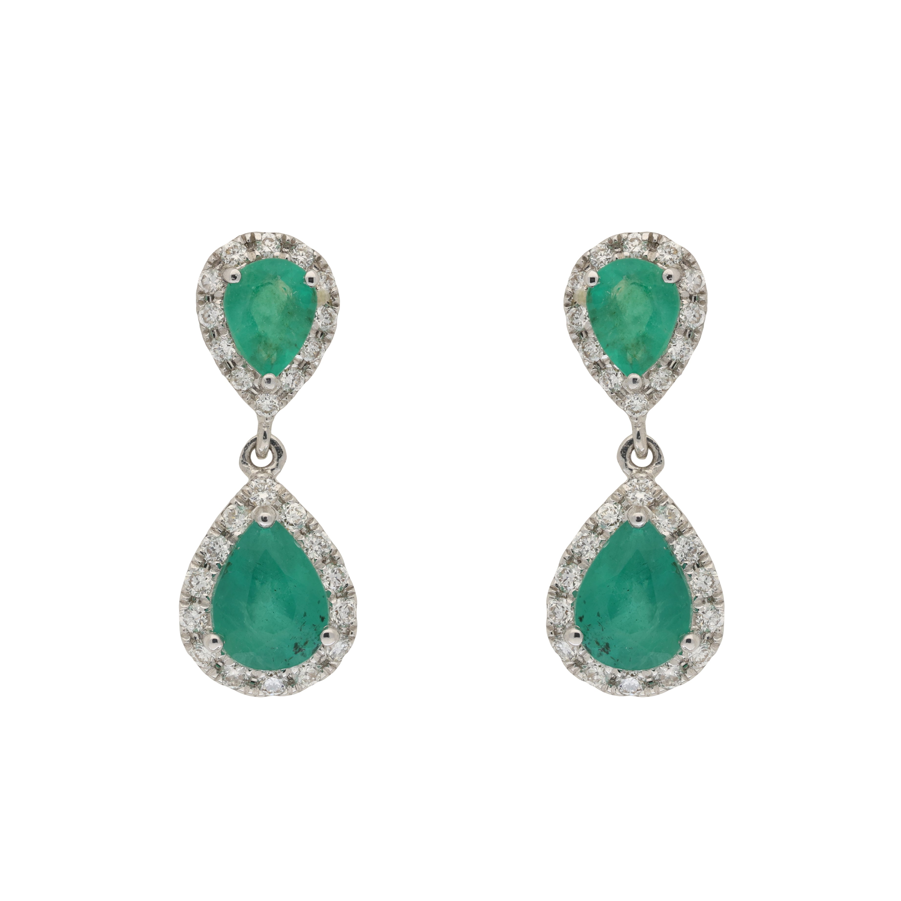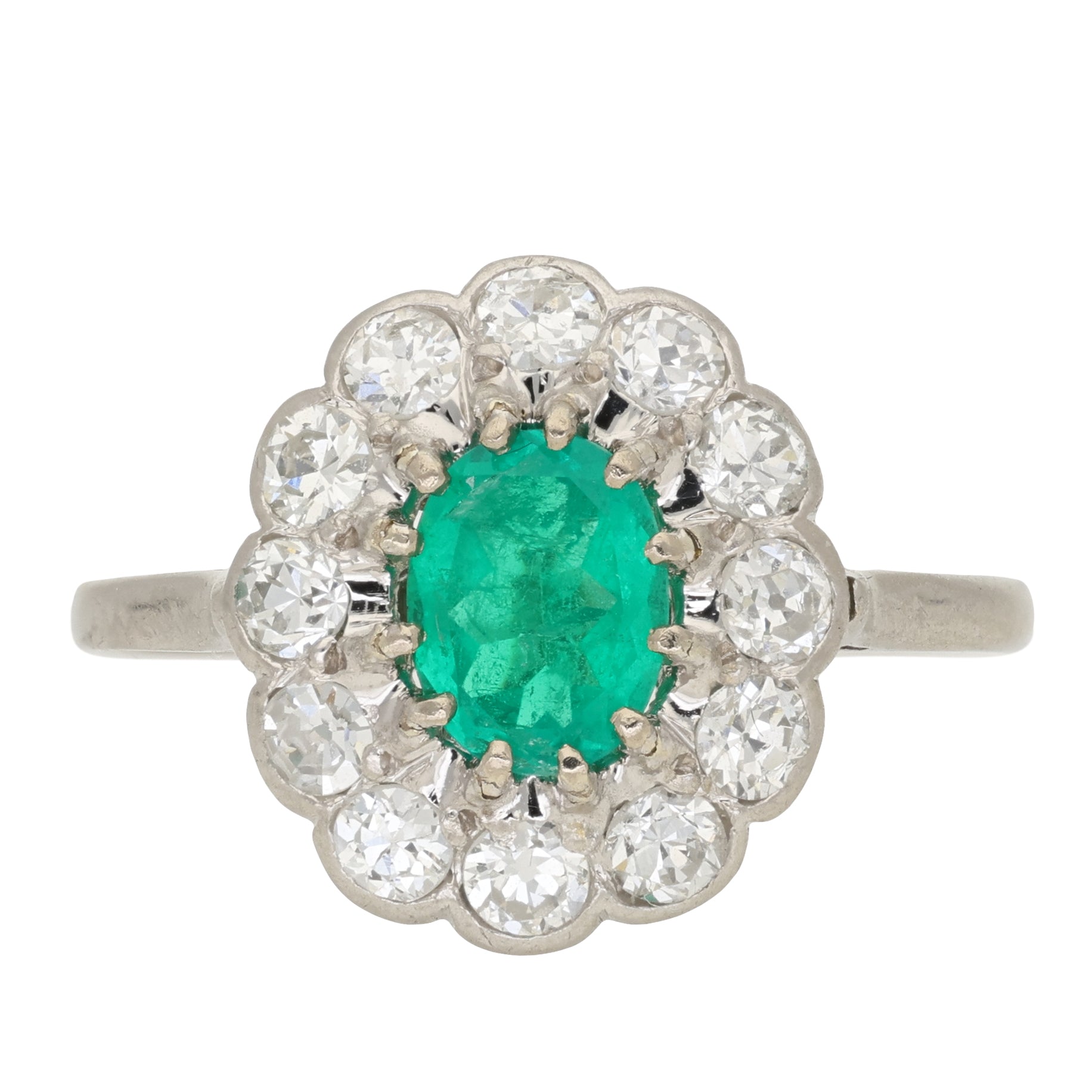 Art Deco Style Emerald and Diamond Cluster Earrings