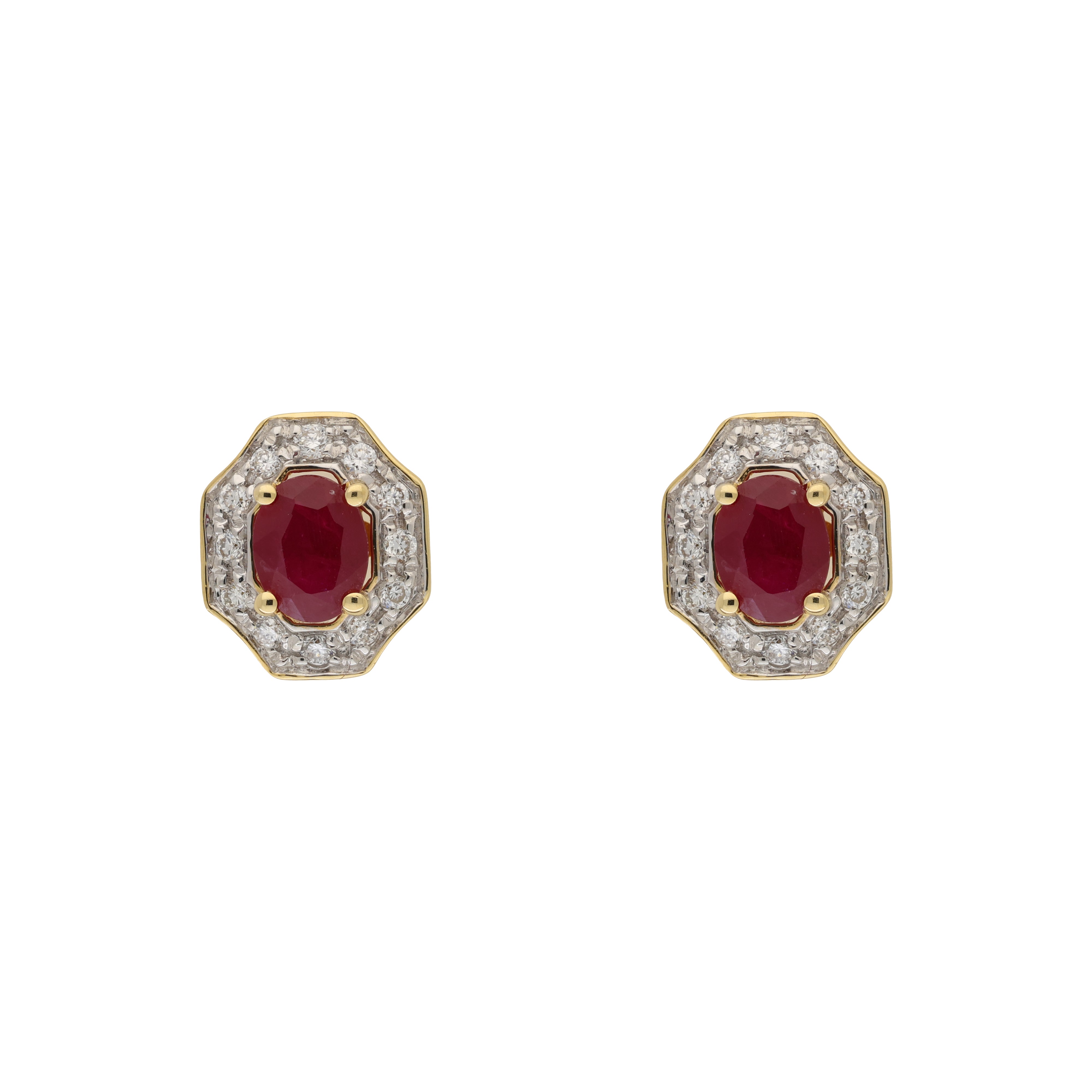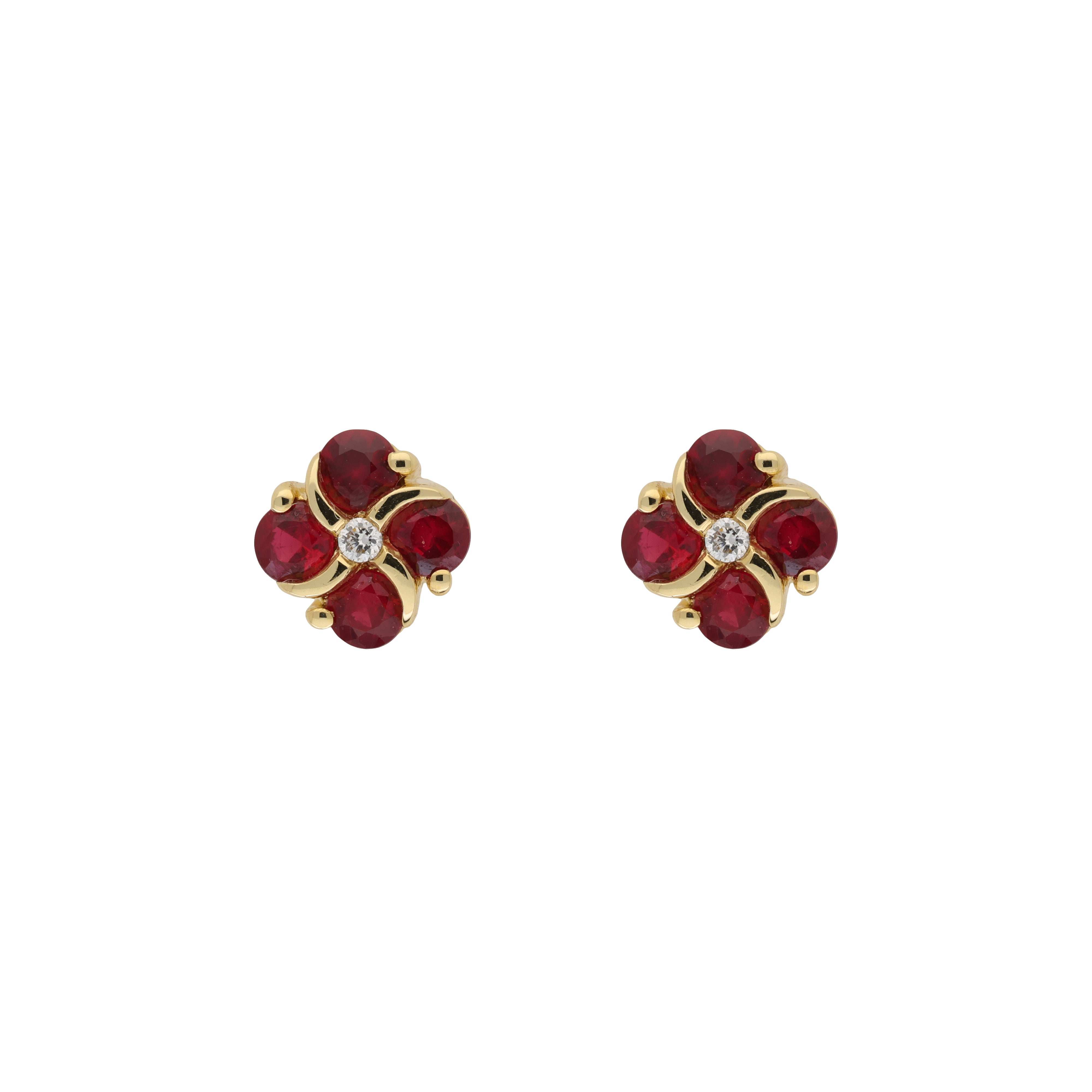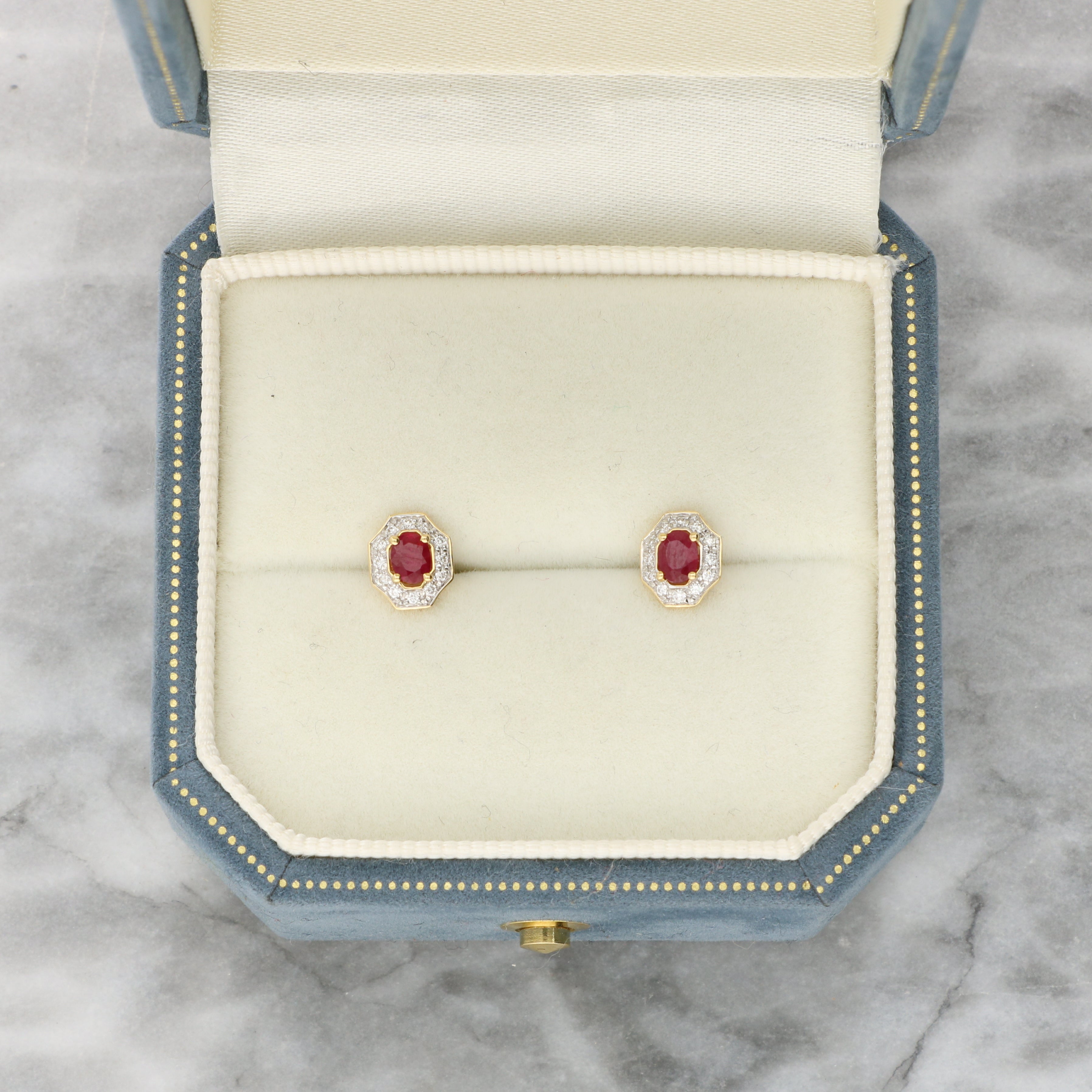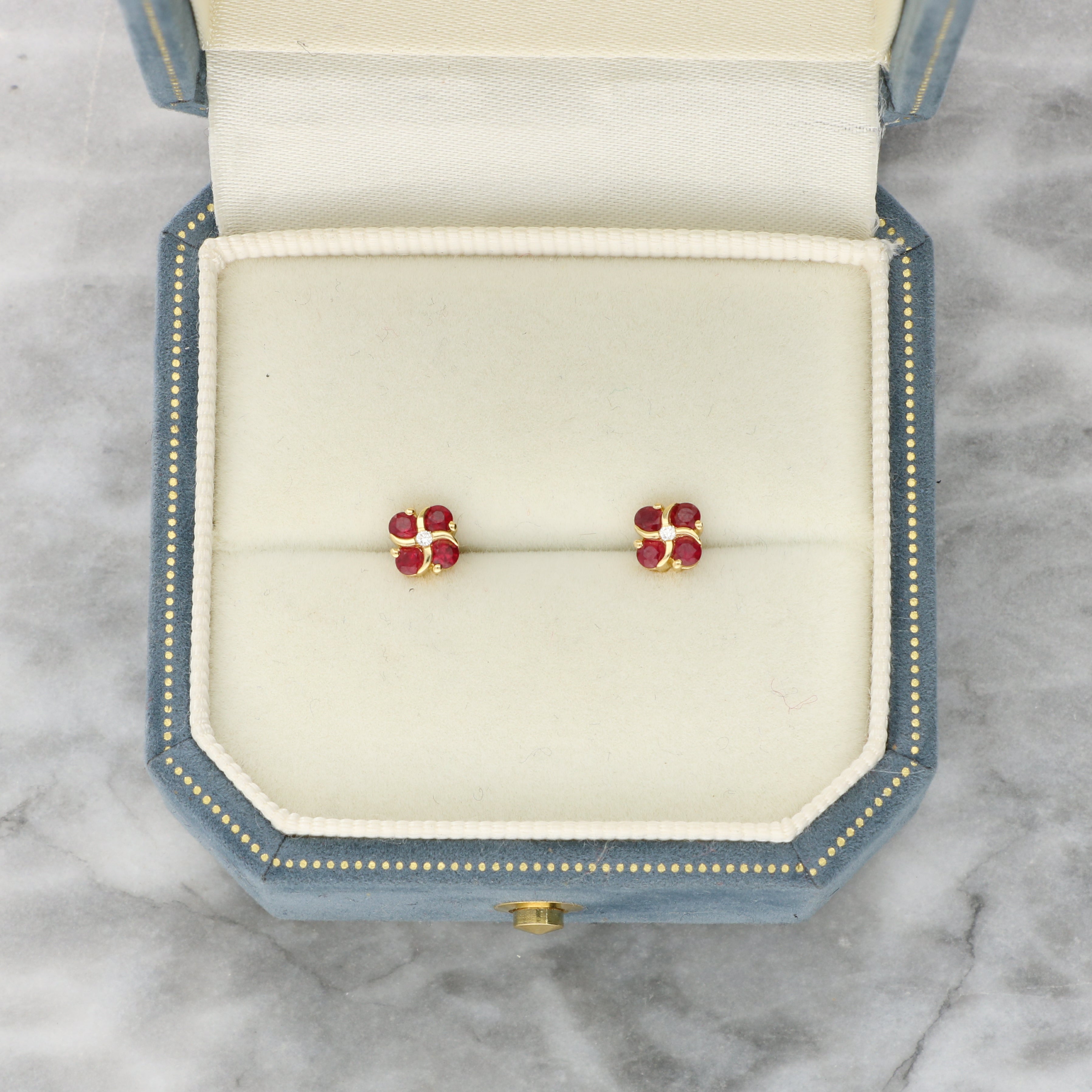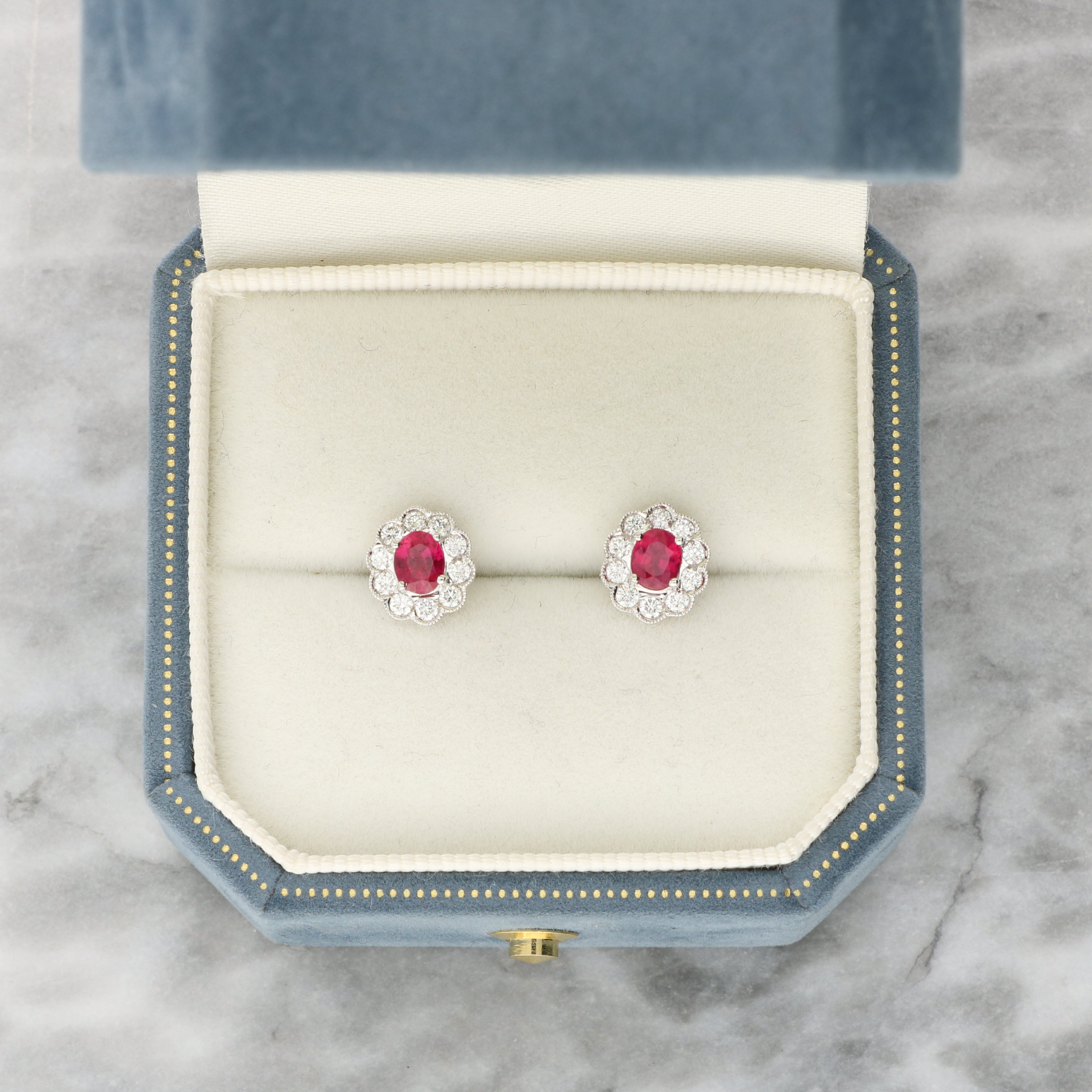 Art Deco Style Ruby and Diamond Cluster Earrings