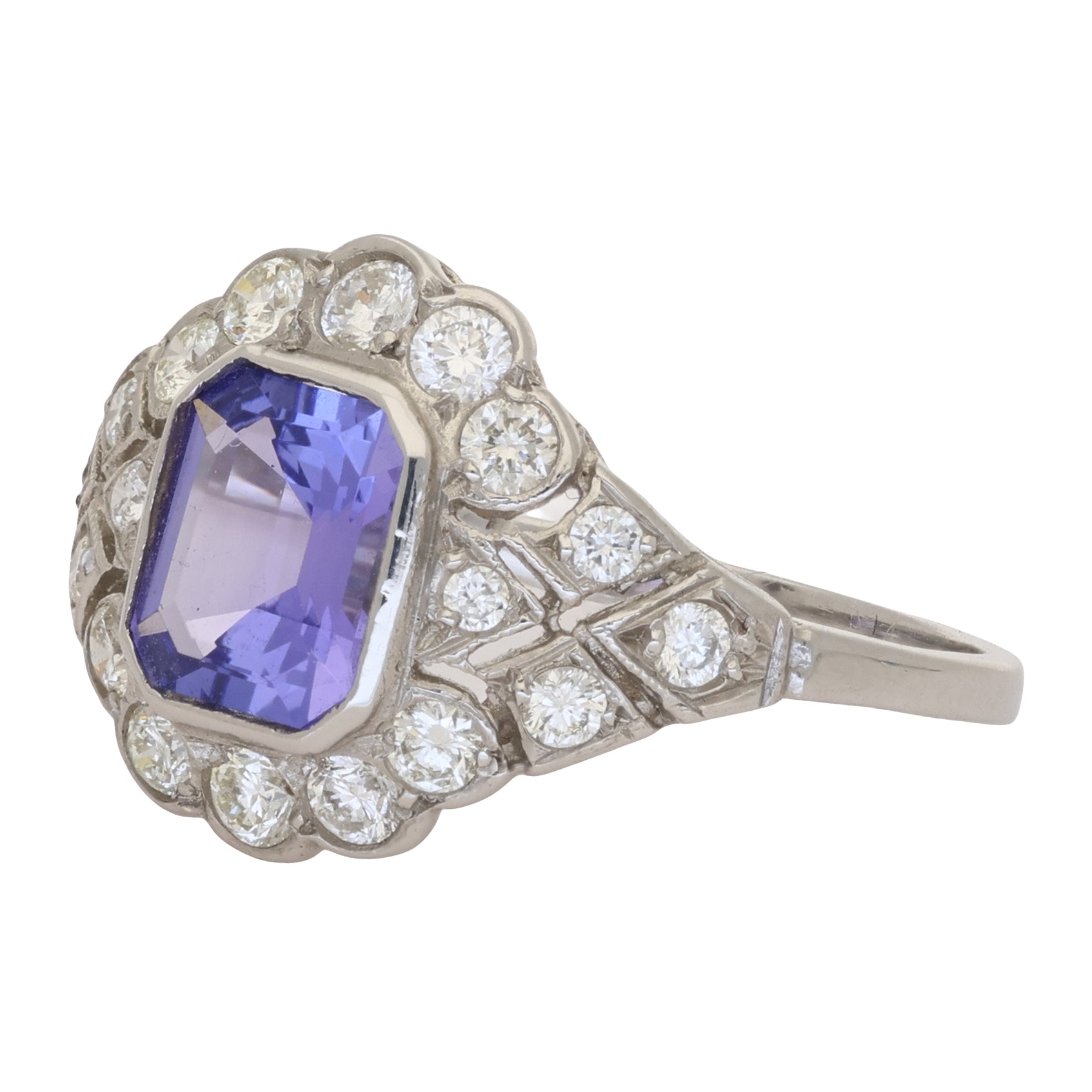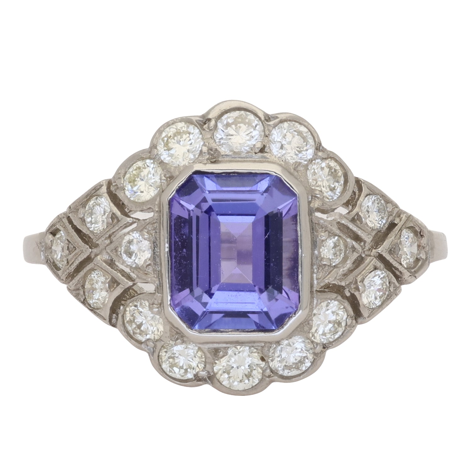 Art Deco Style Tanzanite and Diamond Cluster Ring