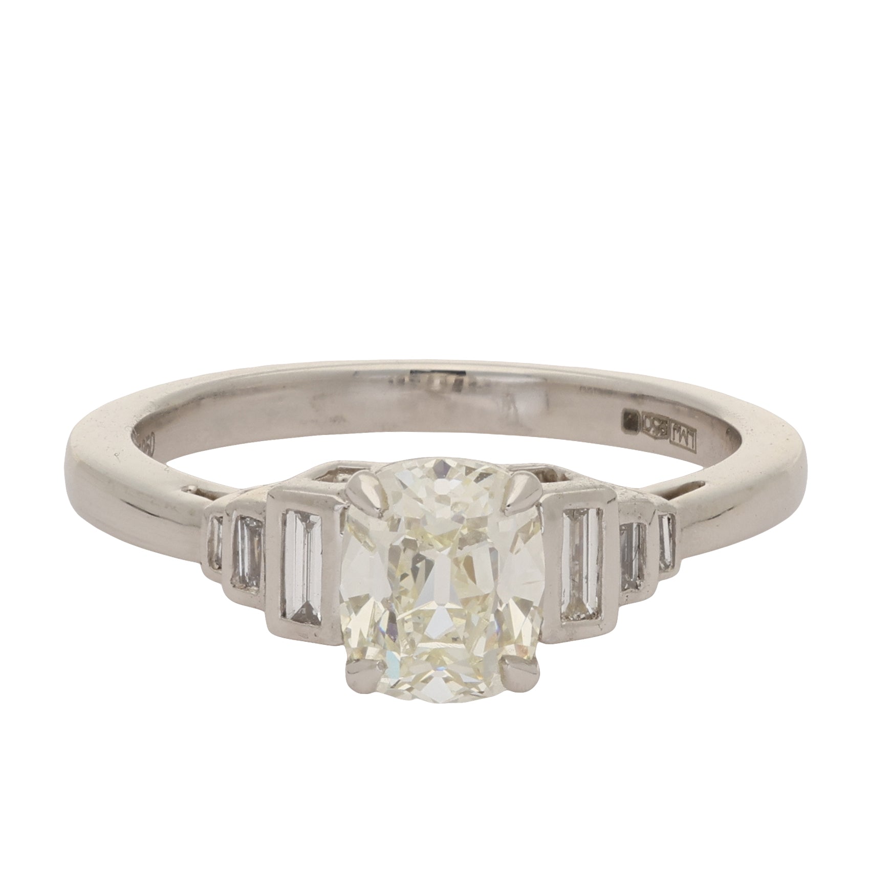 Vintage Baguette and Round Cut Diamond Cluster Ring