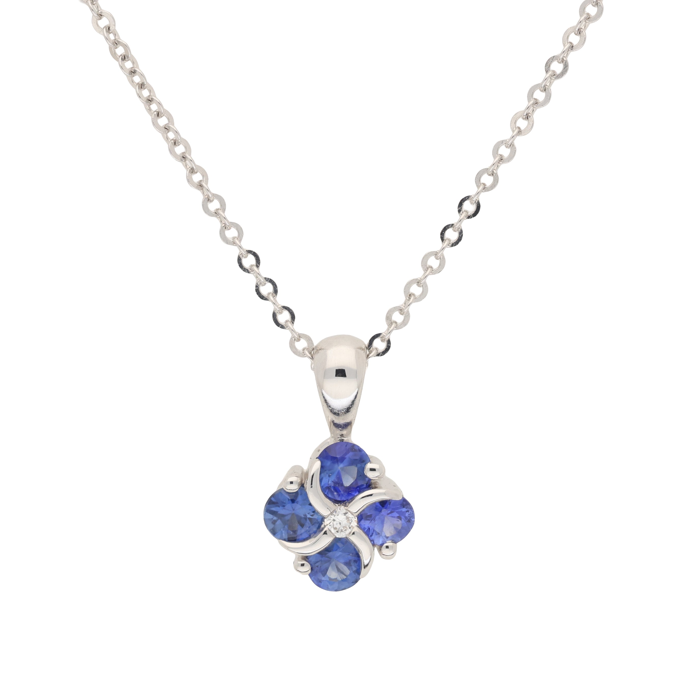 Sapphire and Diamond Cluster Pendant Necklace