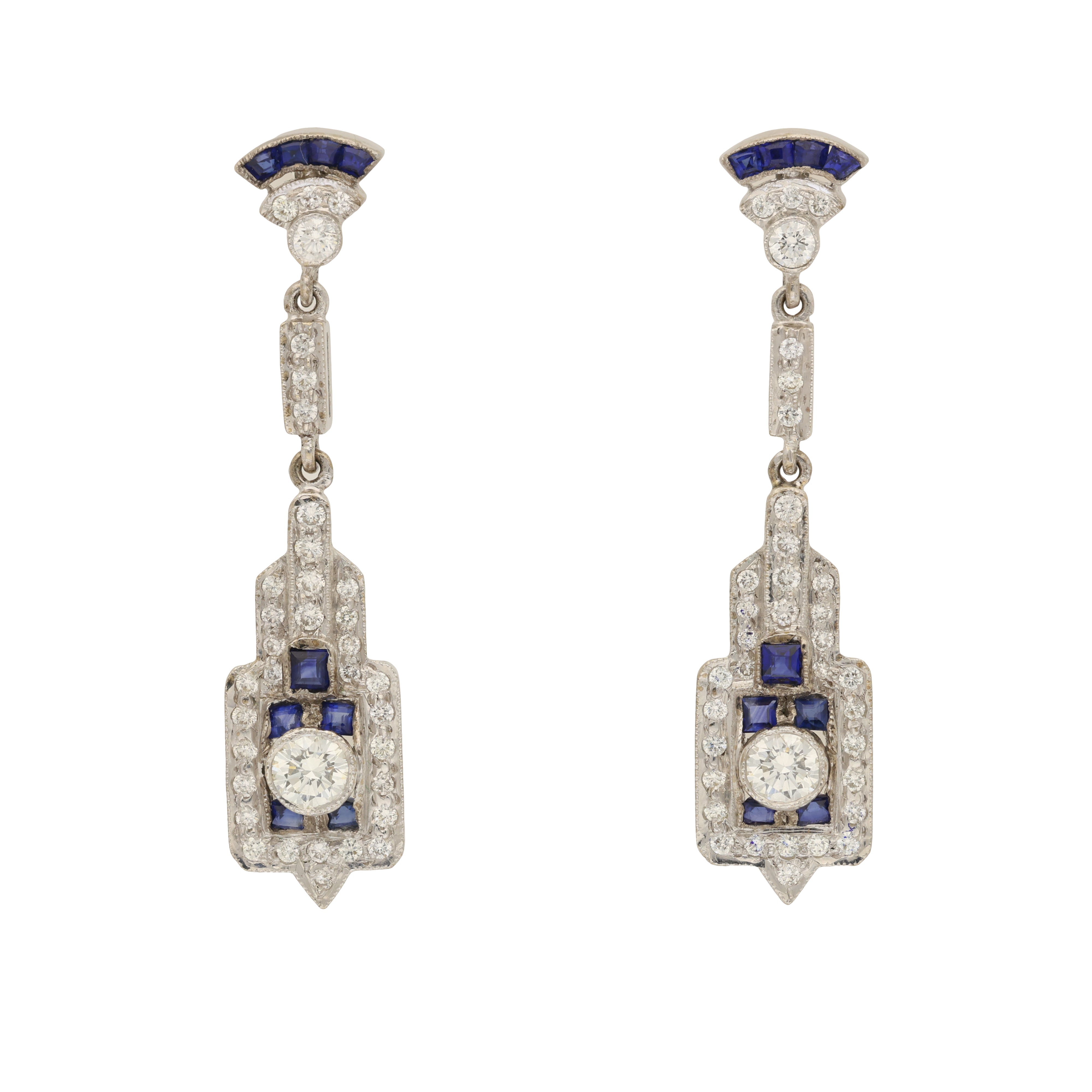 Art Deco Style Blue Sapphire and Diamond Drop Earrings
