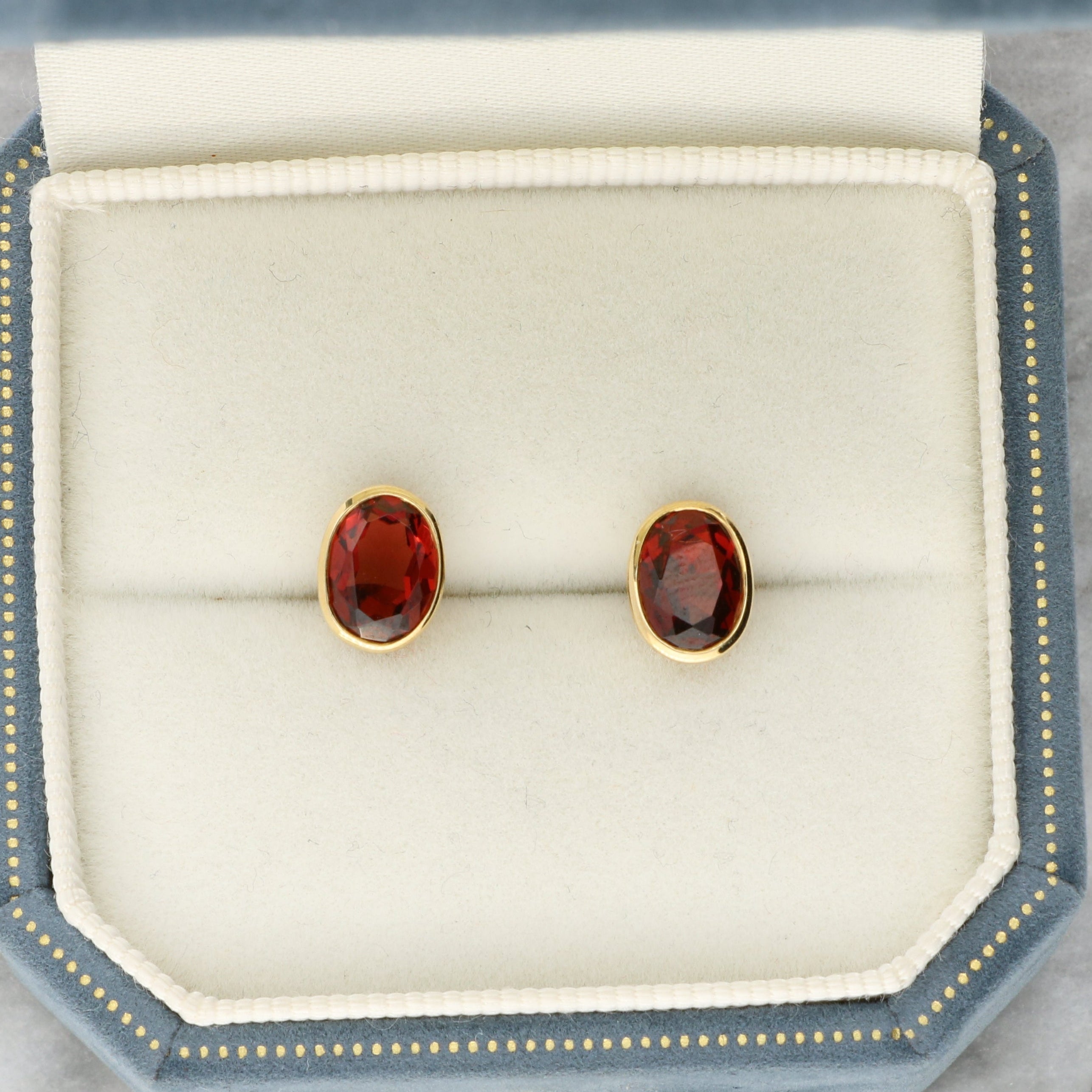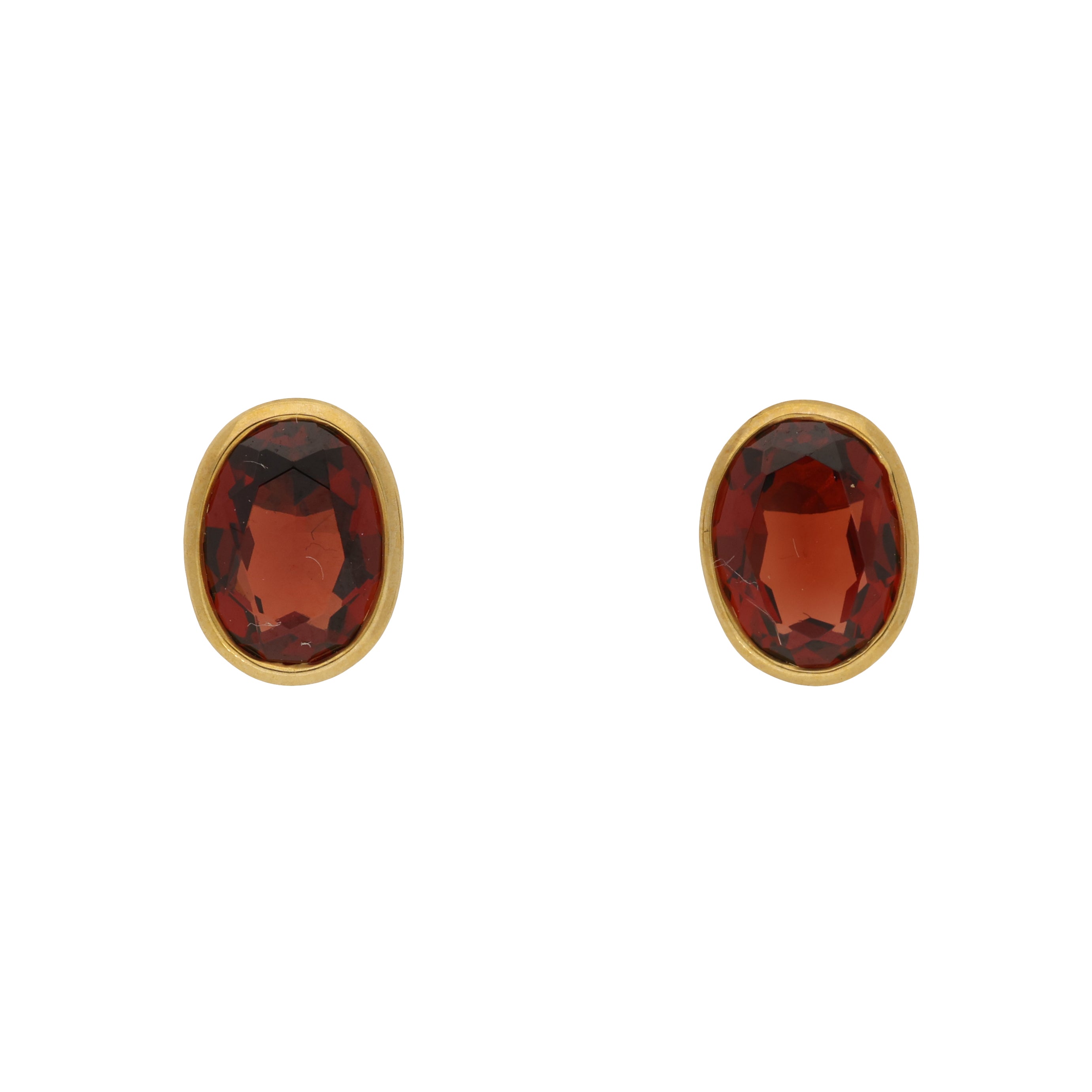 Bezel Set Oval Garnet Stud Earrings