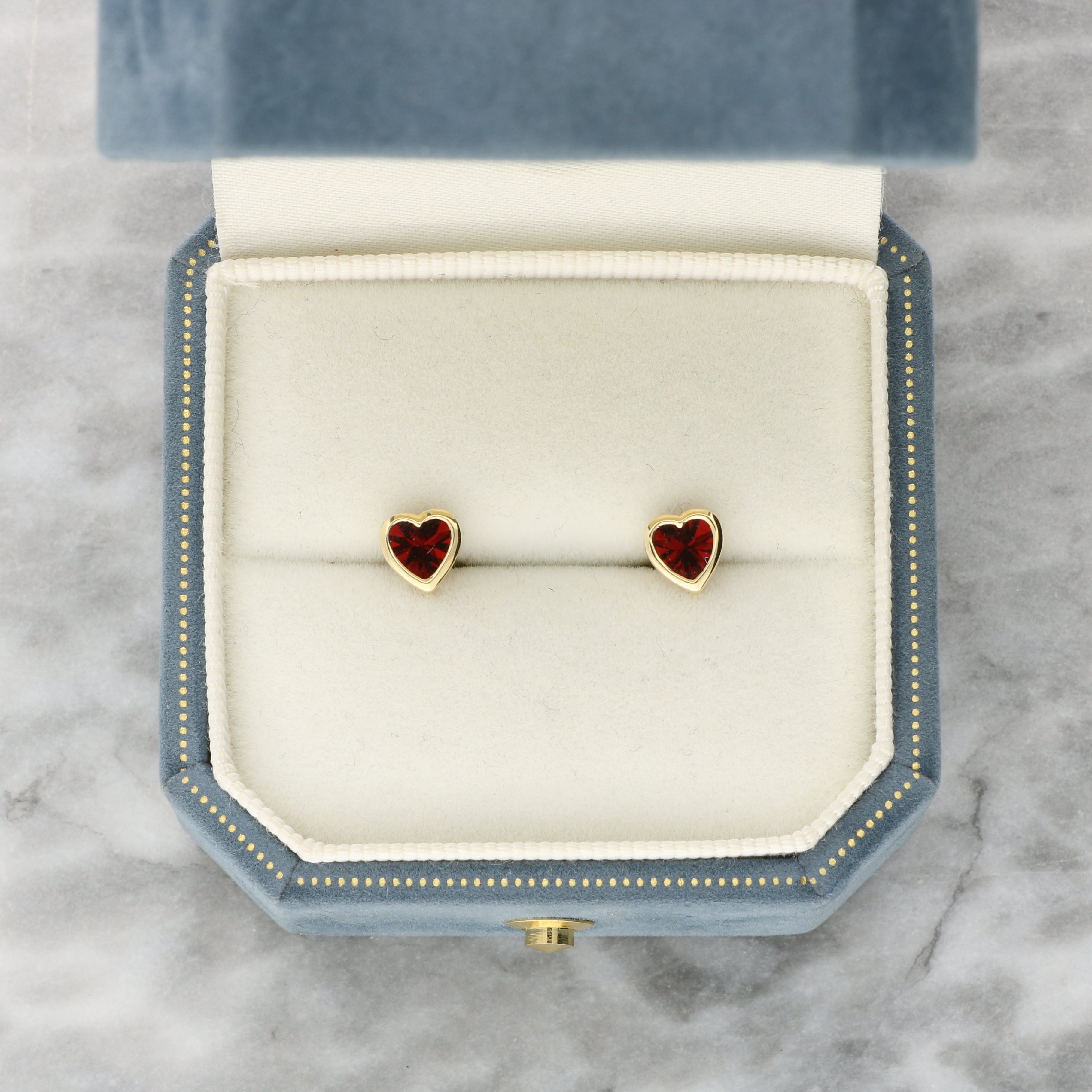 Heart Garnet Stud Earrings