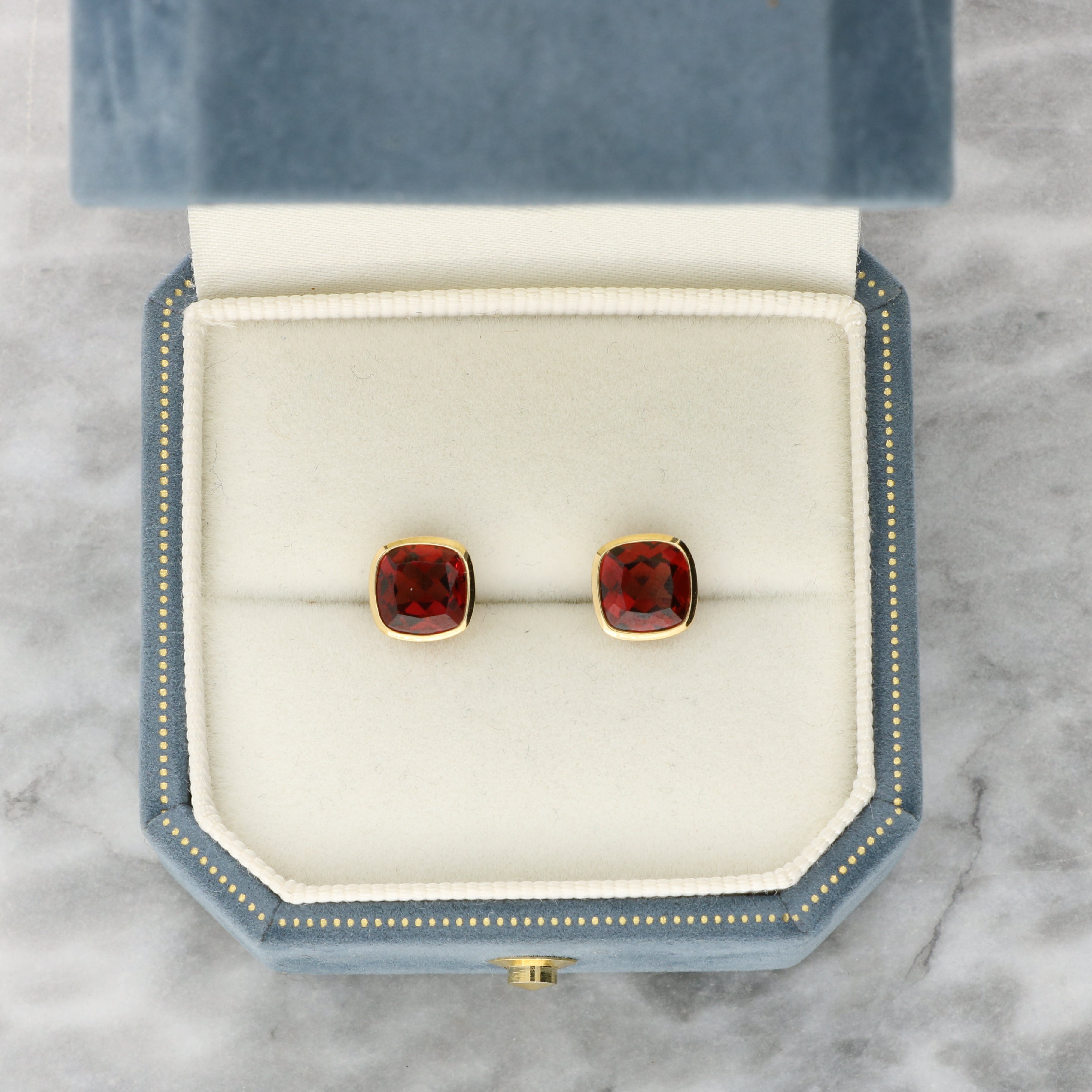 Bezel Set Cushion Cut Garnet Stud Earrings