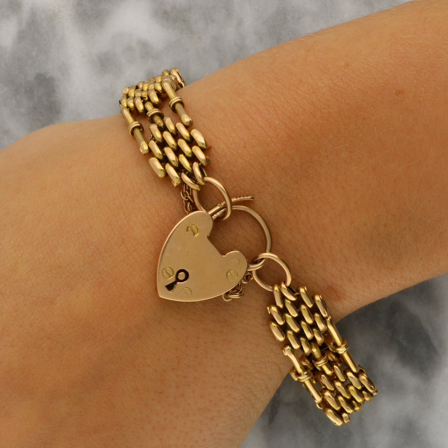 Antique 15K Gold Gate Bracelet With Heart Padlock