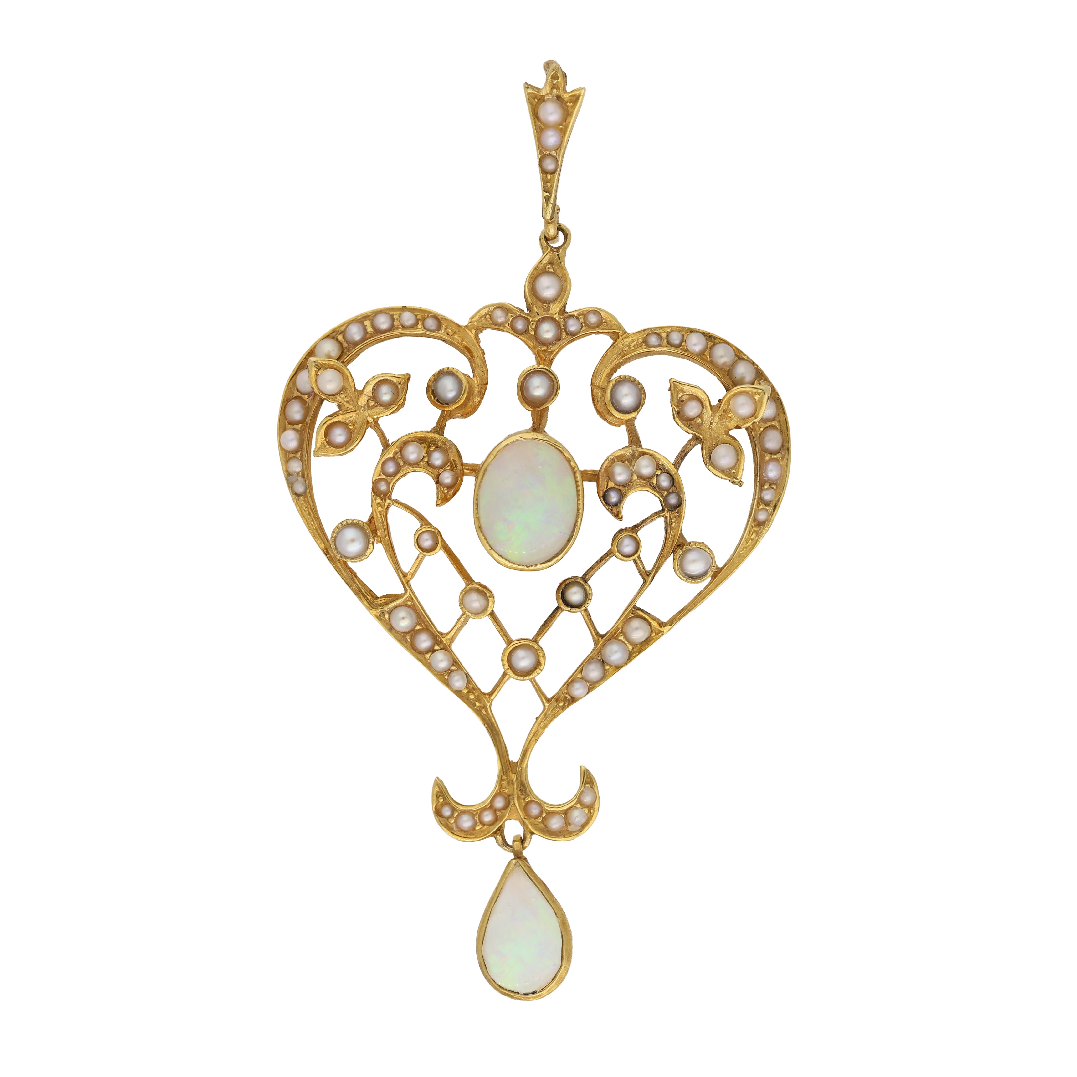 Antique 15ct Gold Seed Pearl and Opal Pendant Brooch
