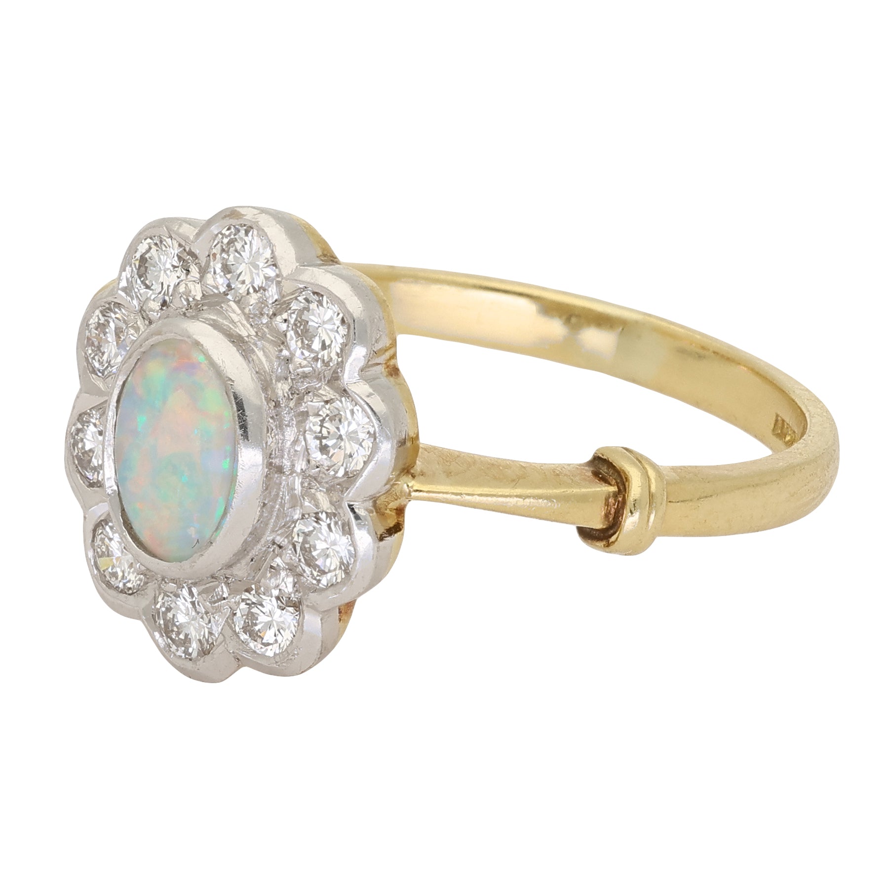 Opal and diamond cluster ring