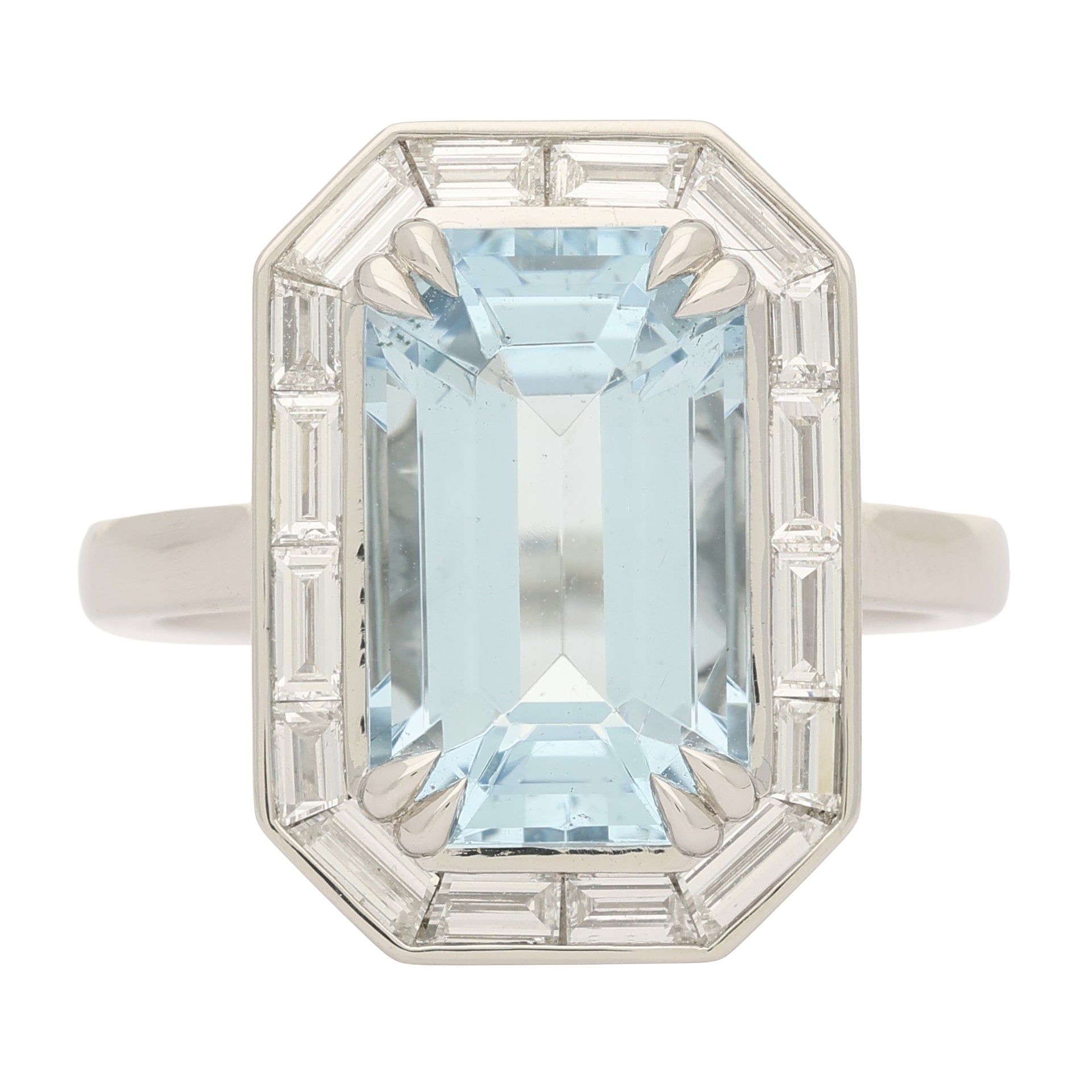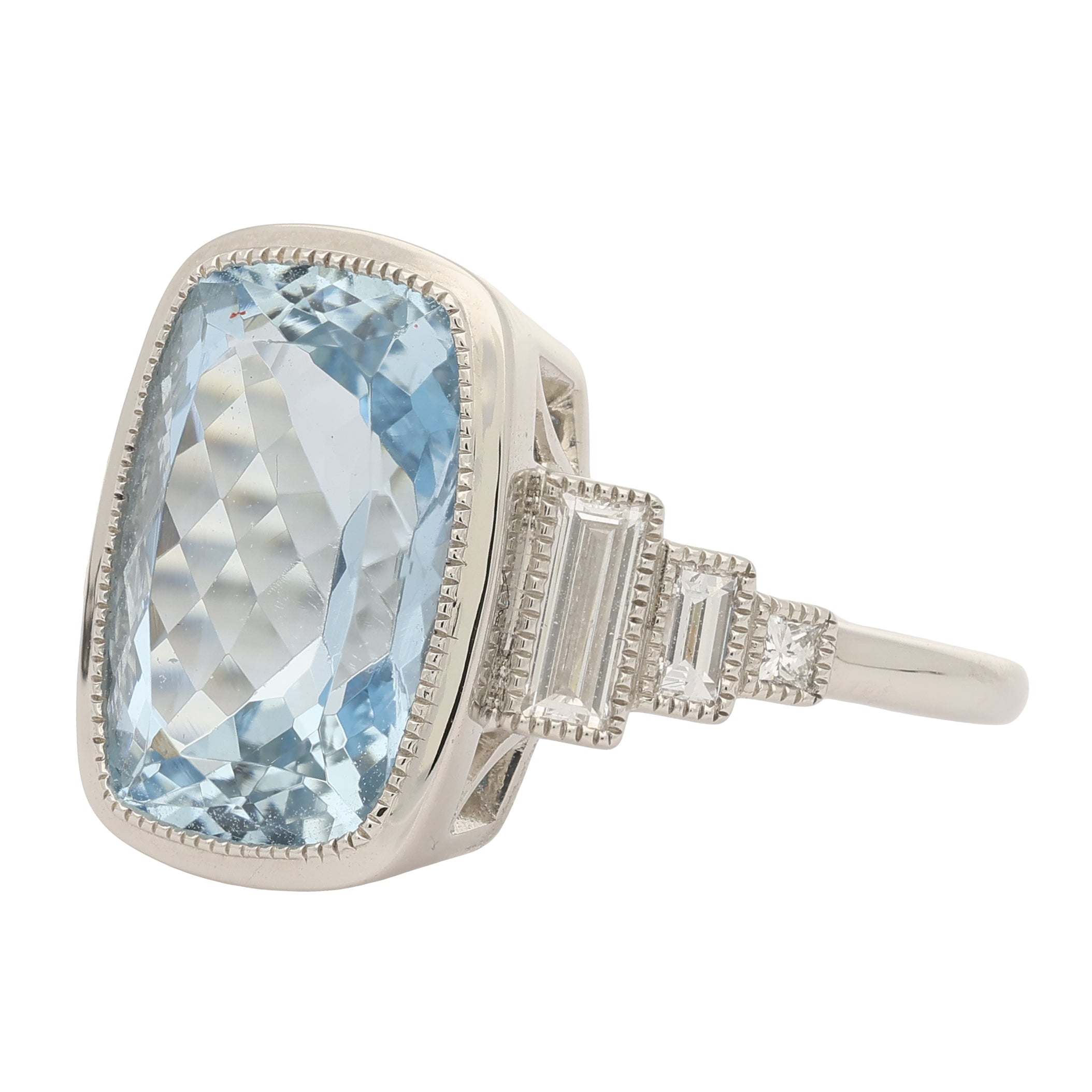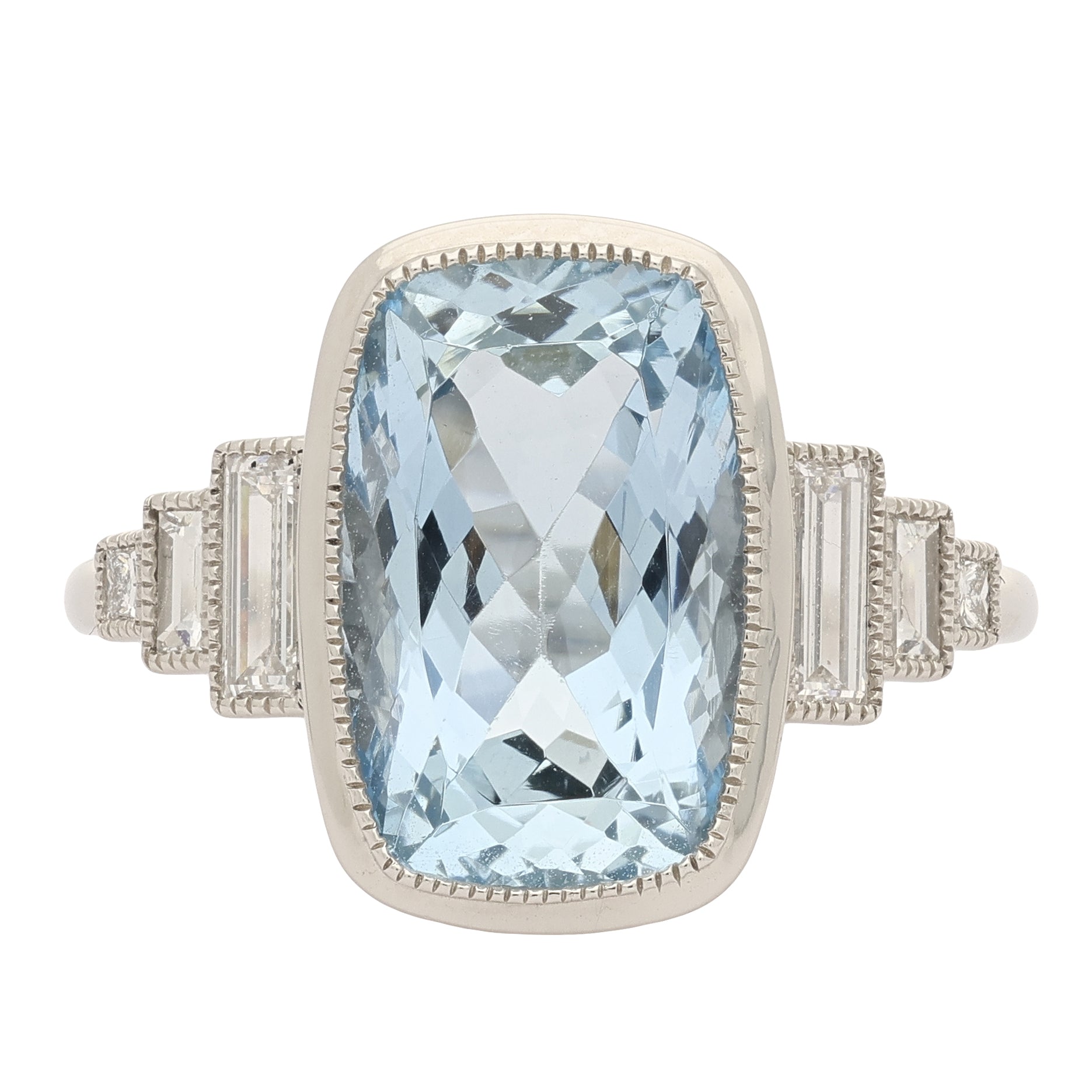 Art Deco Style Cushion-Cut Aquamarine and Diamond Ring