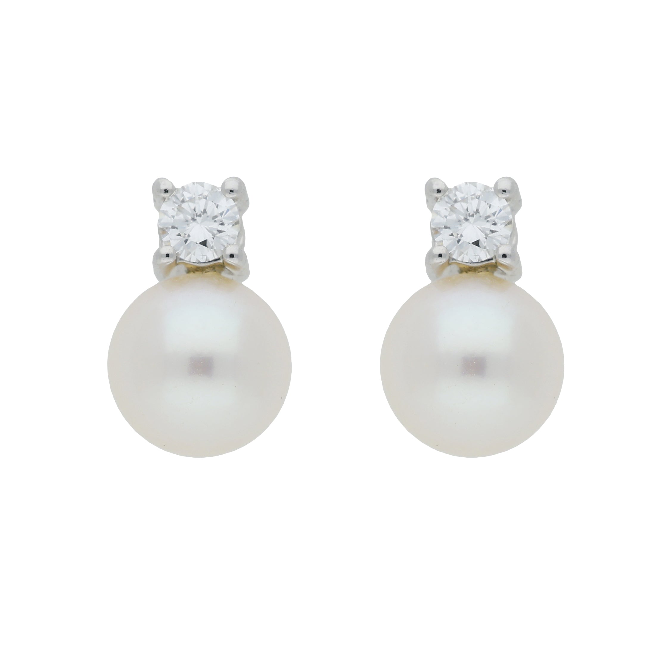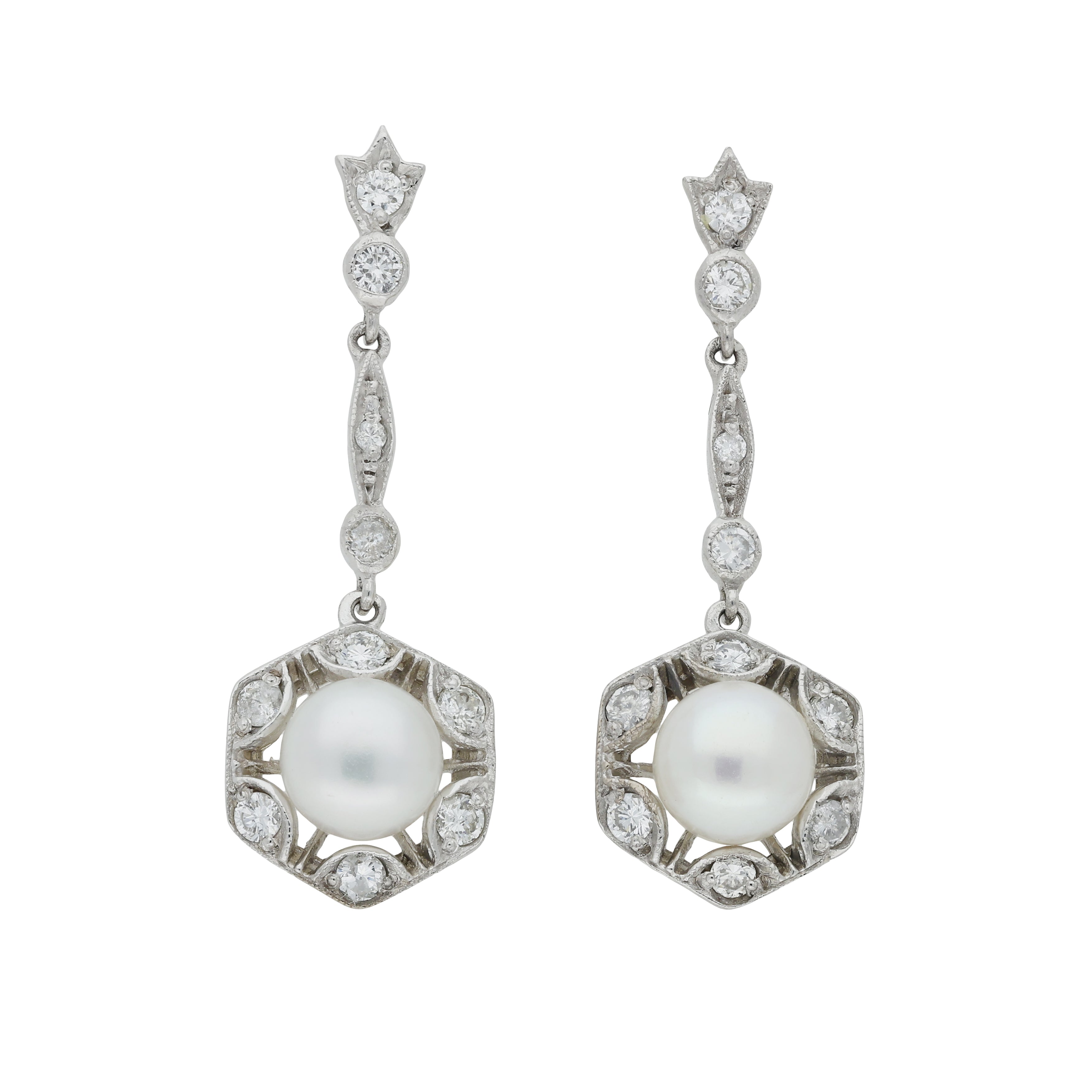Akoya Pearl, Pear and Oval Cut Diamond Drop Earrings