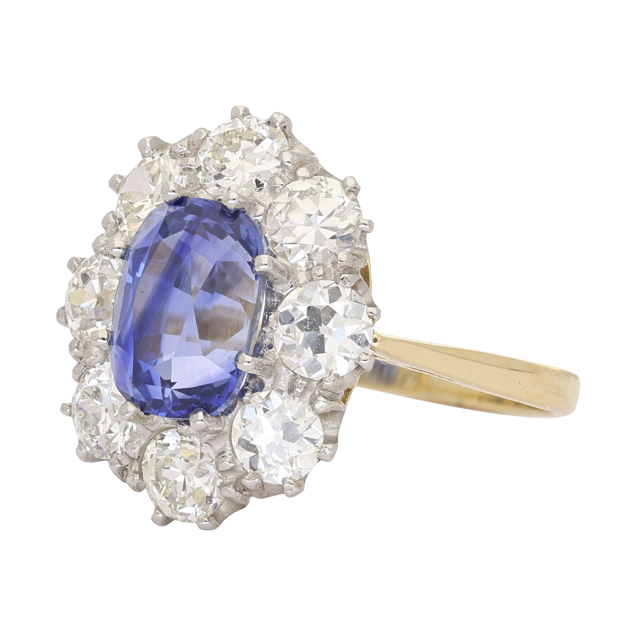 Vintage Blue Sapphire and Diamond Cluster Ring