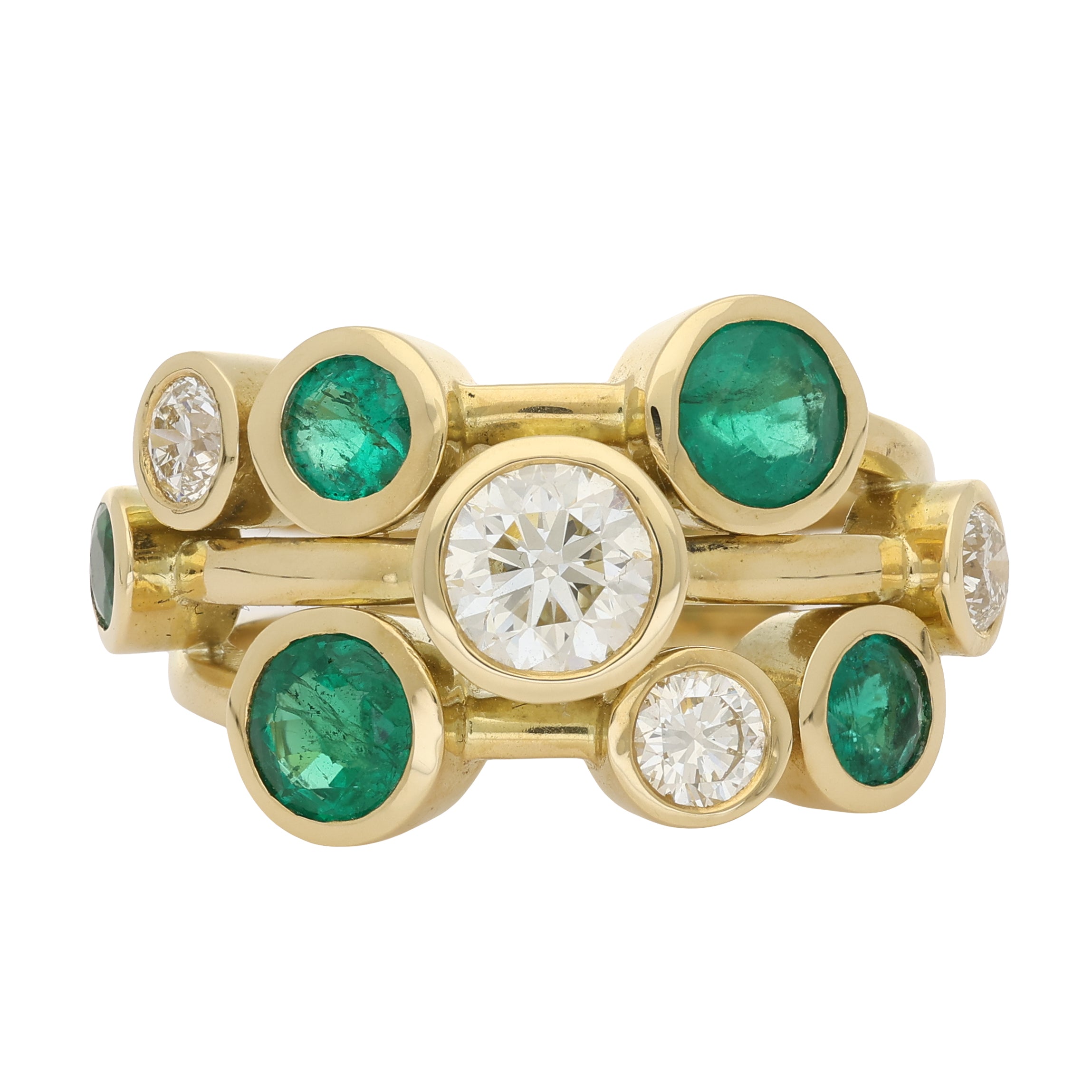 Emerald and Diamond Multi-Band Ring in Yellow Gold