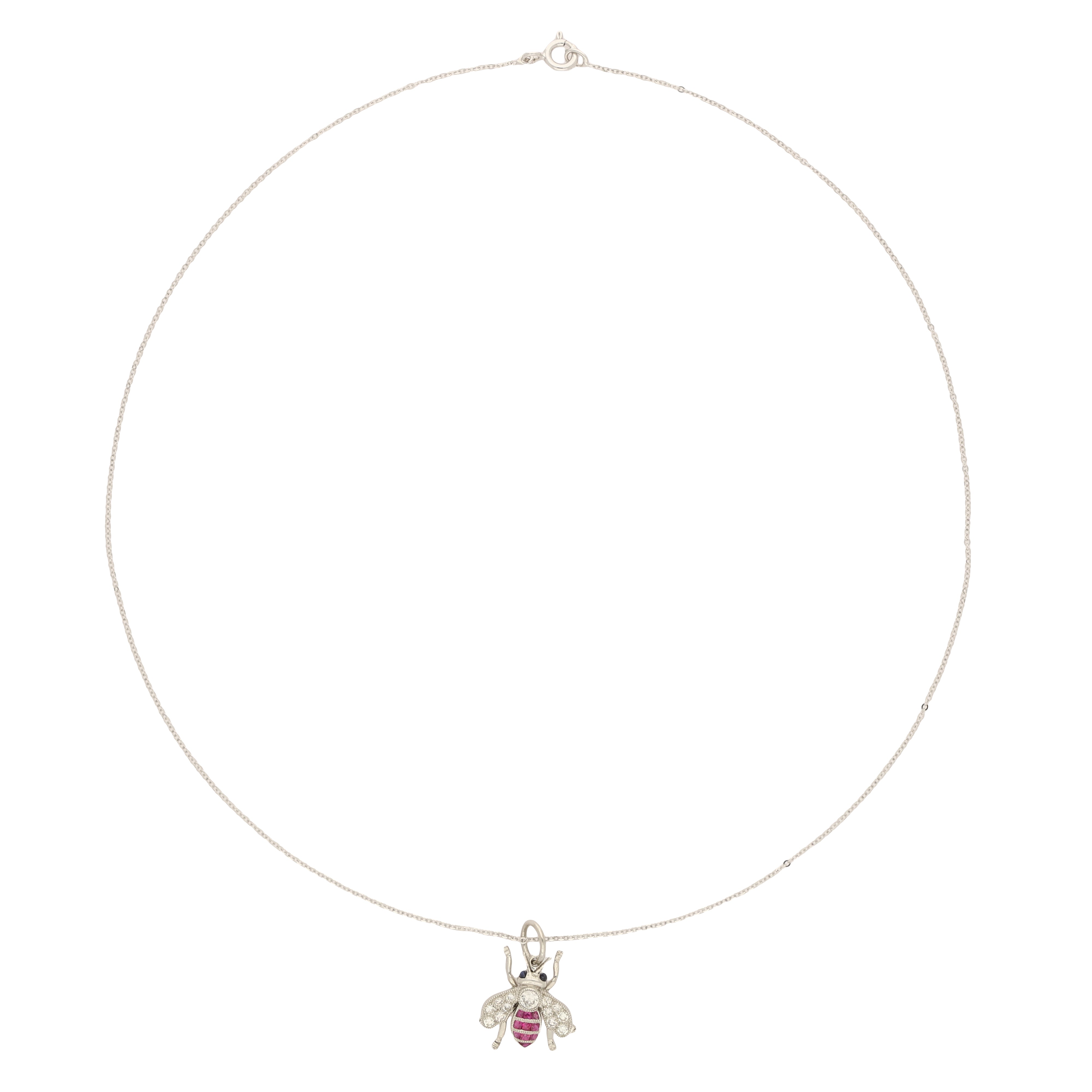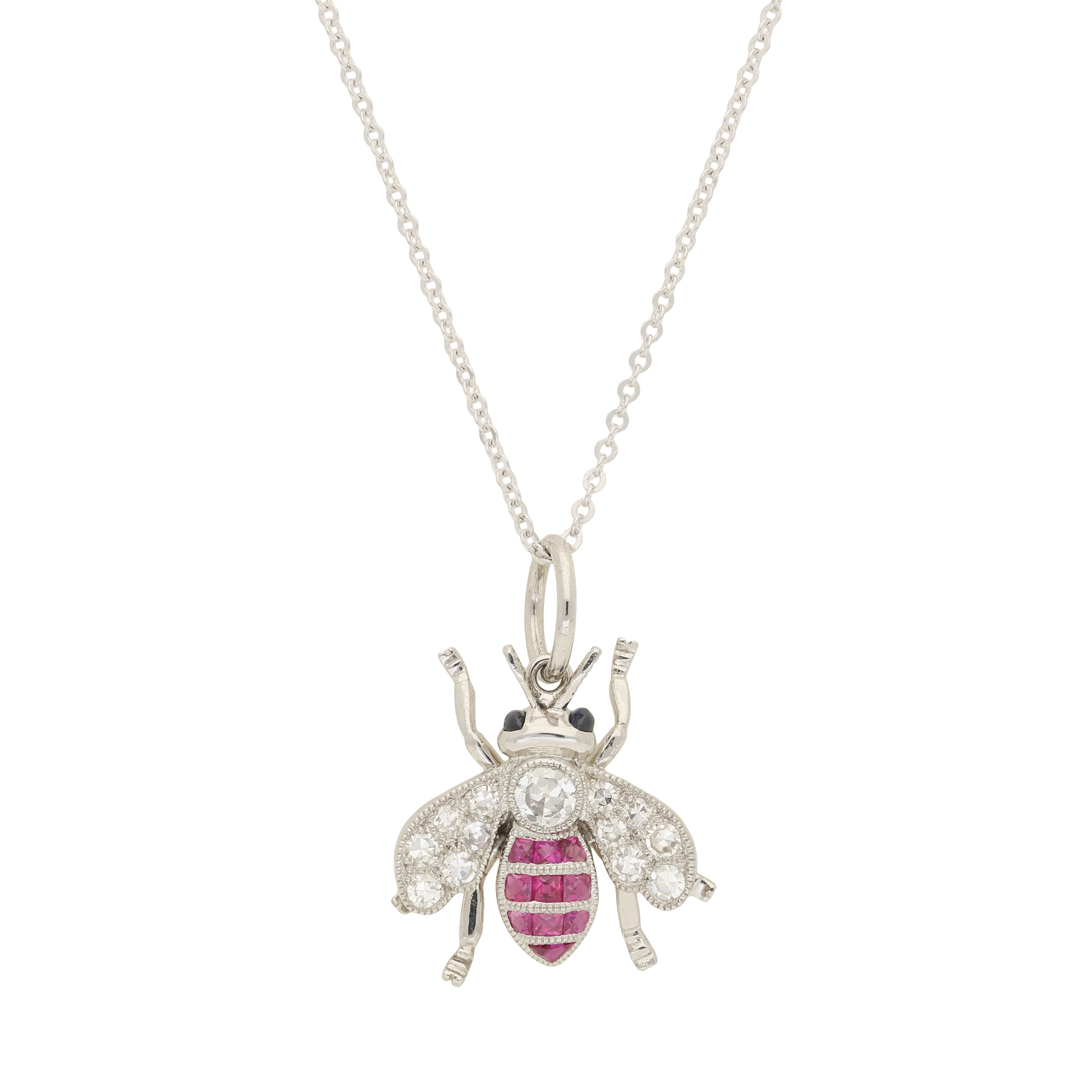 Vintage Style Ruby and Diamond Platinum Insect Bee Pendant