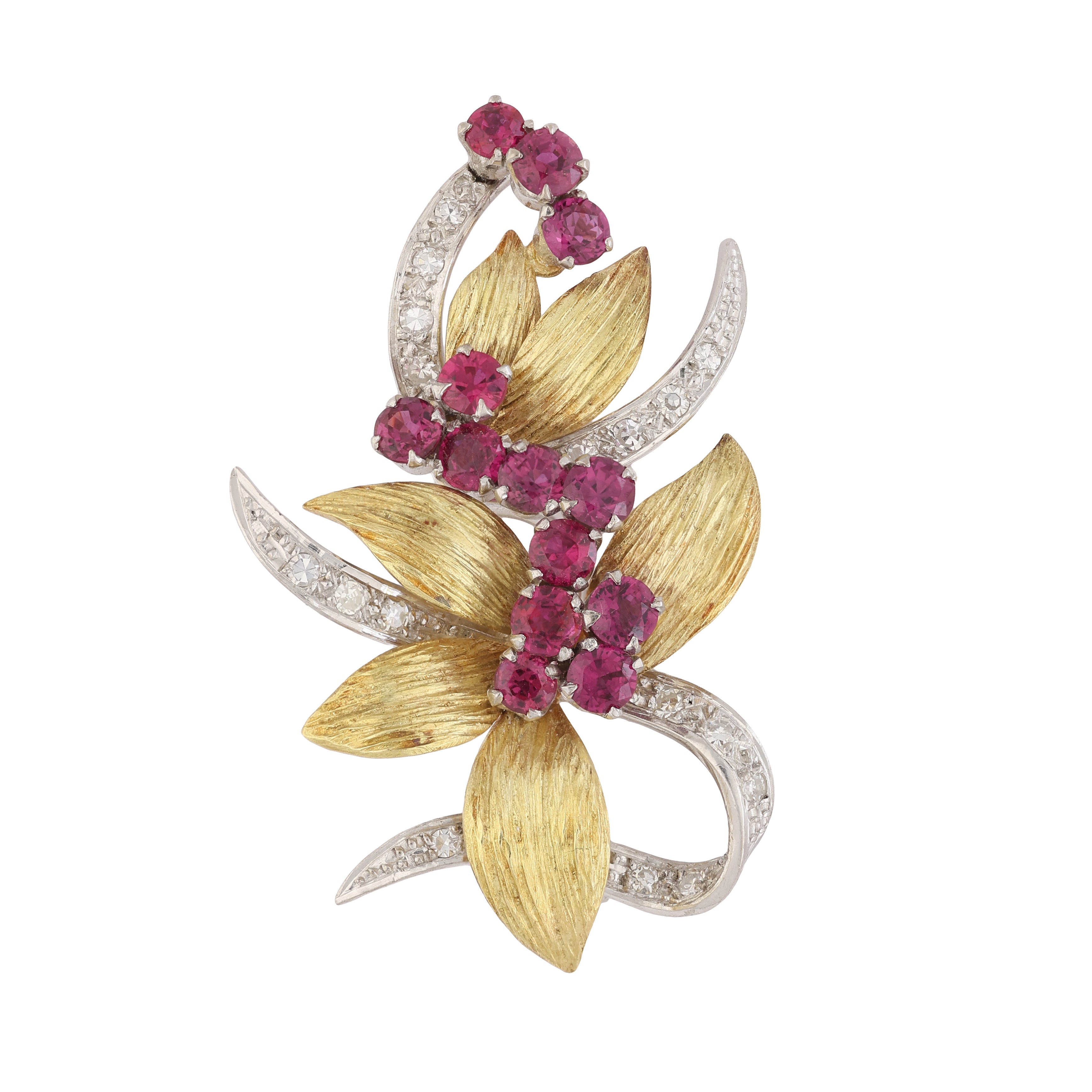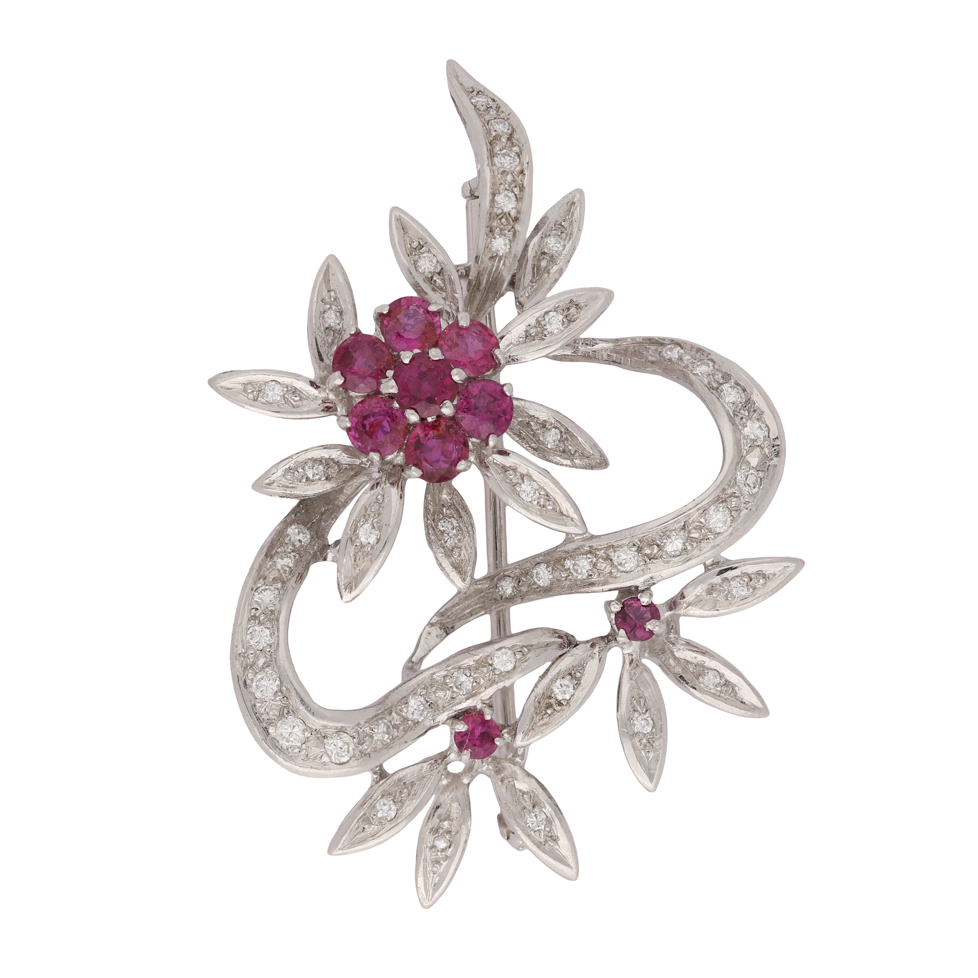 Vintage Ruby and Diamond Floral Brooch