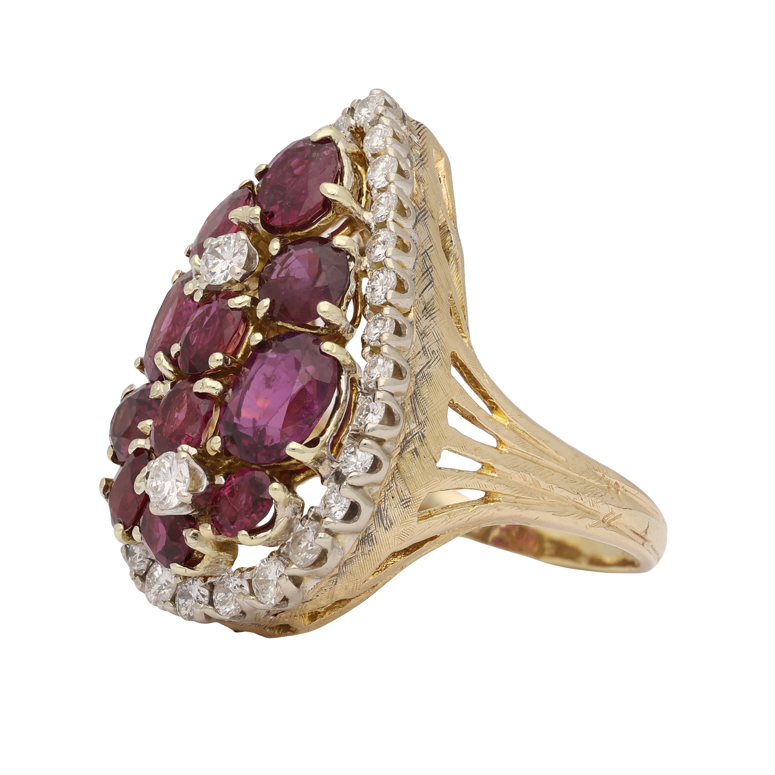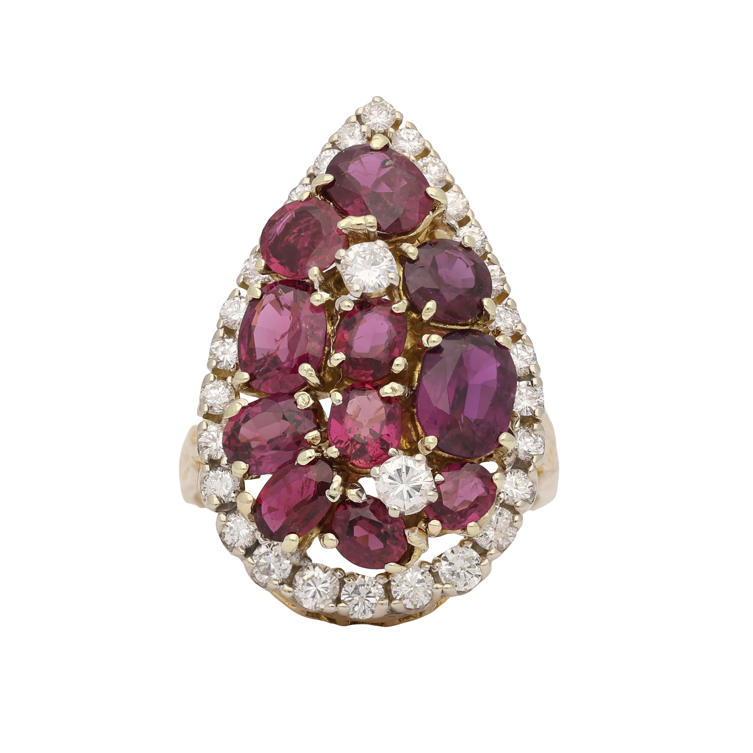Vintage Marquise Ruby and Diamond Cluster Ring