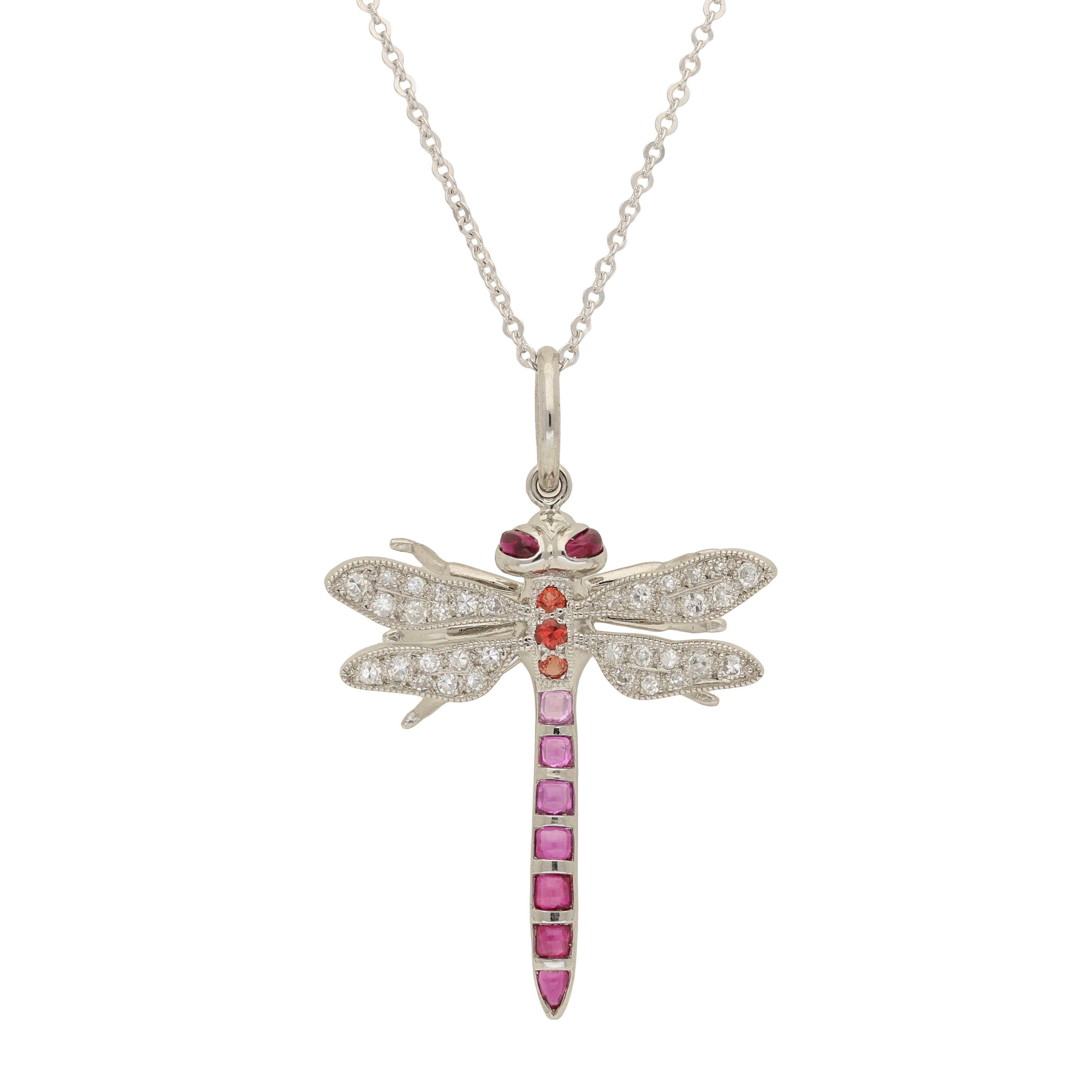 Ruby and Diamond Platinum Insect Dragonfly Pendant