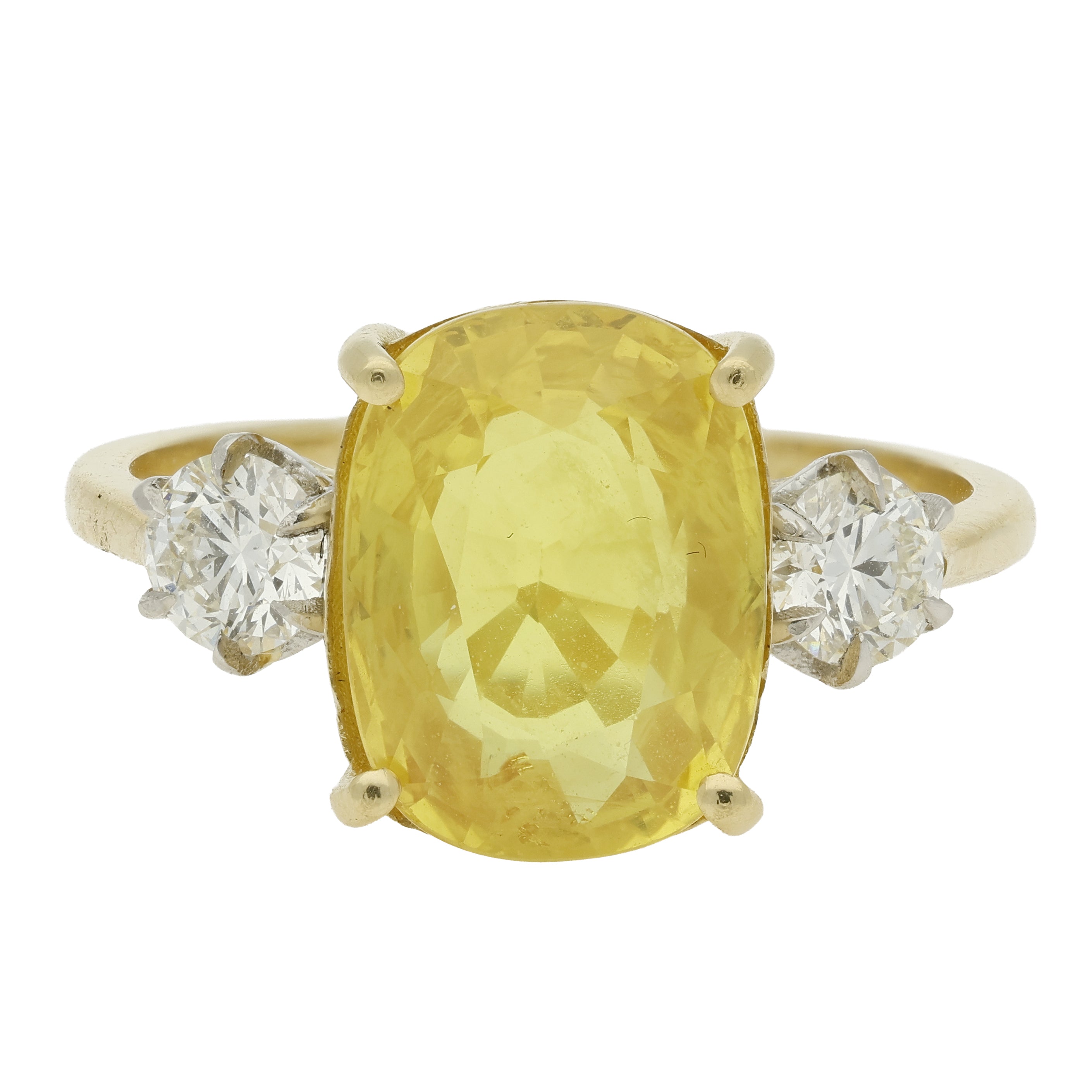 Vintage Yellow Sapphire and Diamond Three Stone Ring