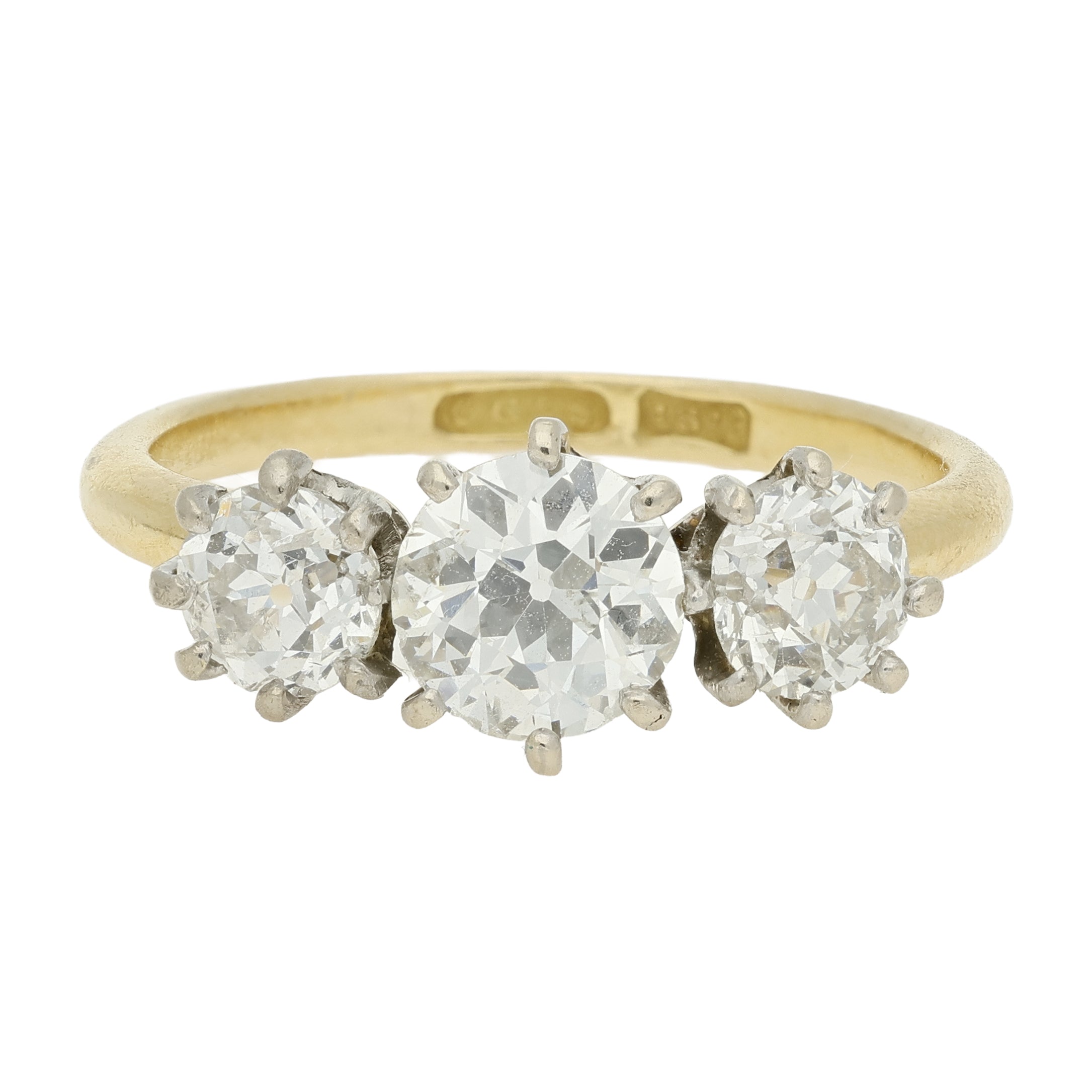 Antique 2.53ct Old Cut Diamond Three Stone Ring