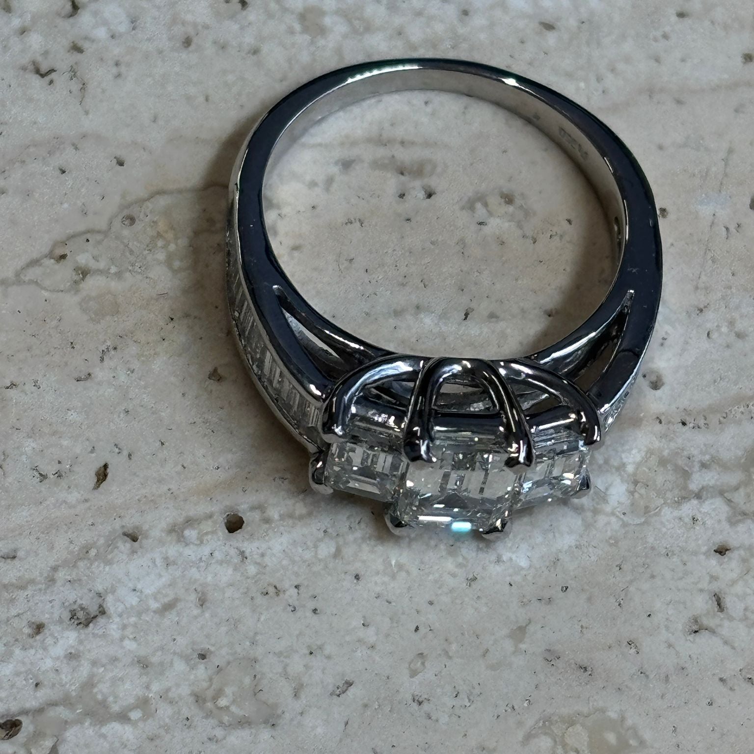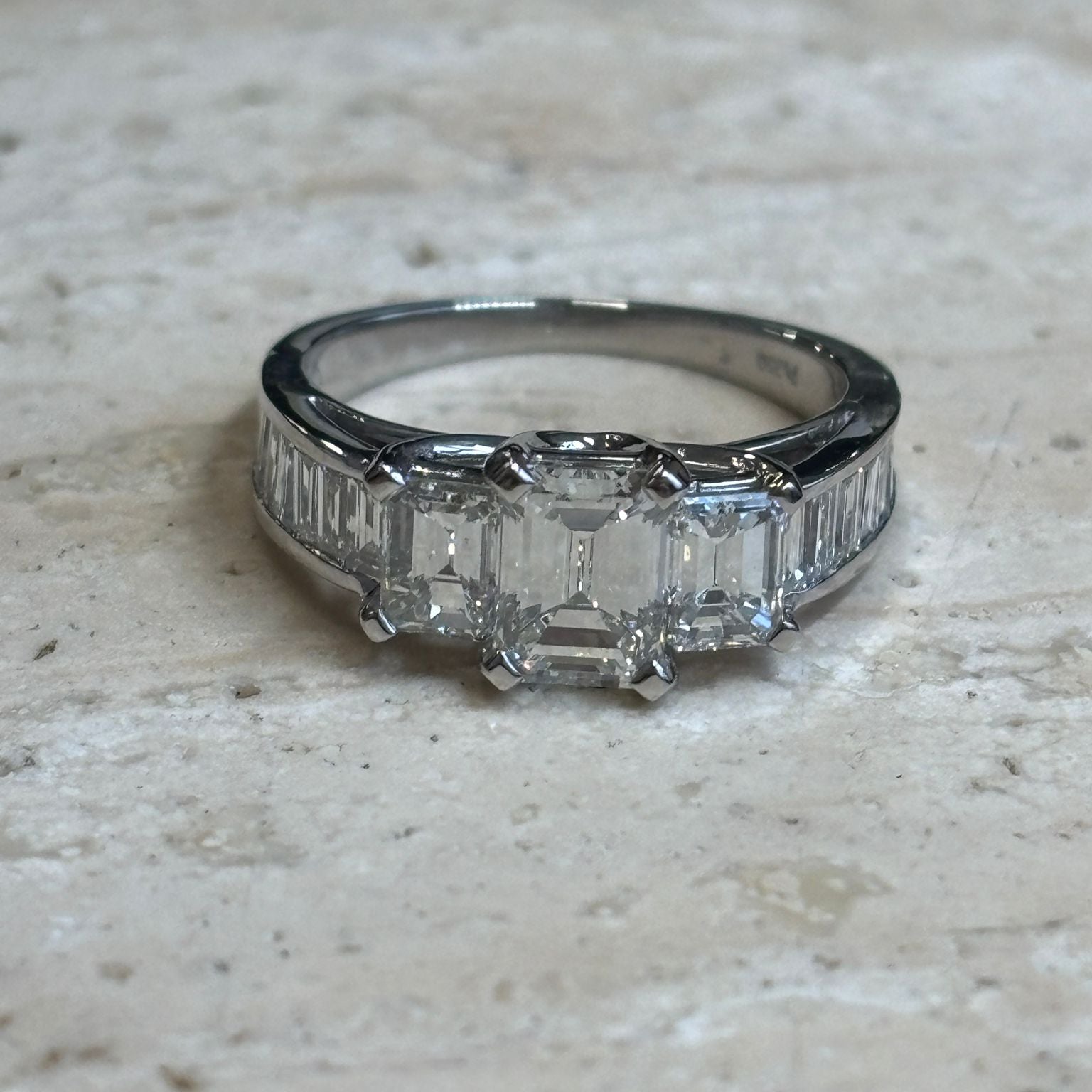 Vintage 1.47ct Asscher Cut Diamond Three Stone Ring