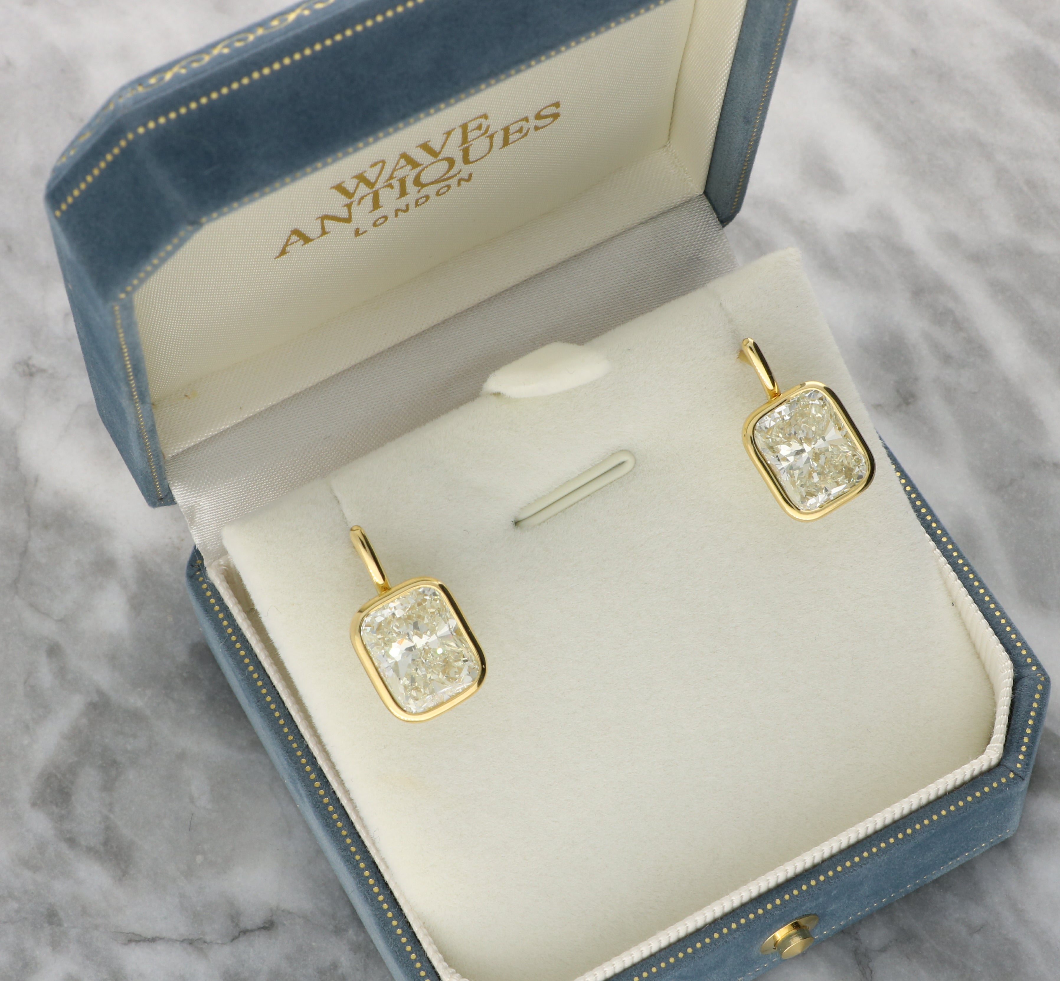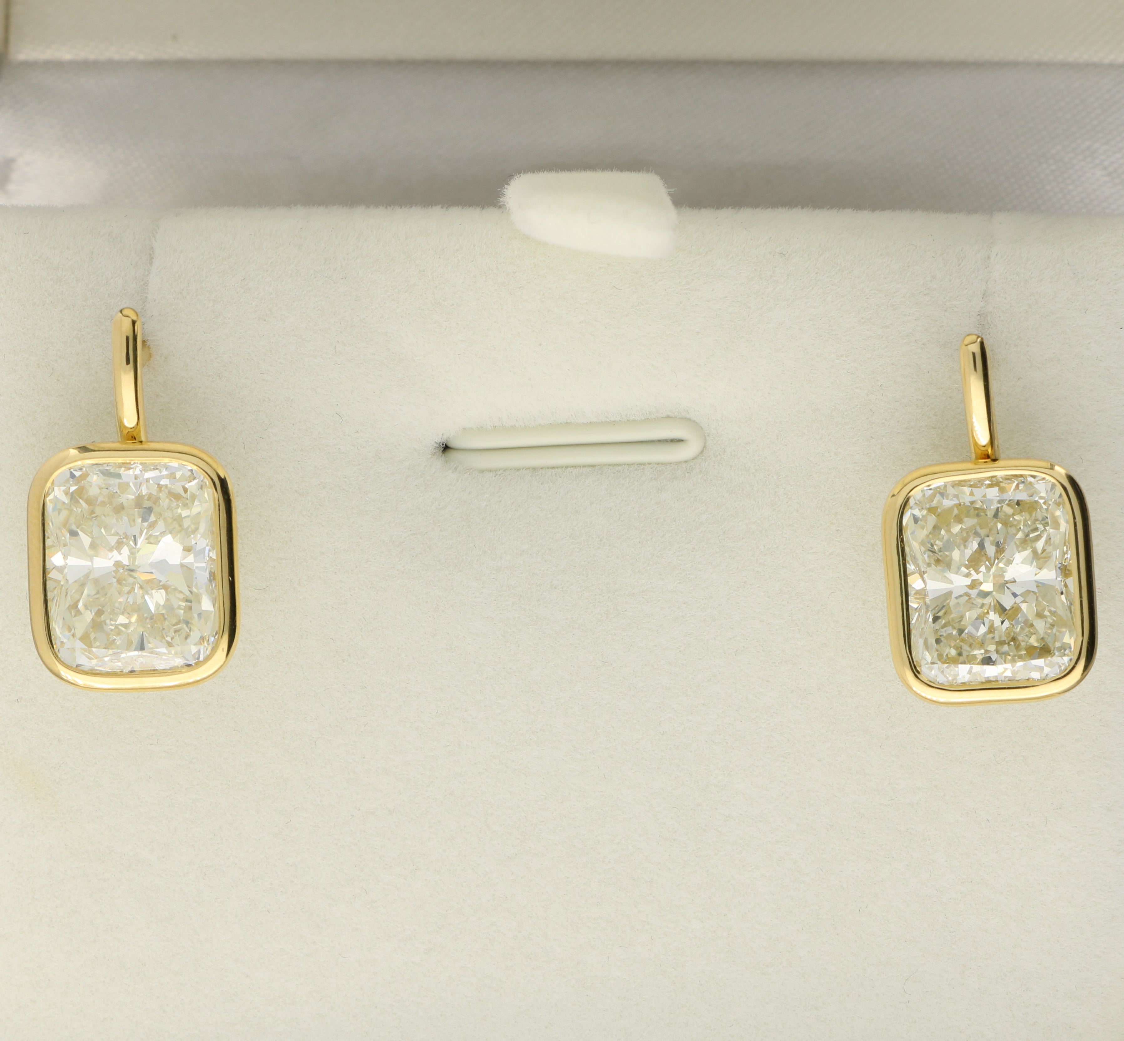 Cushion-Cut Diamond Drop Earrings Set in 18K Yellow Gold