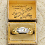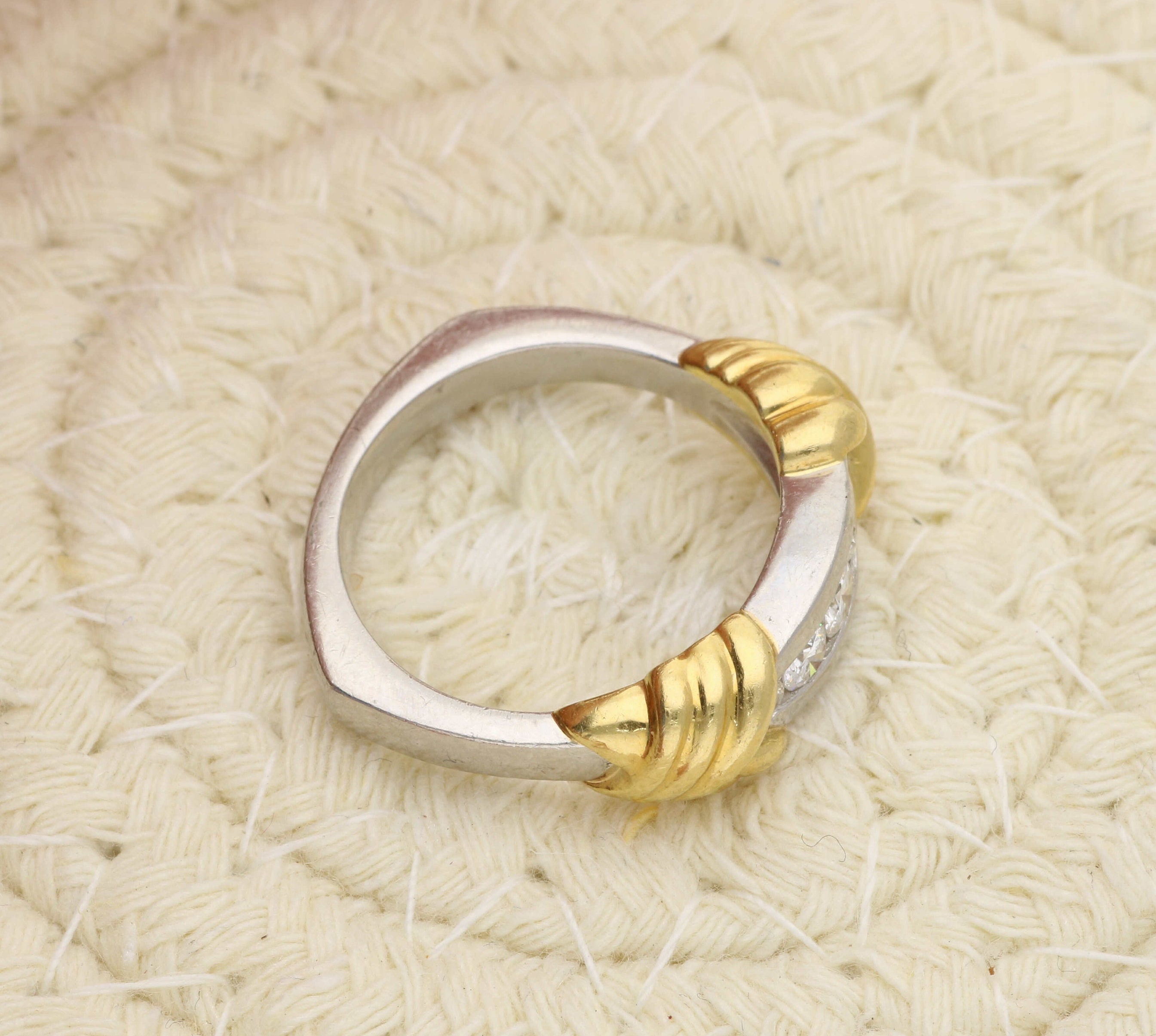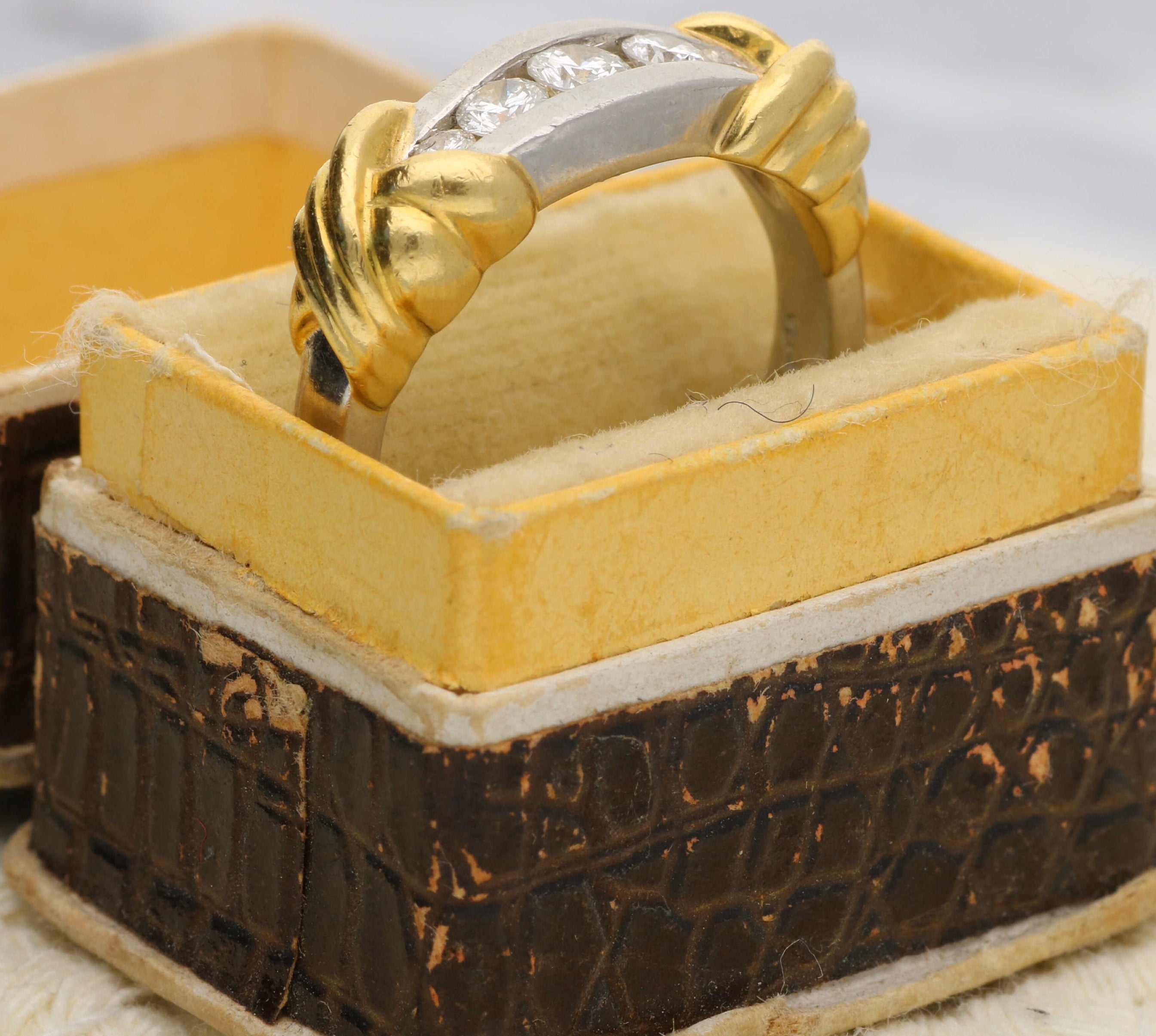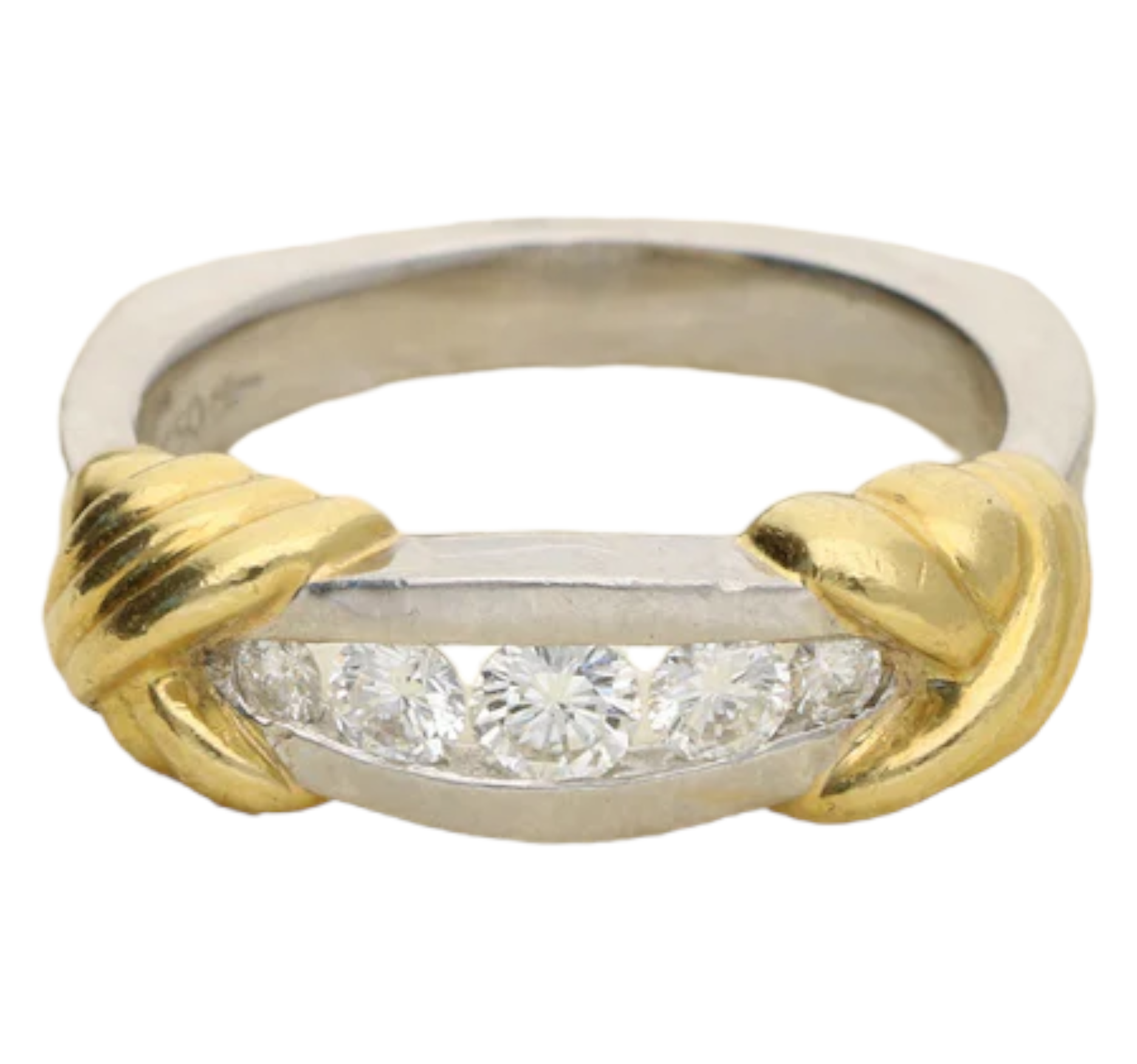 A unique yellow gold 5-stone diamond ring. This ring would make a perfect statement piece or a great addition to an everyday ring stack.