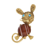 Vintage Mouse Brooch with Banded Agate in 18ct Yellow Gold