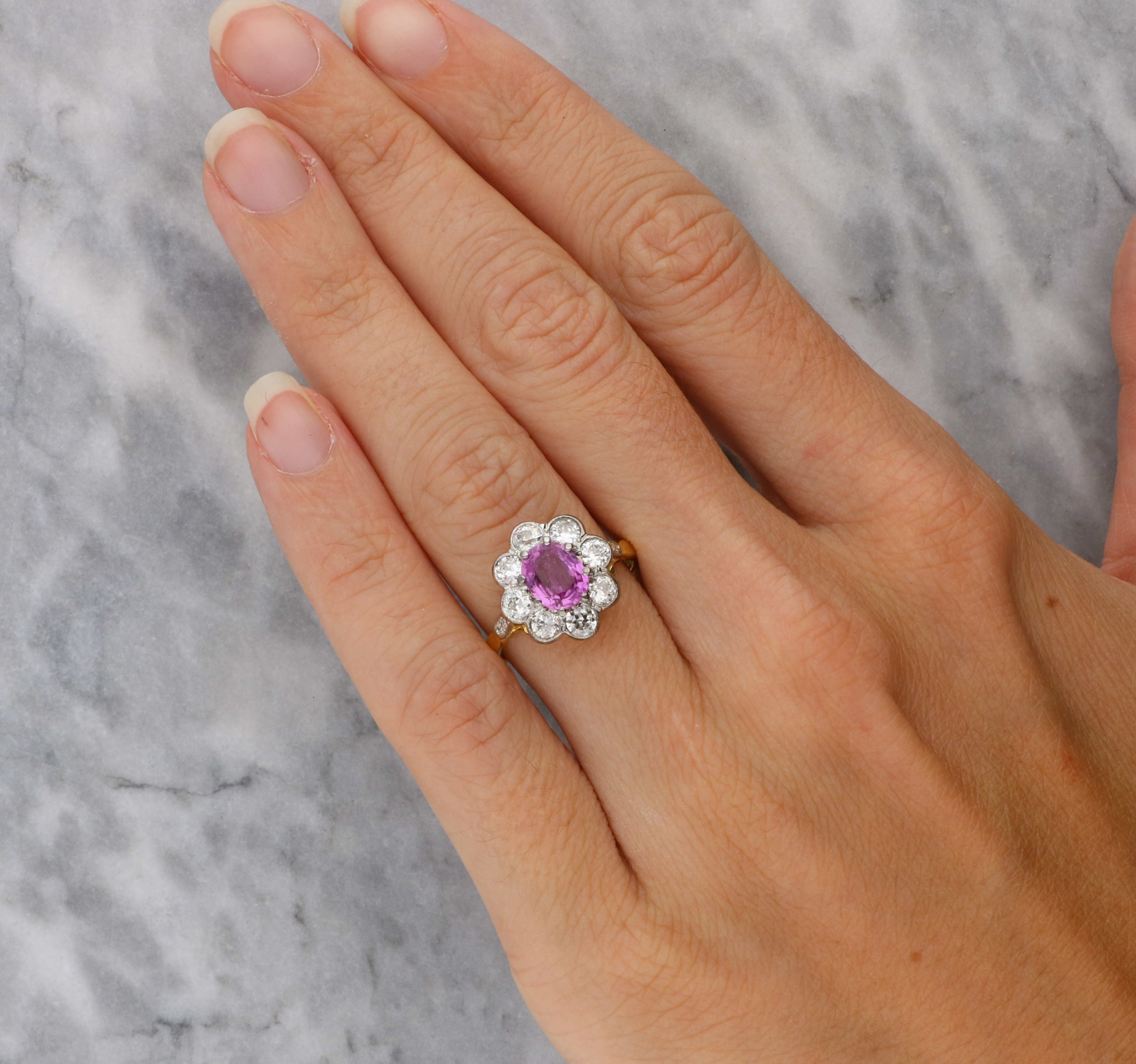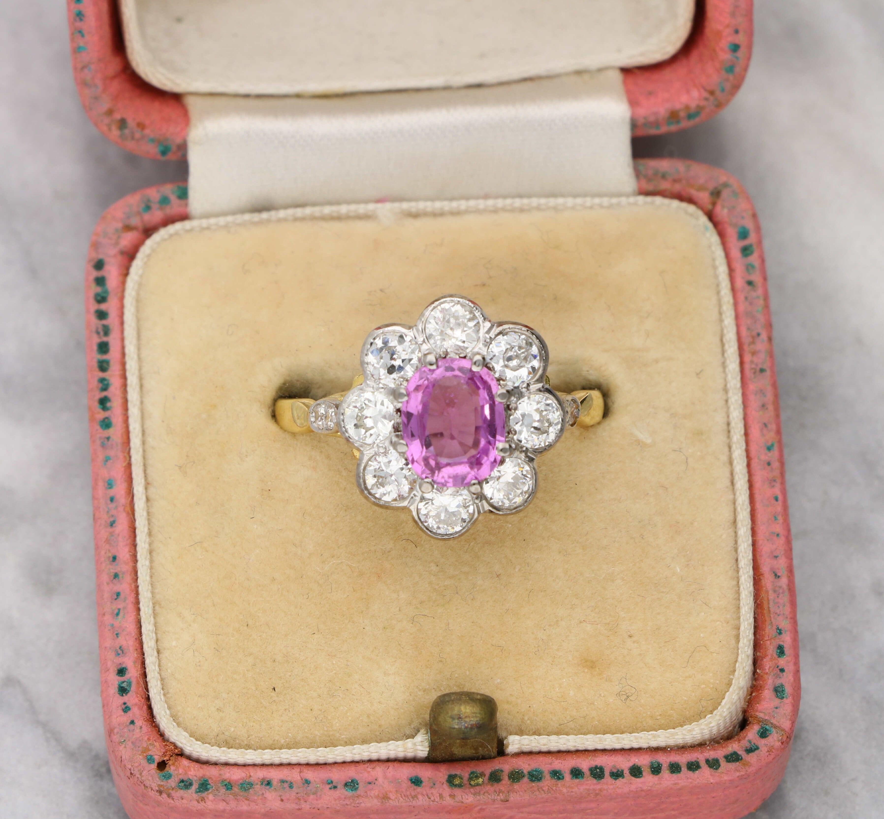 18ct pink sapphire and diamond cluster ring