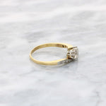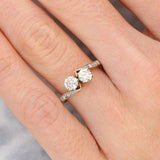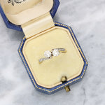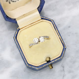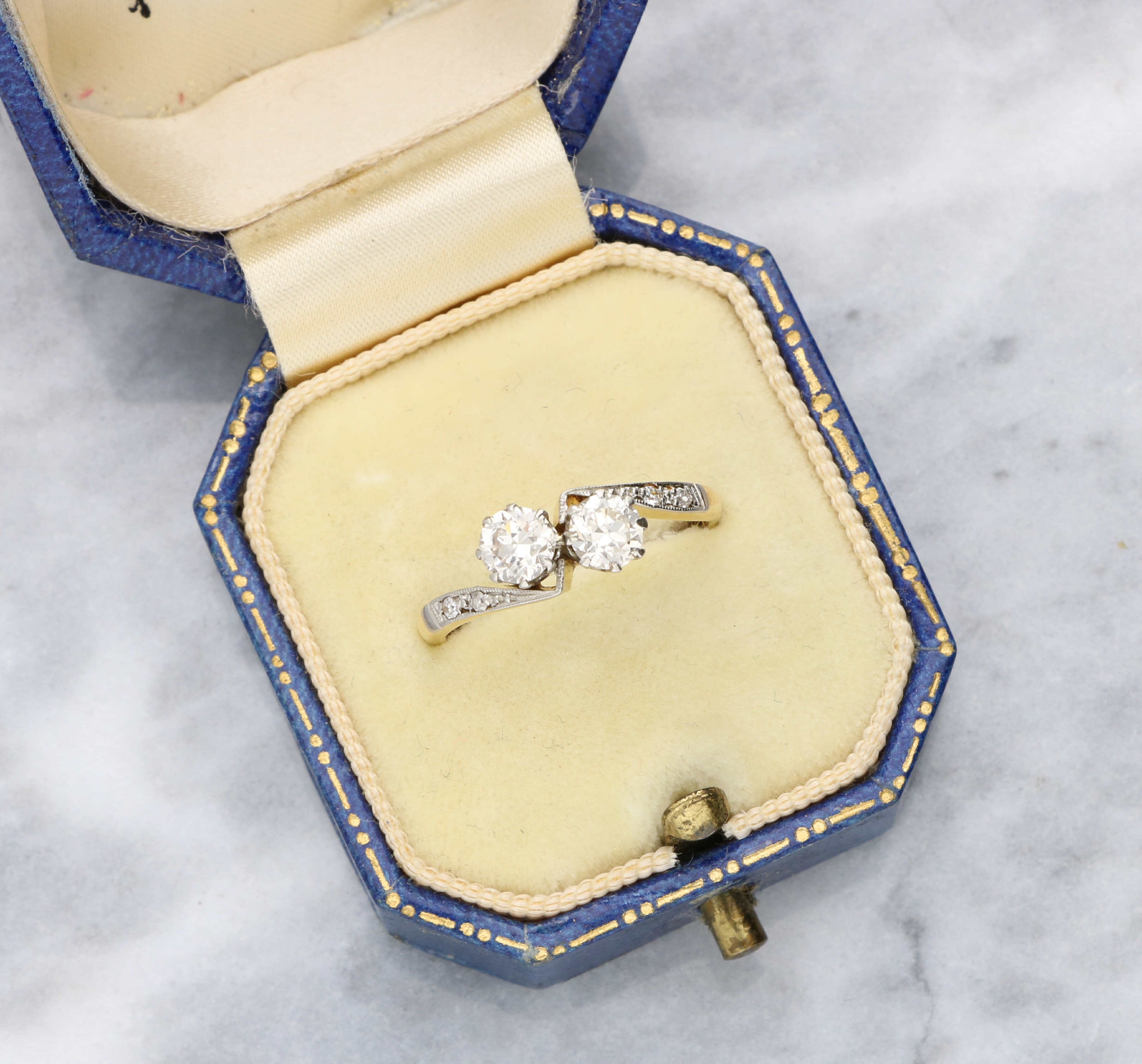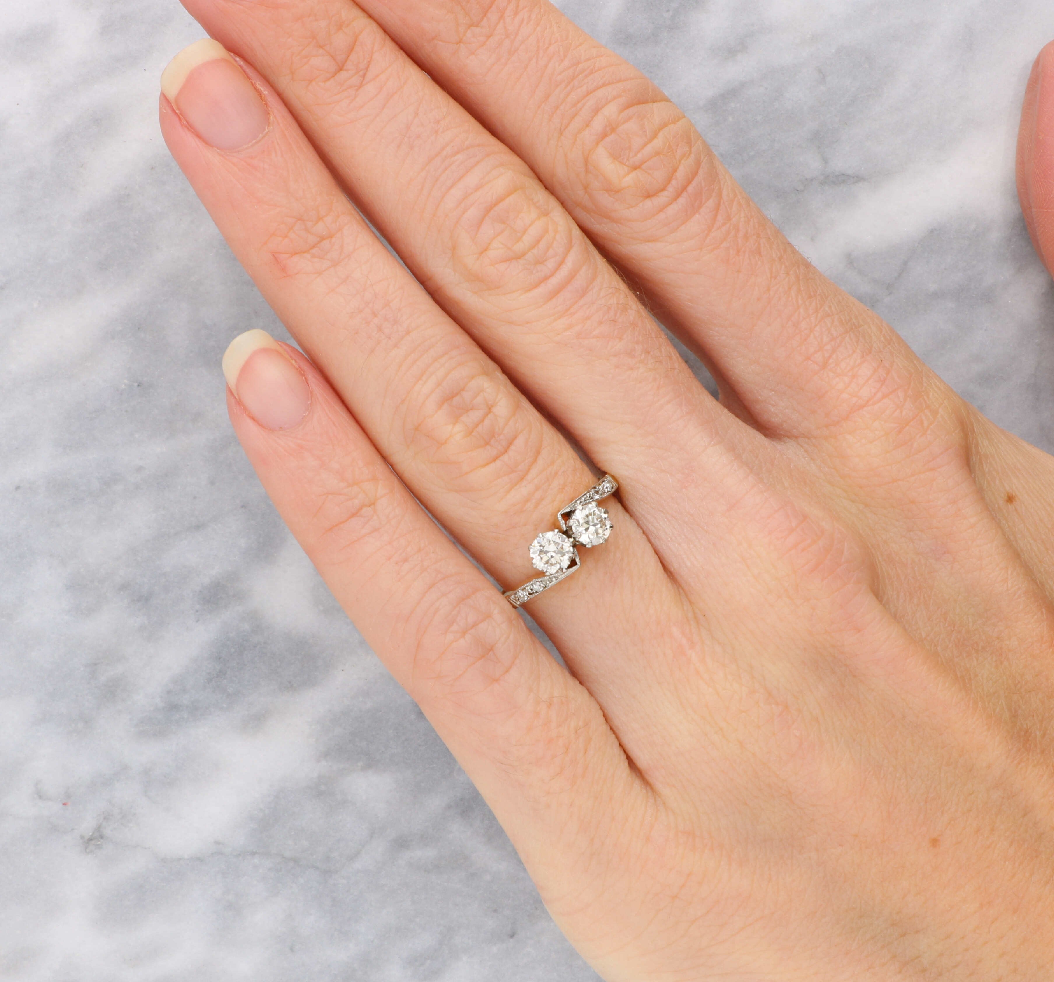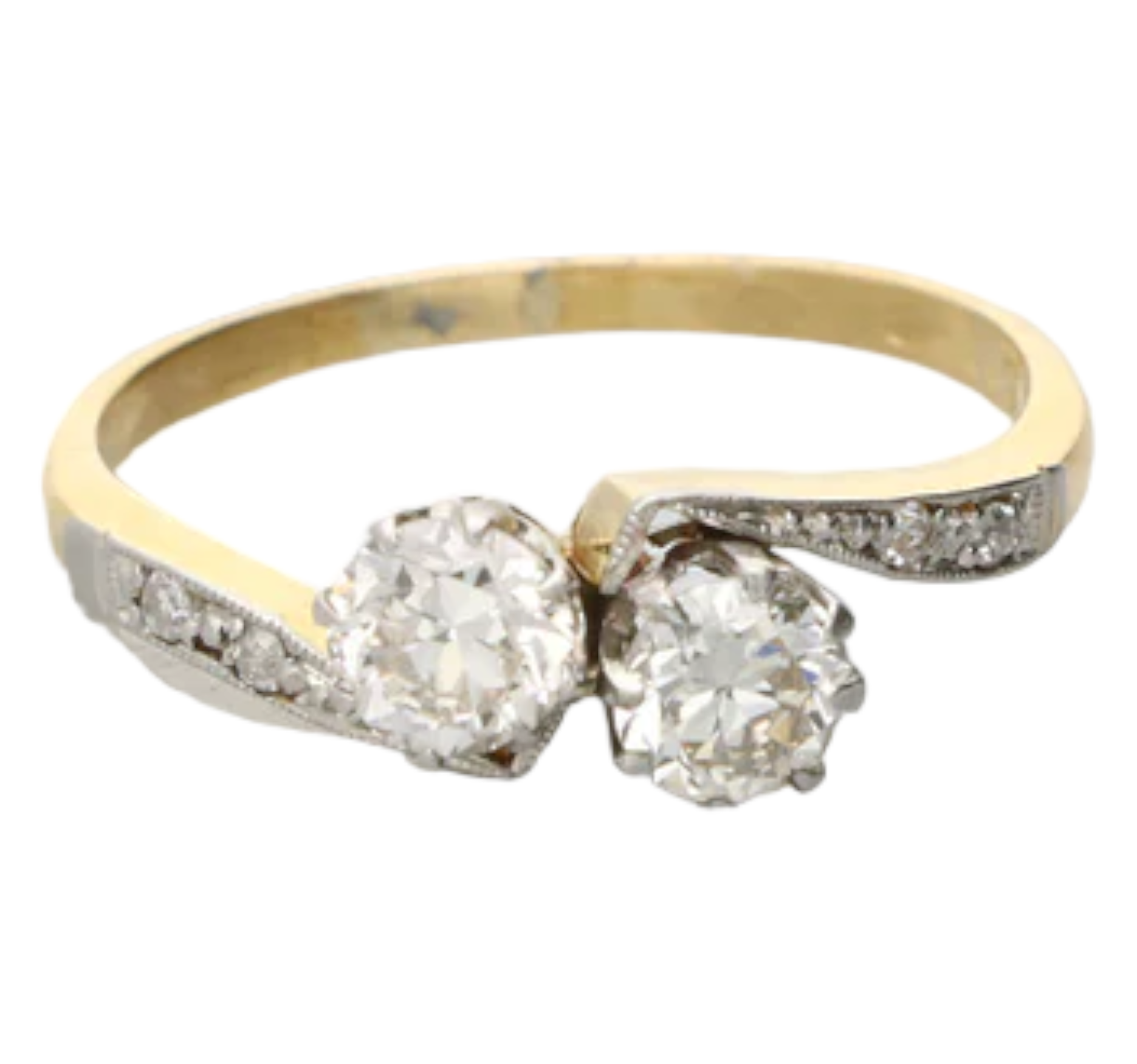 A wonderful yellow gold and platinum diamond crossover ring with diamond-set shoulders.